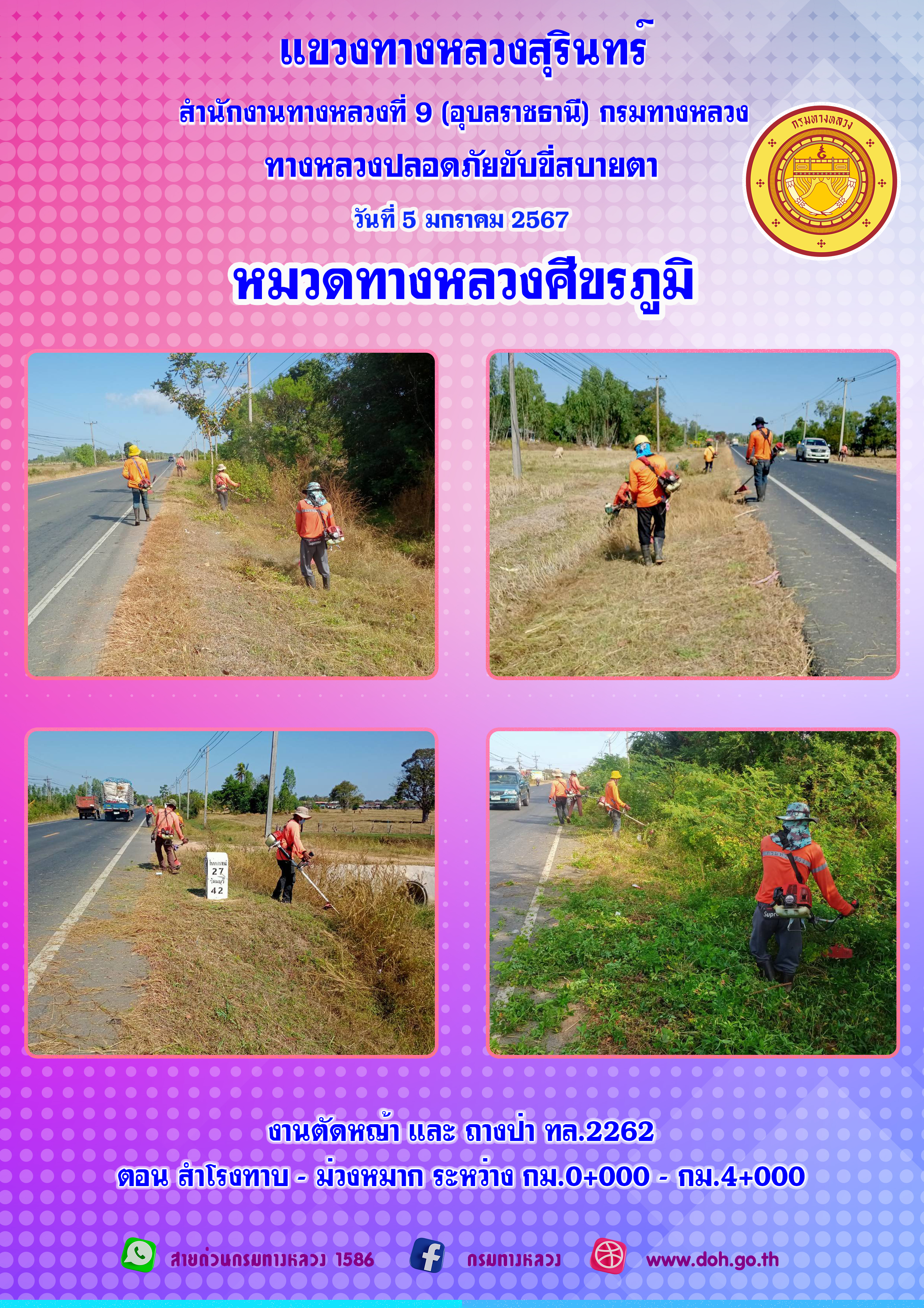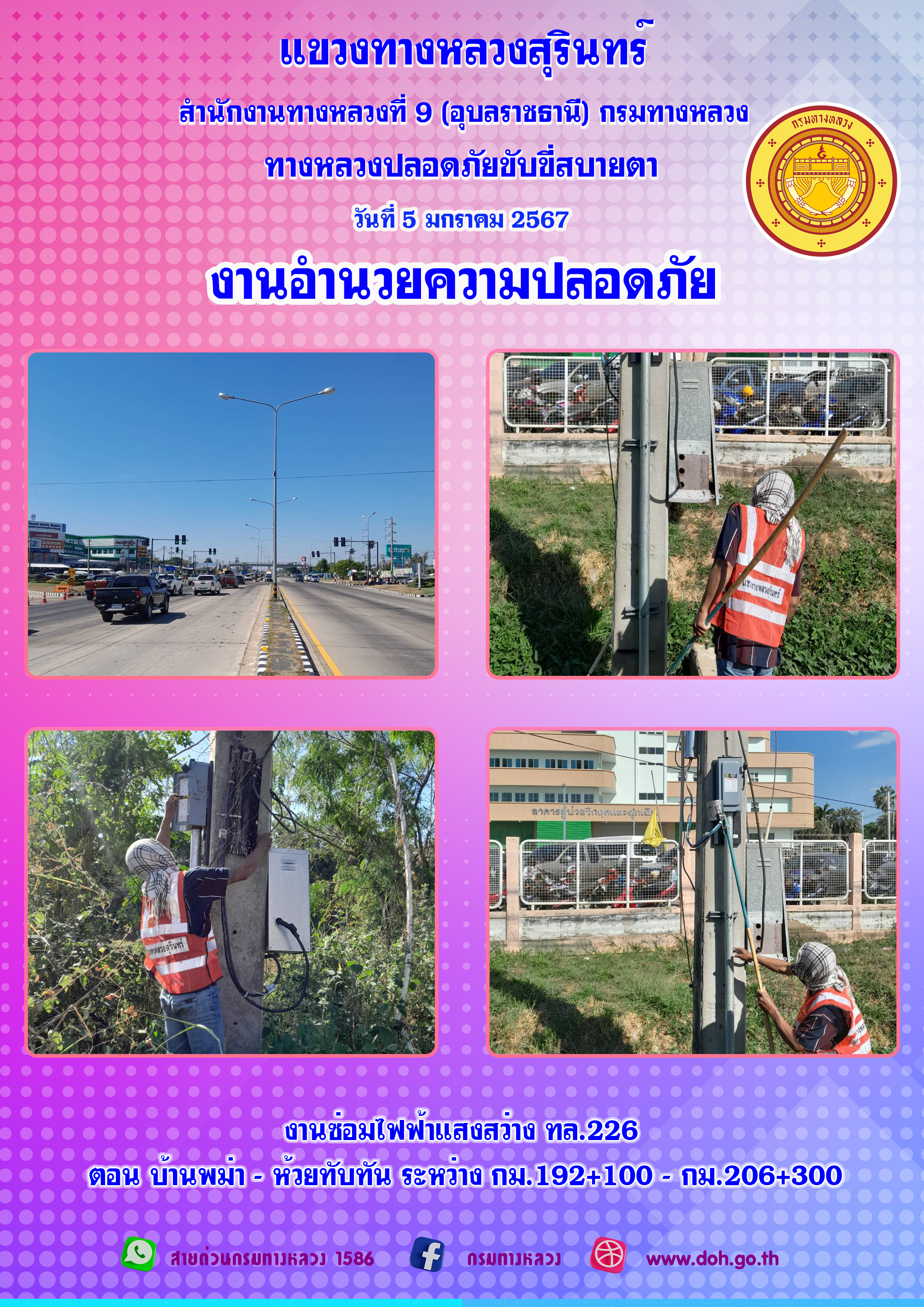 ข้อมูลภาพกิจกรรม : ทางหลวงปลอยภัย ขับขี่สบายตา 5 มกราคม 2567