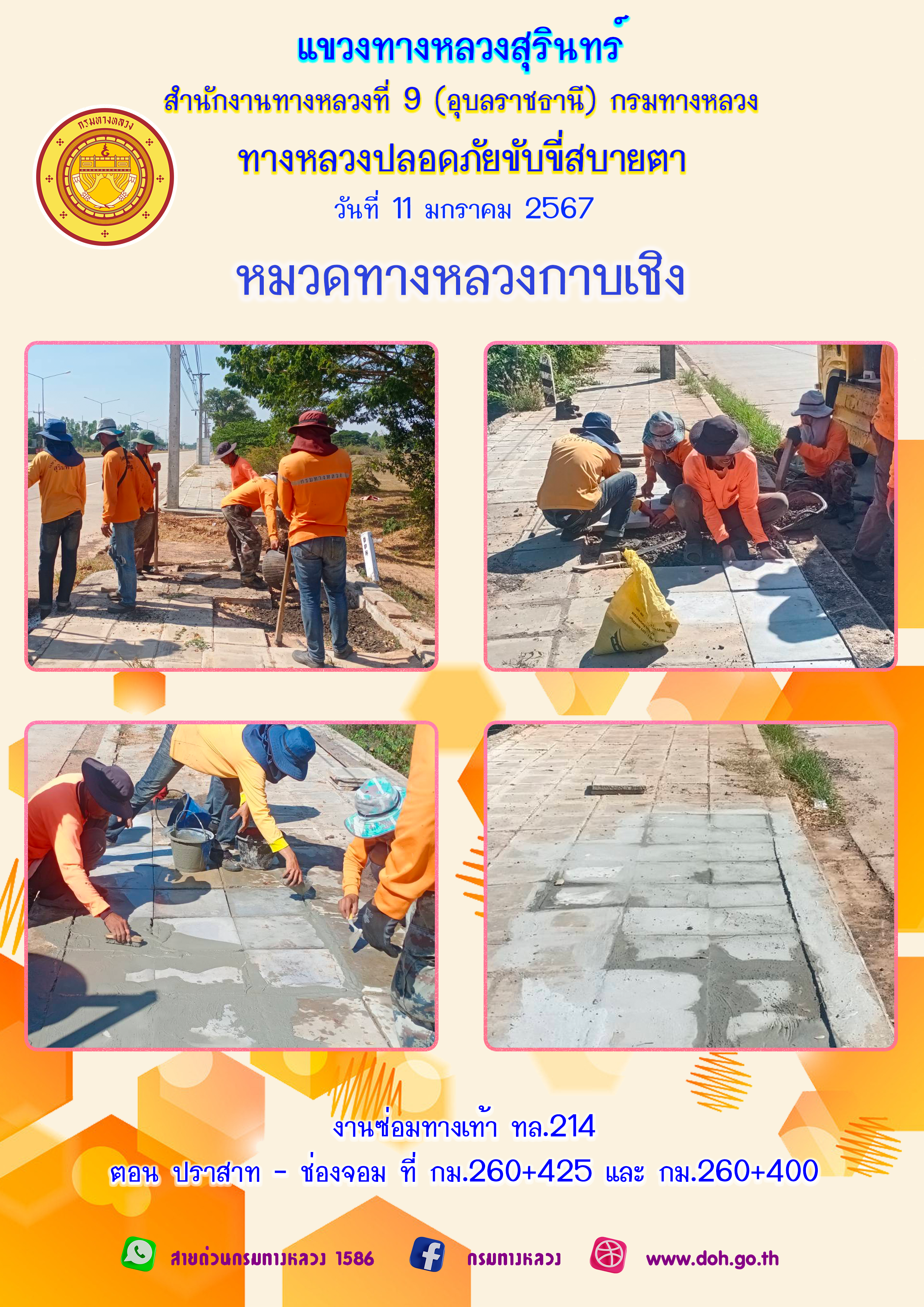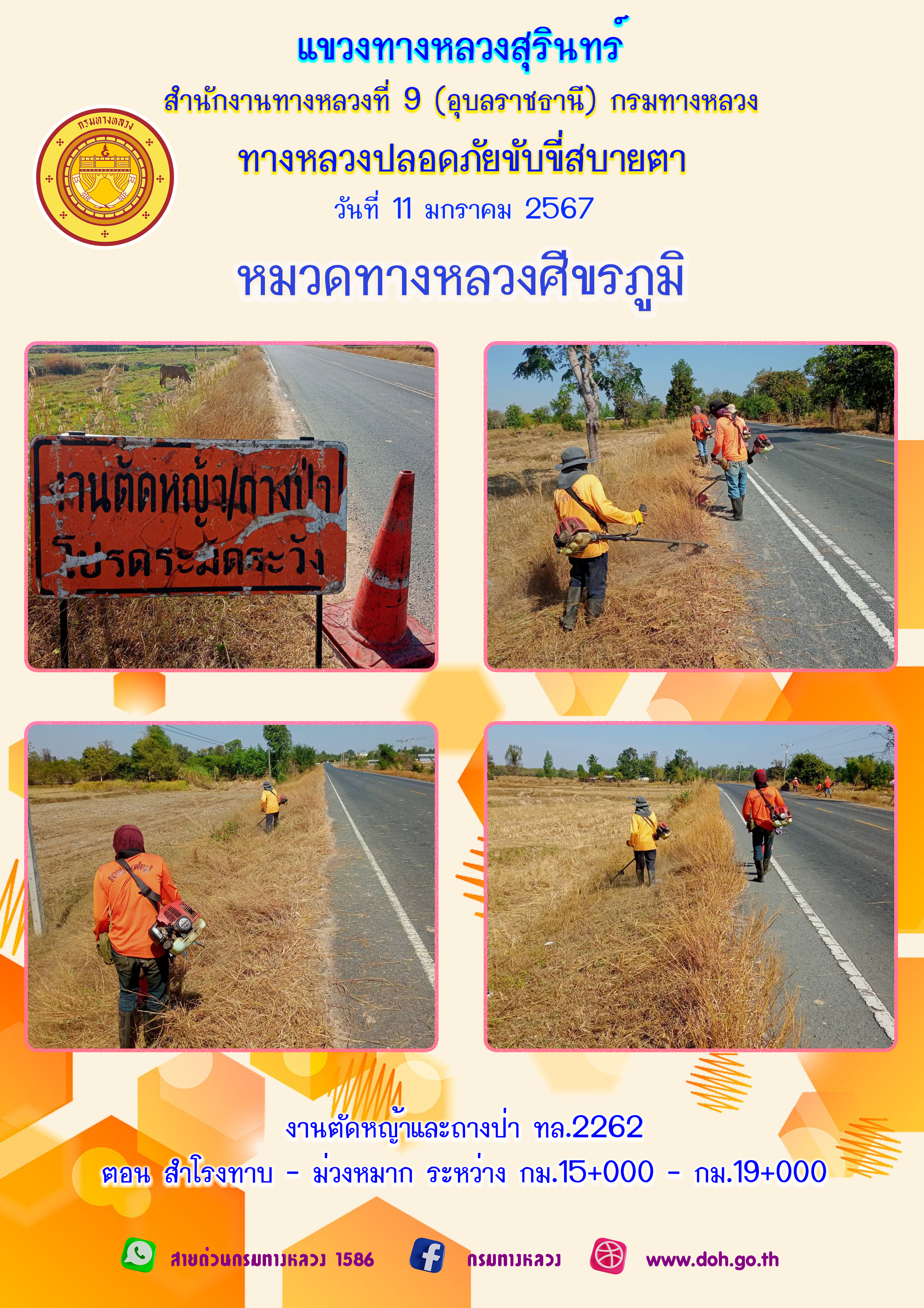 ข้อมูลภาพกิจกรรม : ทางหลวงปลอยภัย ขับขี่สบายตา 11 มกราคม 2567
