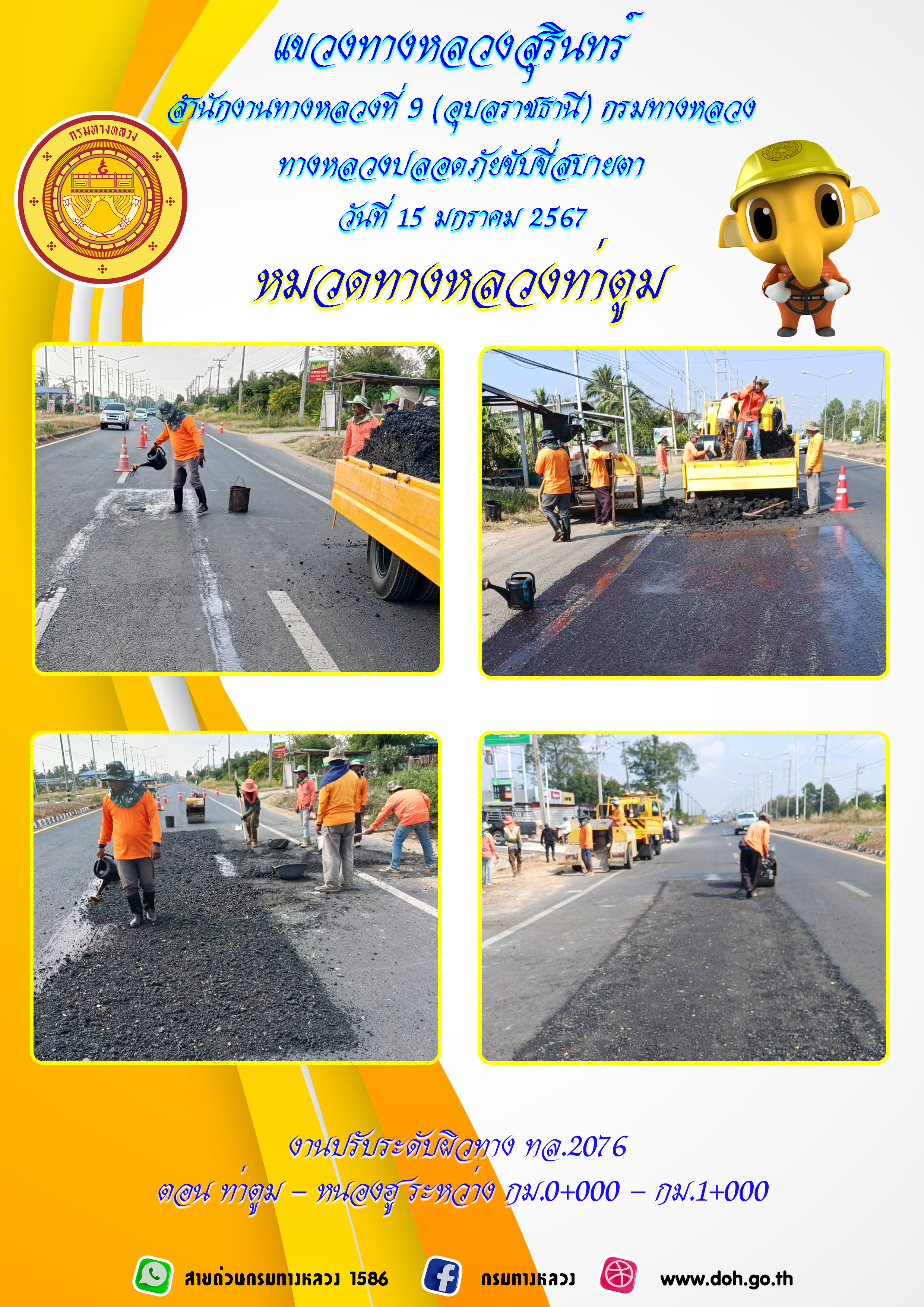 ข้อมูลภาพกิจกรรม : ทางหลวงปลอยภัย ขับขี่สบายตา 15 มกราคม 2567