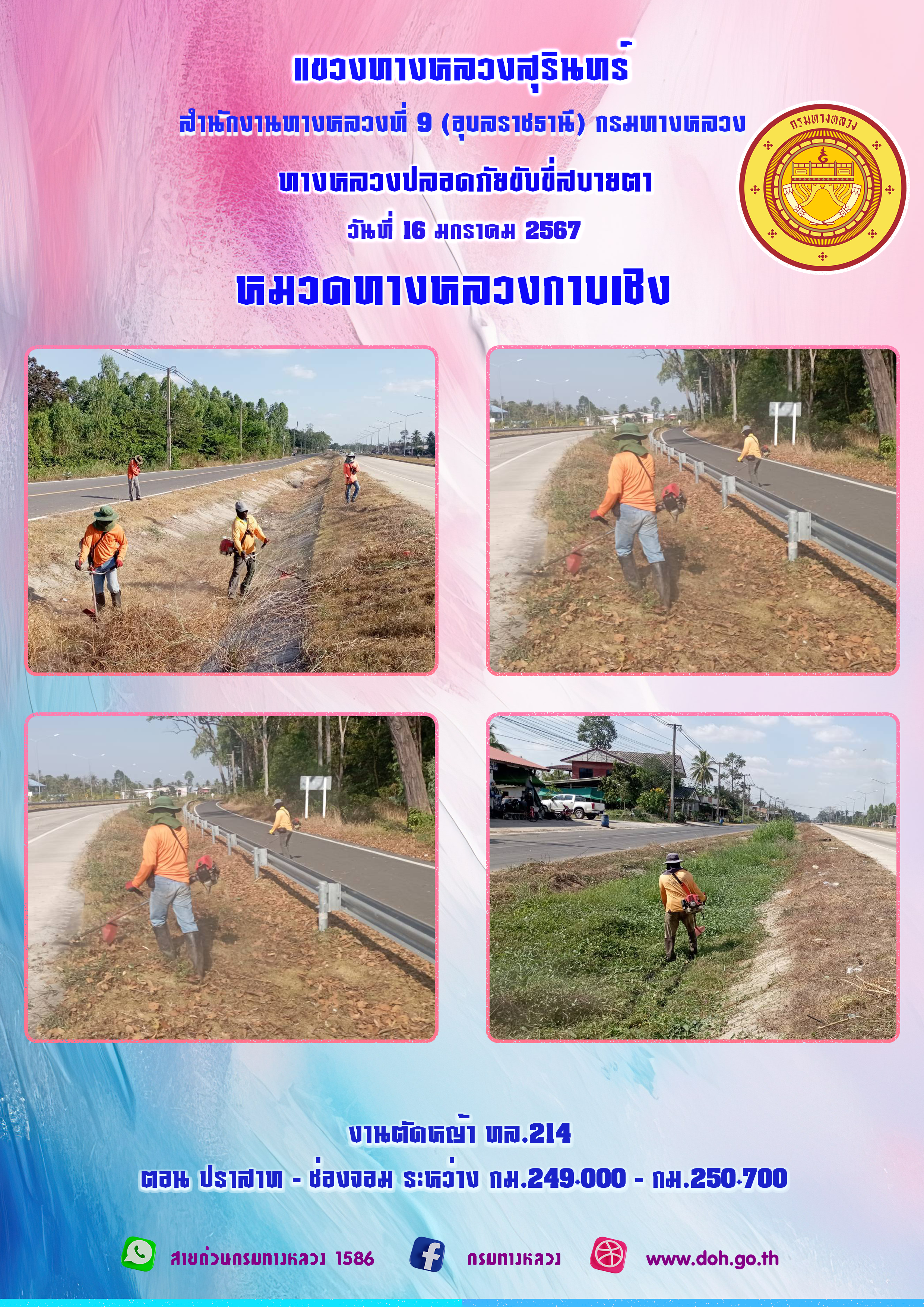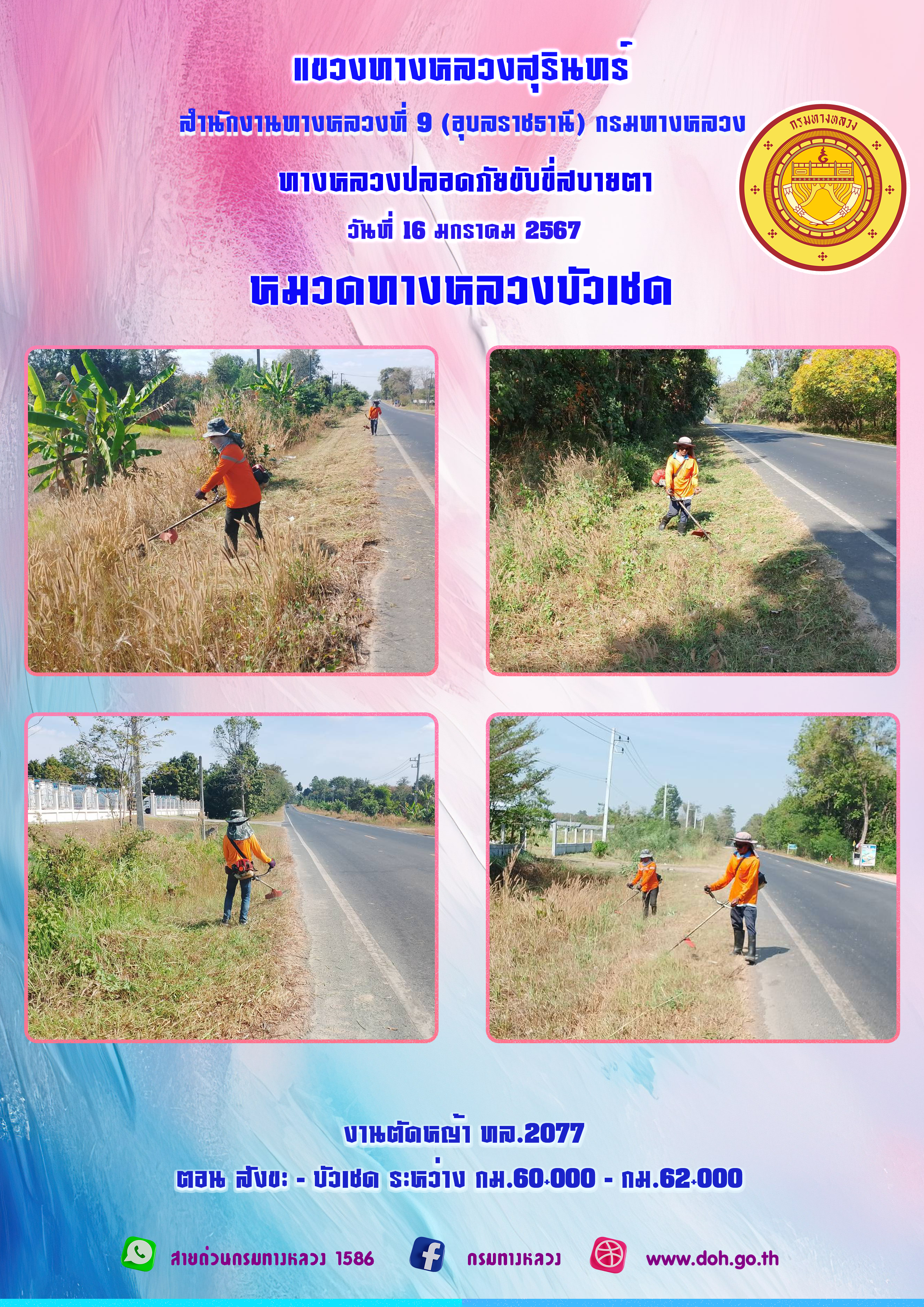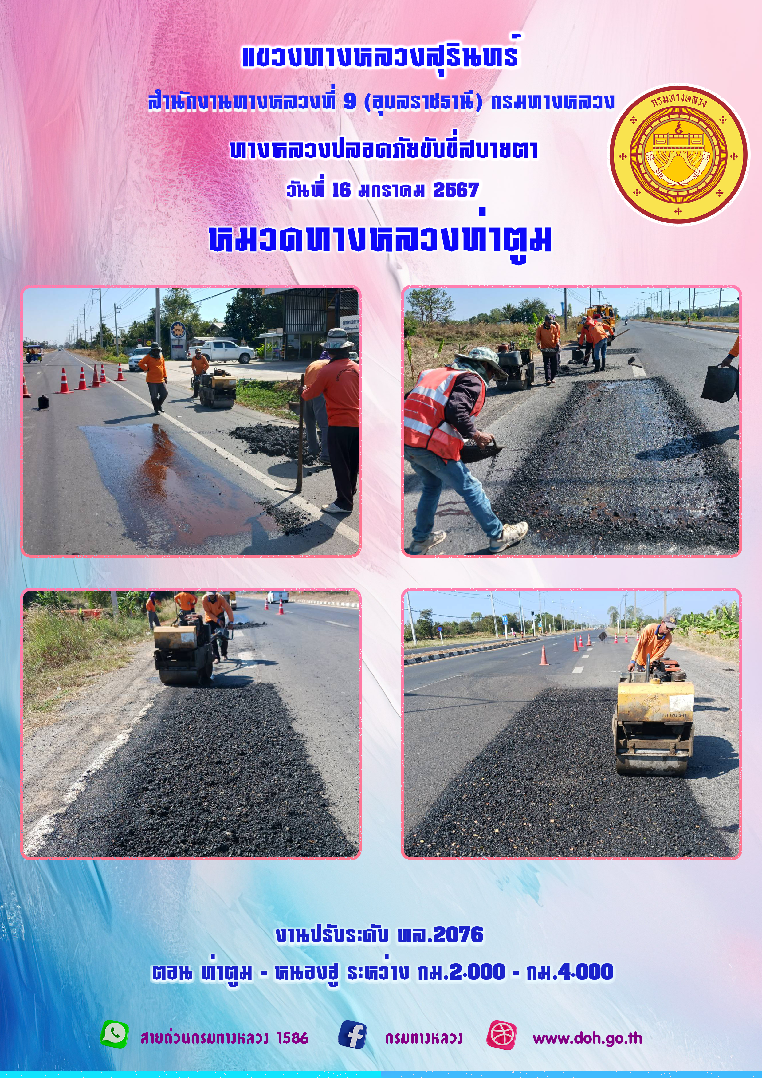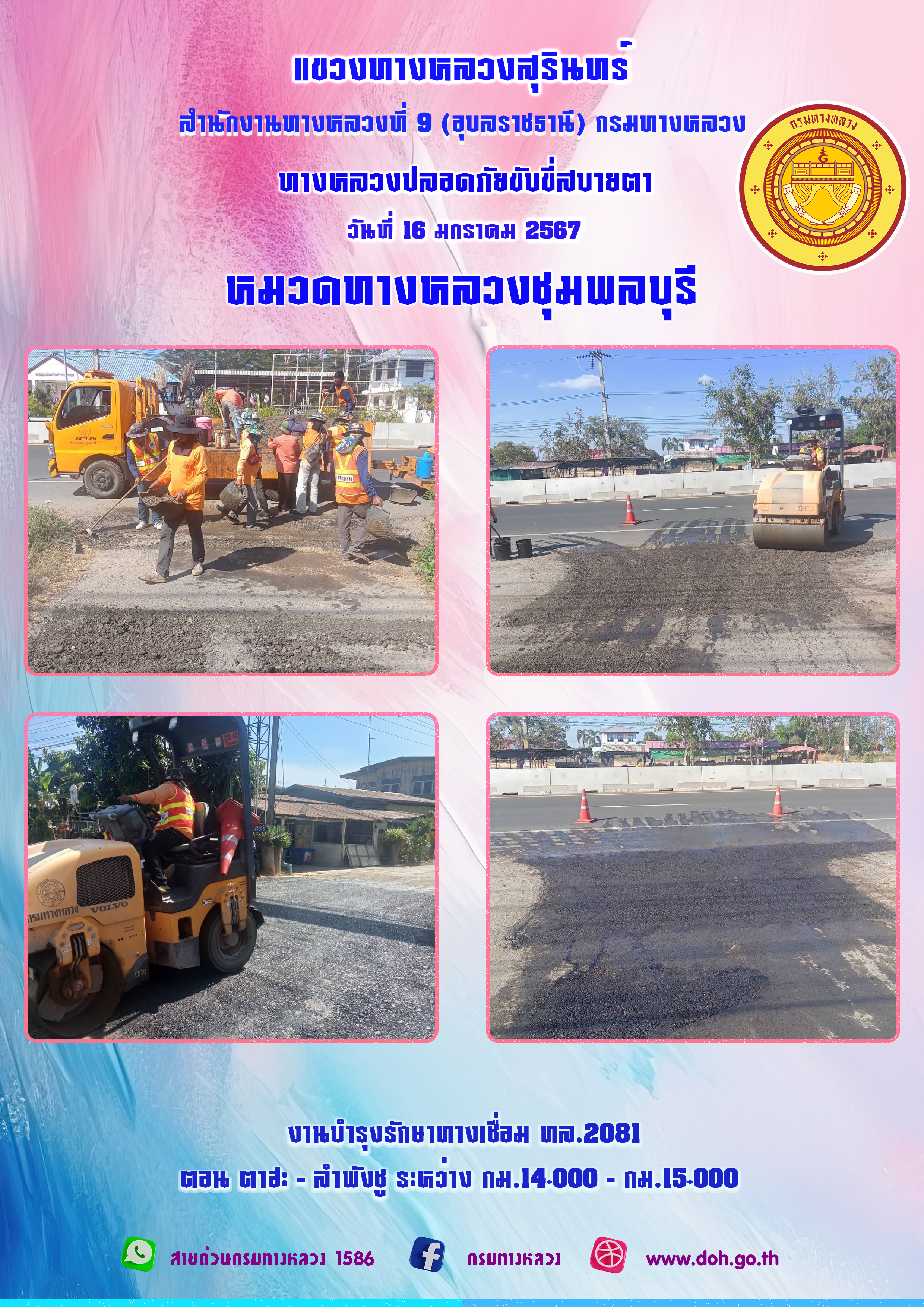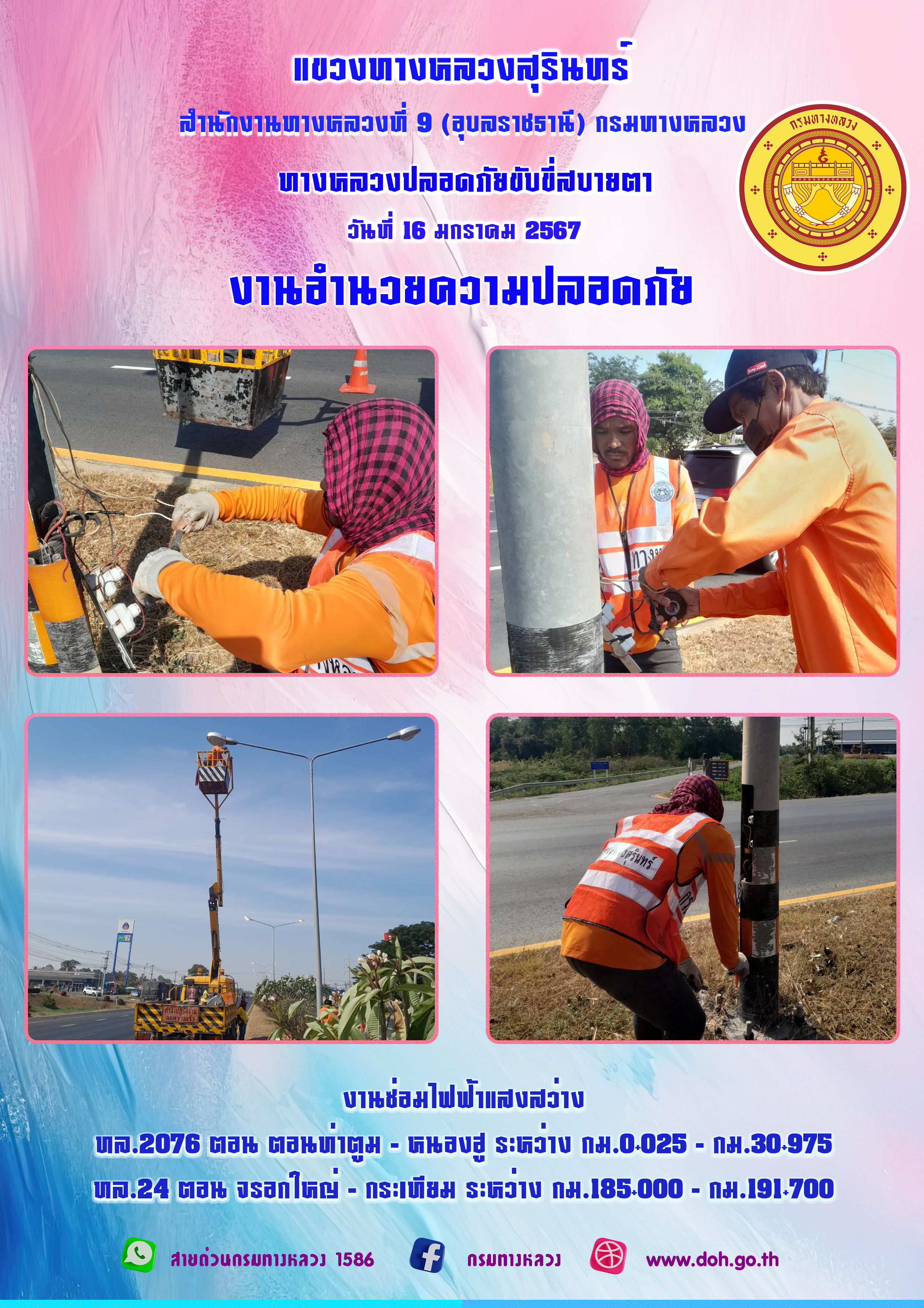 ข้อมูลภาพกิจกรรม : ทางหลวงปลอยภัย ขับขี่สบายตา 16 มกราคม 2567