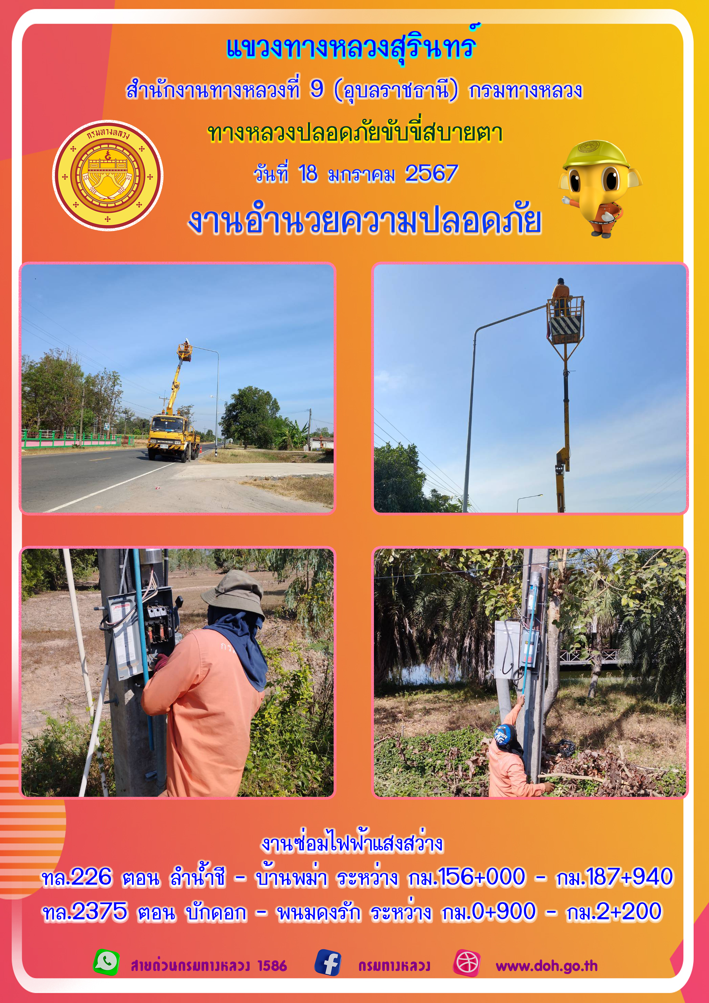 ข้อมูลภาพกิจกรรม : ทางหลวงปลอยภัย ขับขี่สบายตา 18 มกราคม 2567
