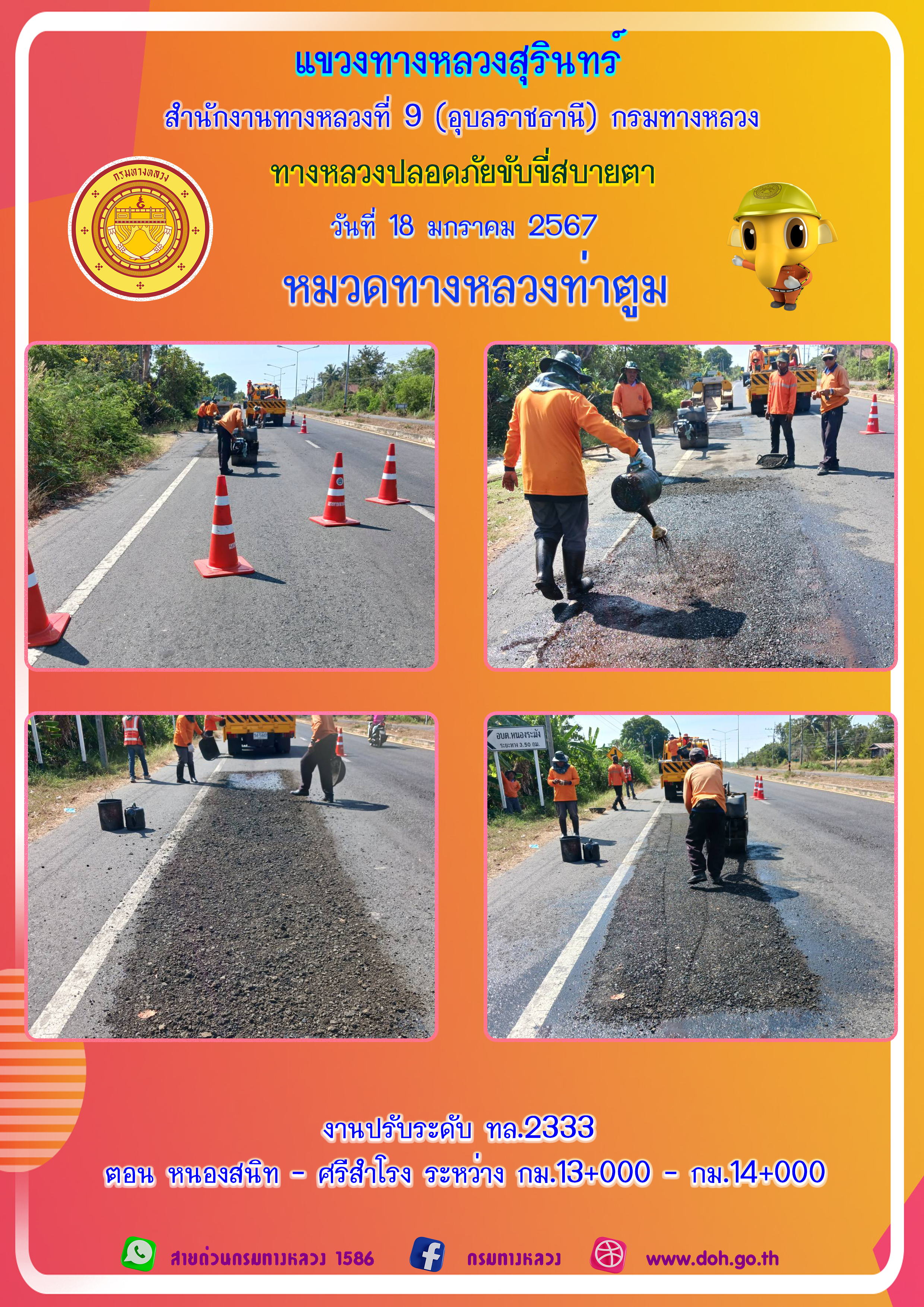 ทางหลวงปลอยภัย ขับขี่สบายตา 18 มกราคม 2567