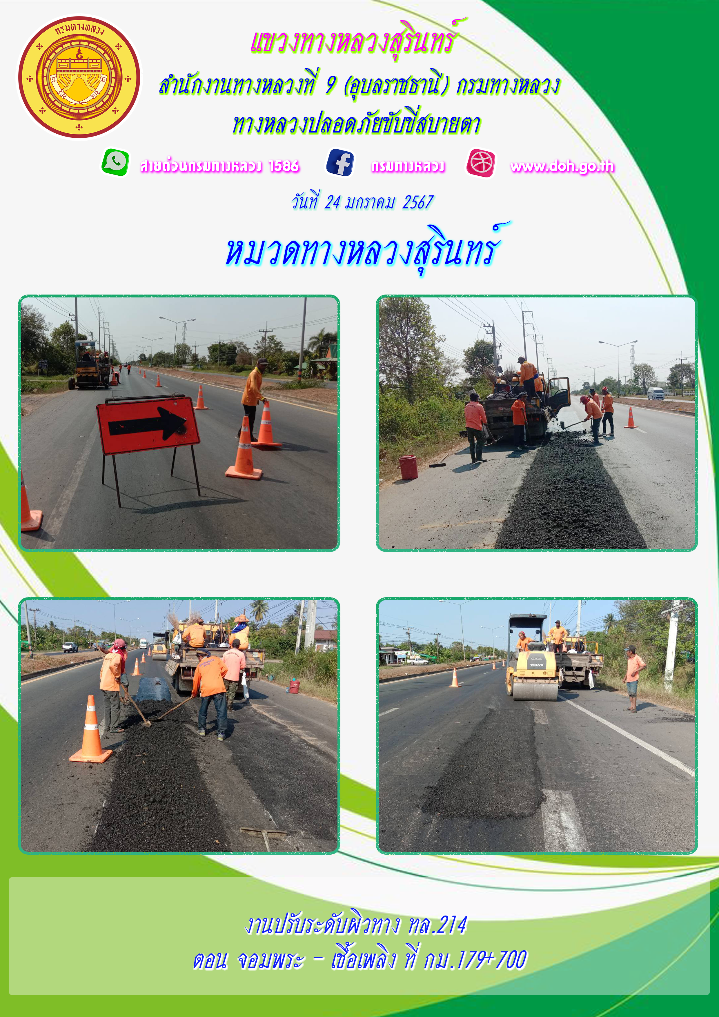 ข้อมูลภาพกิจกรรม : ทางหลวงปลอยภัย ขับขี่สบายตา 24 มกราคม 2567