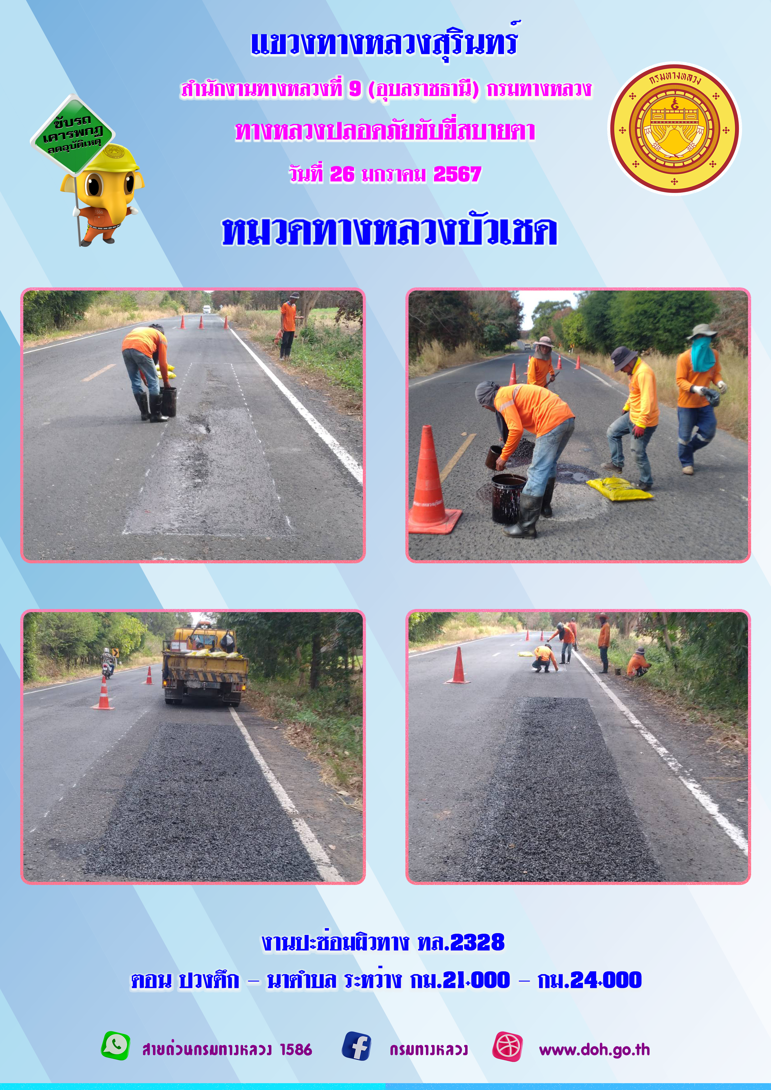 ข้อมูลภาพกิจกรรม : ทางหลวงปลอยภัย ขับขี่สบายตา 26 มกราคม 2567