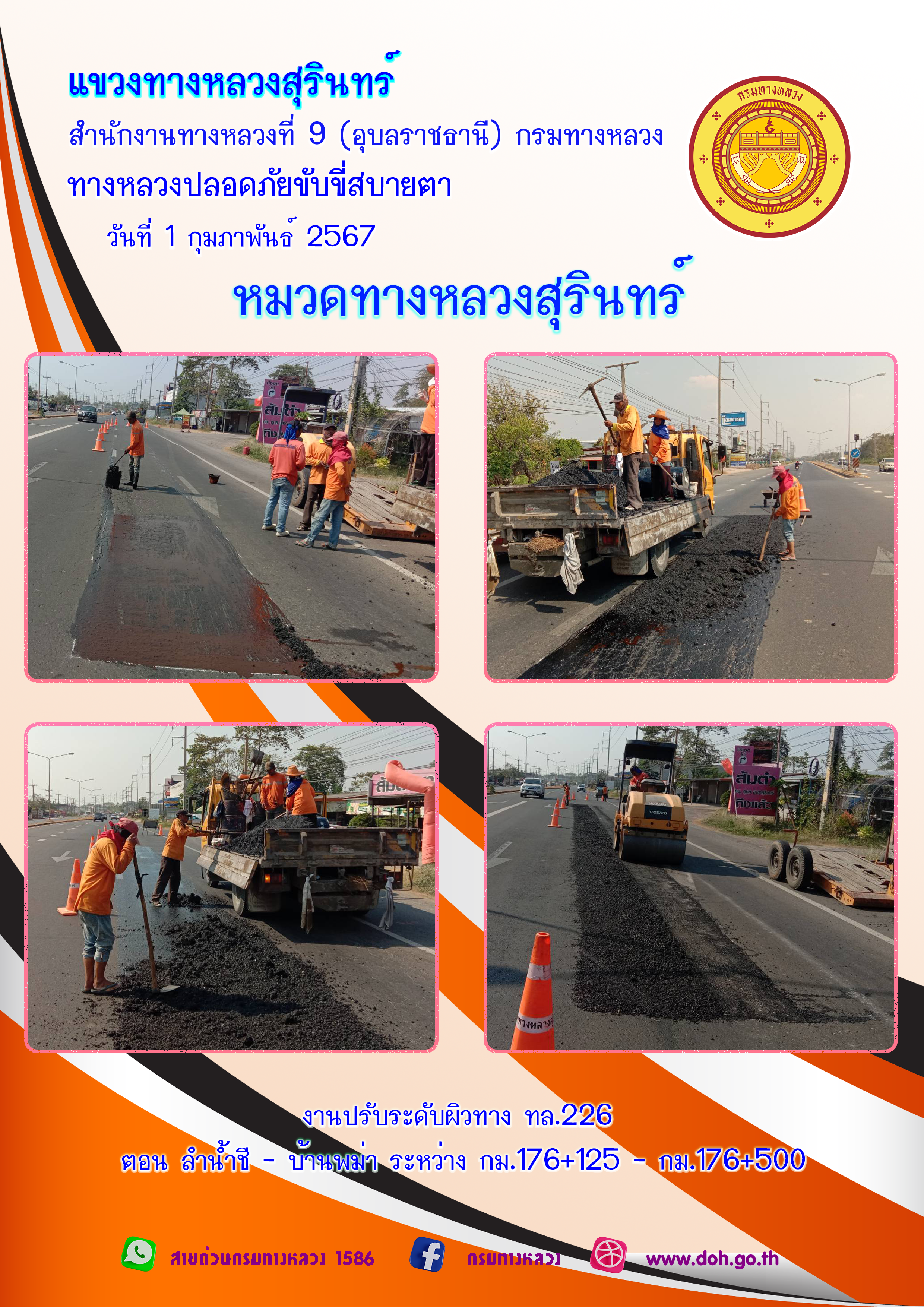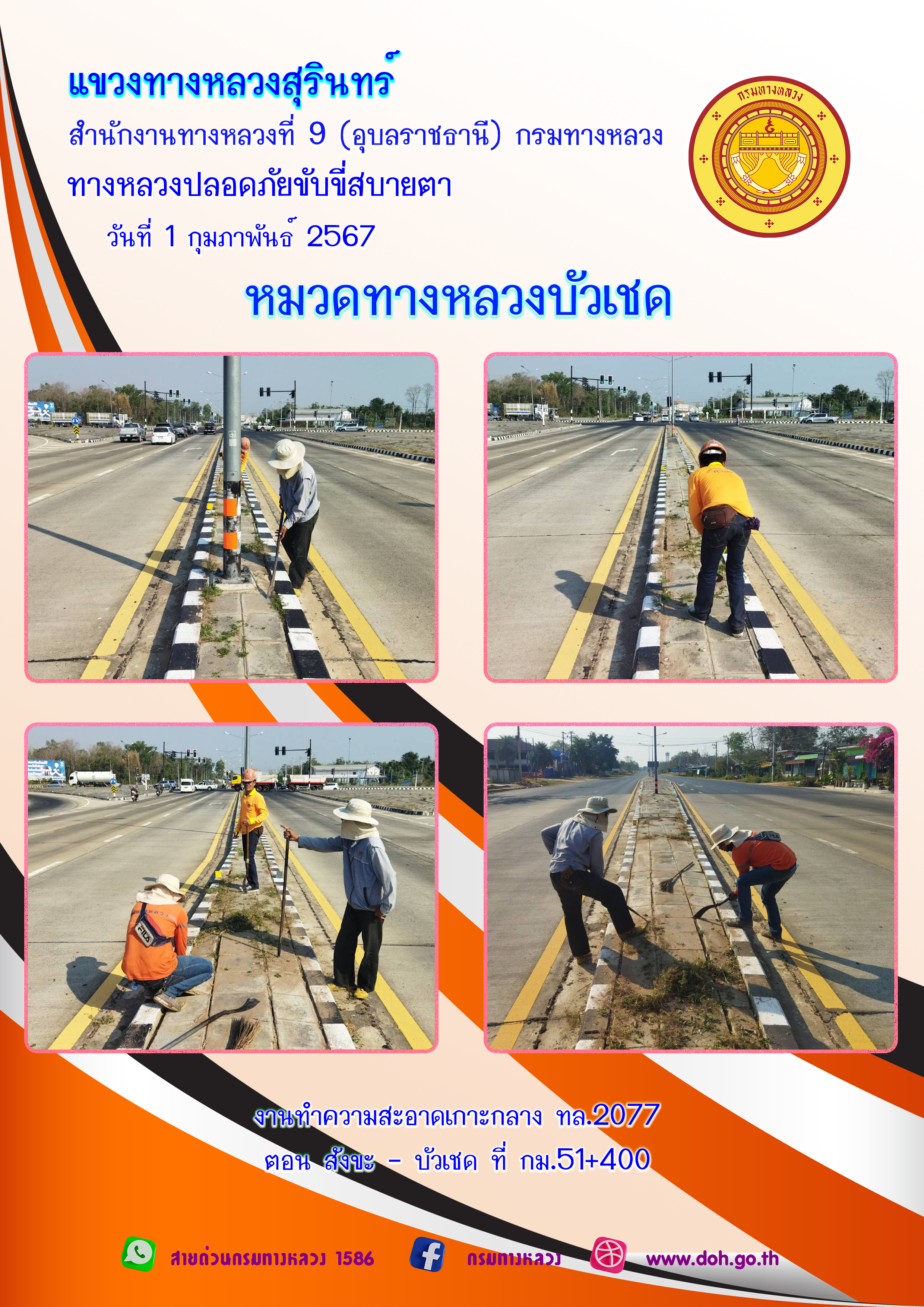 ข้อมูลภาพกิจกรรม : ทางหลวงปลอยภัย ขับขี่สบายตา 1 กุมภาพันธ์ 2567