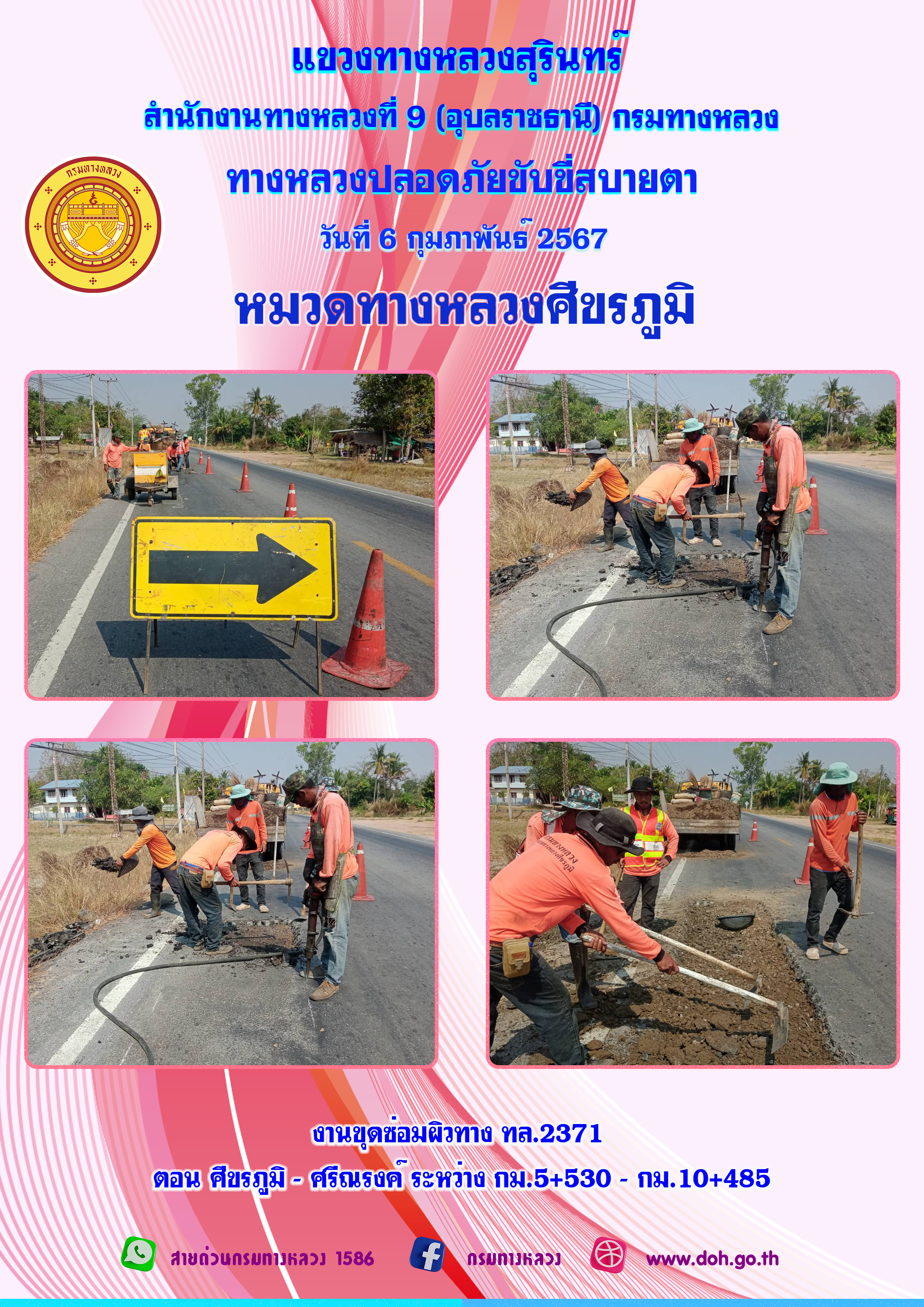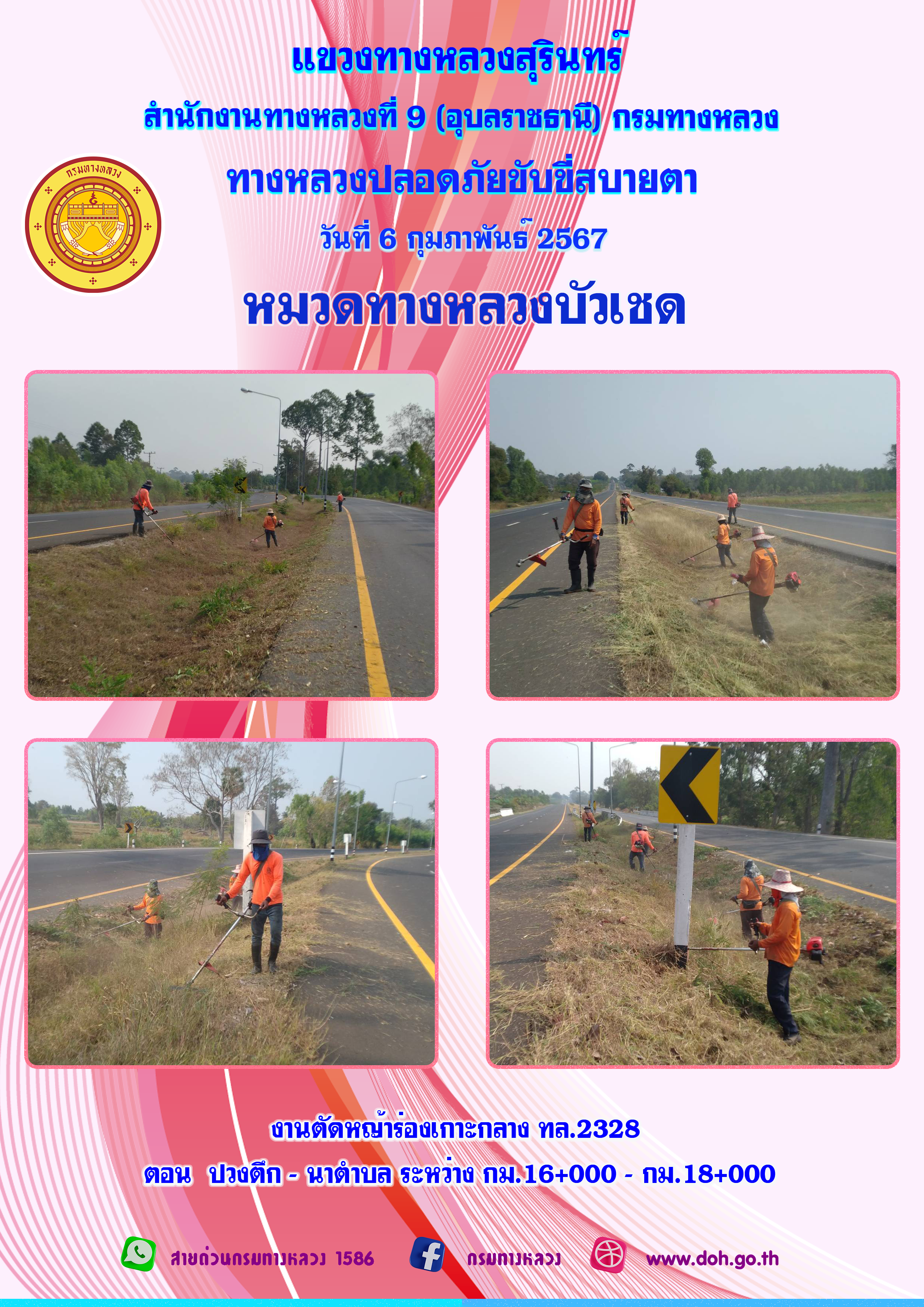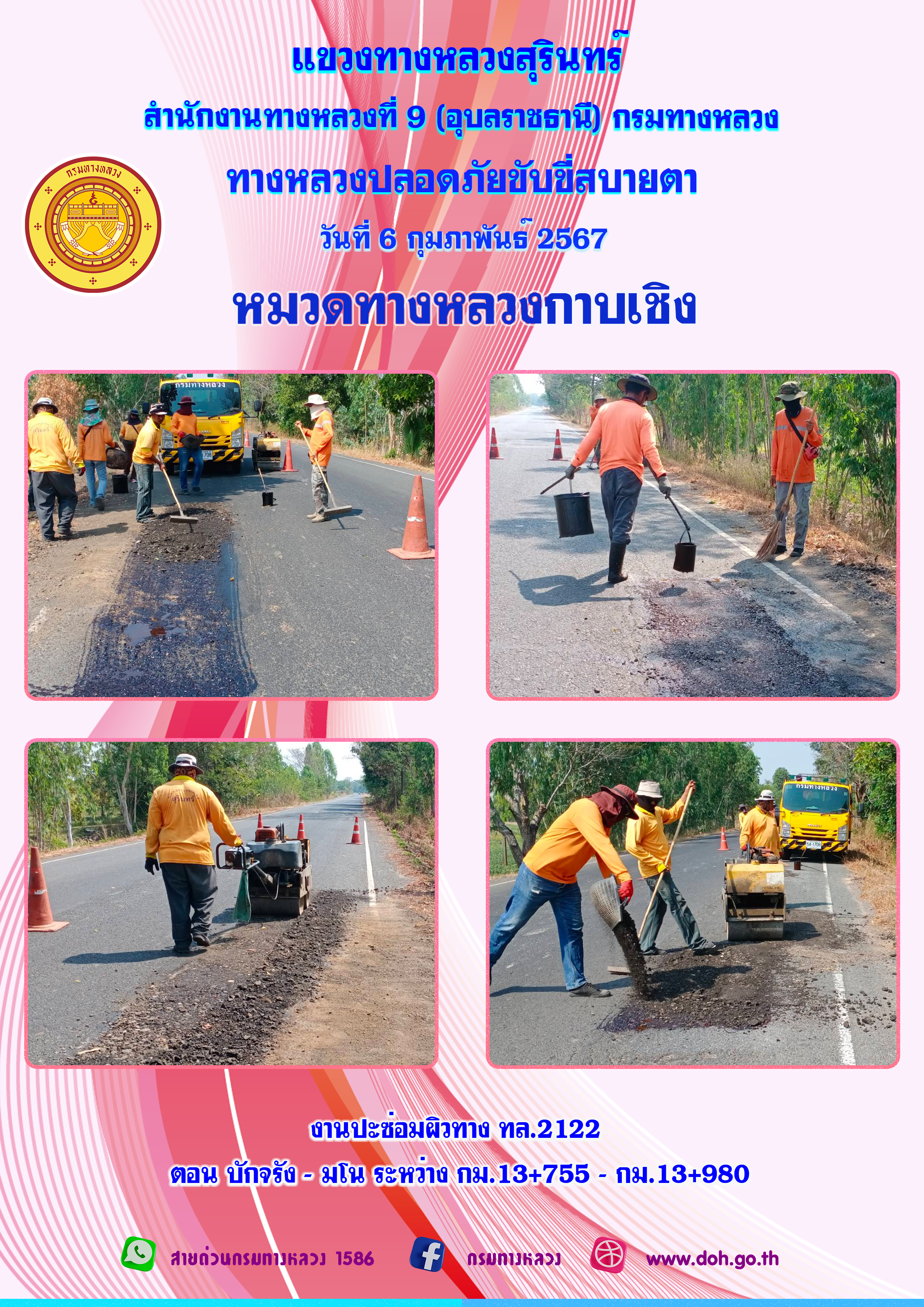 ข้อมูลภาพกิจกรรม : ทางหลวงปลอยภัย ขับขี่สบายตา 6 กุมภาพันธ์ 2567