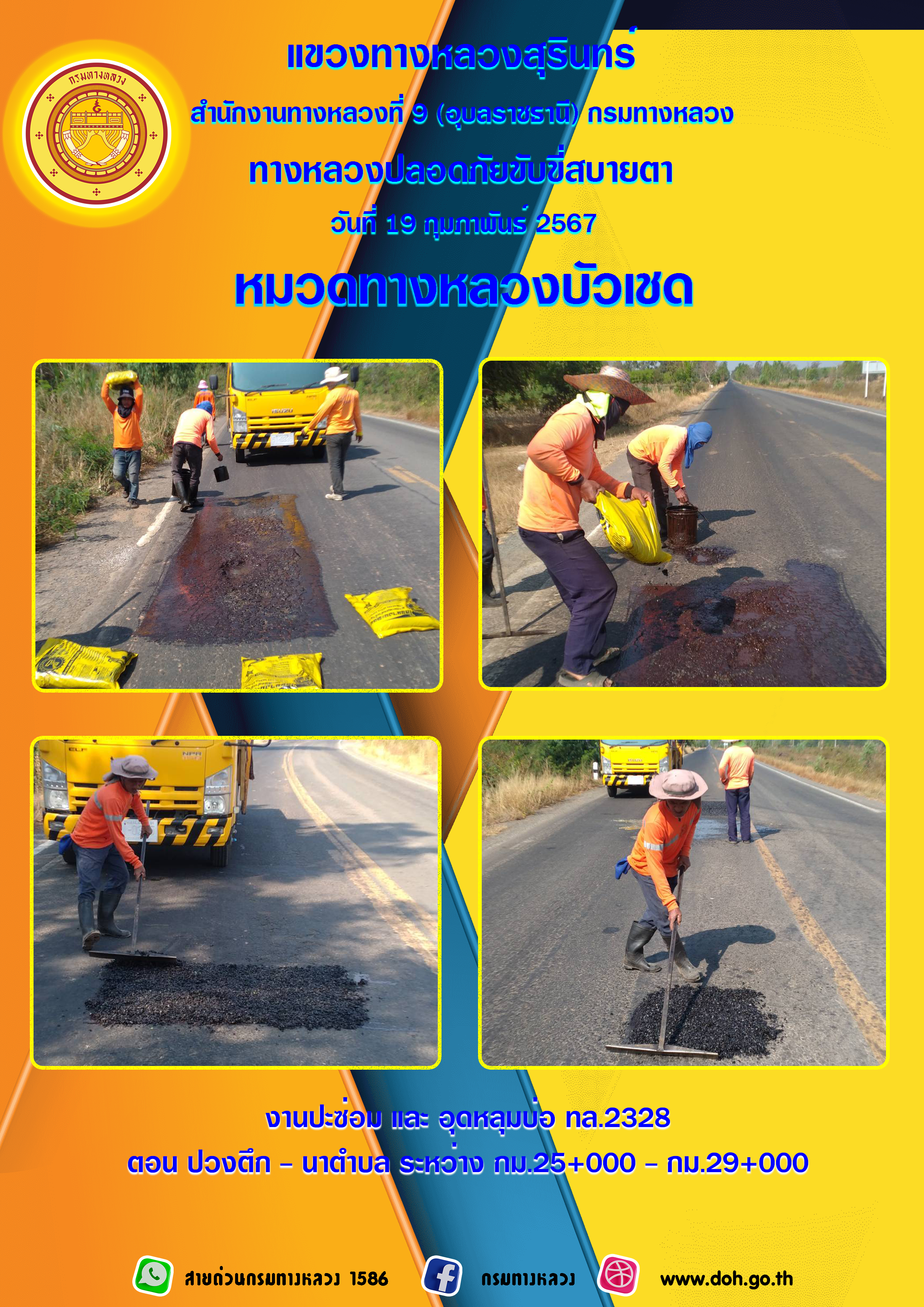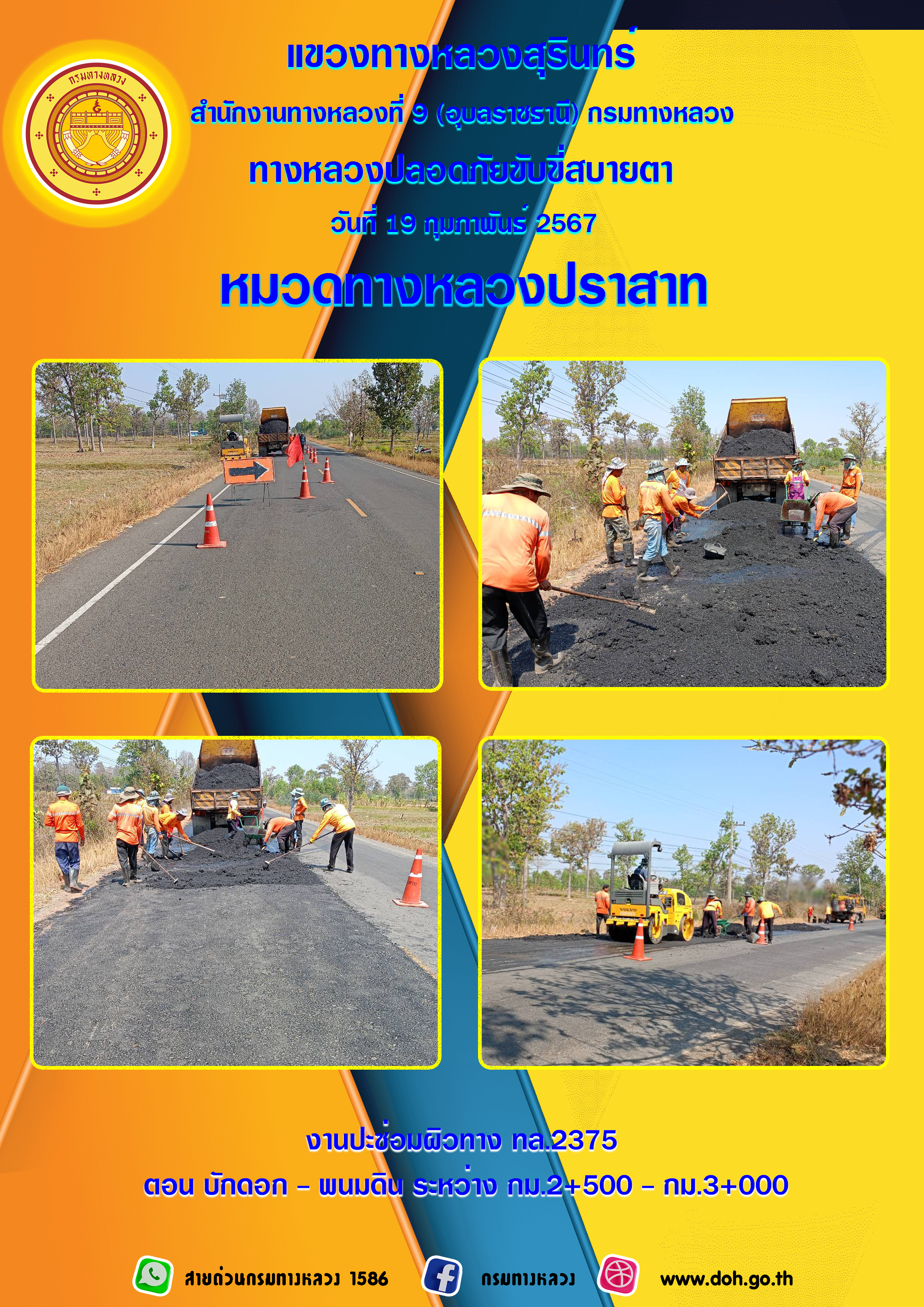 ข้อมูลภาพกิจกรรม : ทางหลวงปลอยภัย ขับขี่สบายตา 19 กุมภาพันธ์ 2567