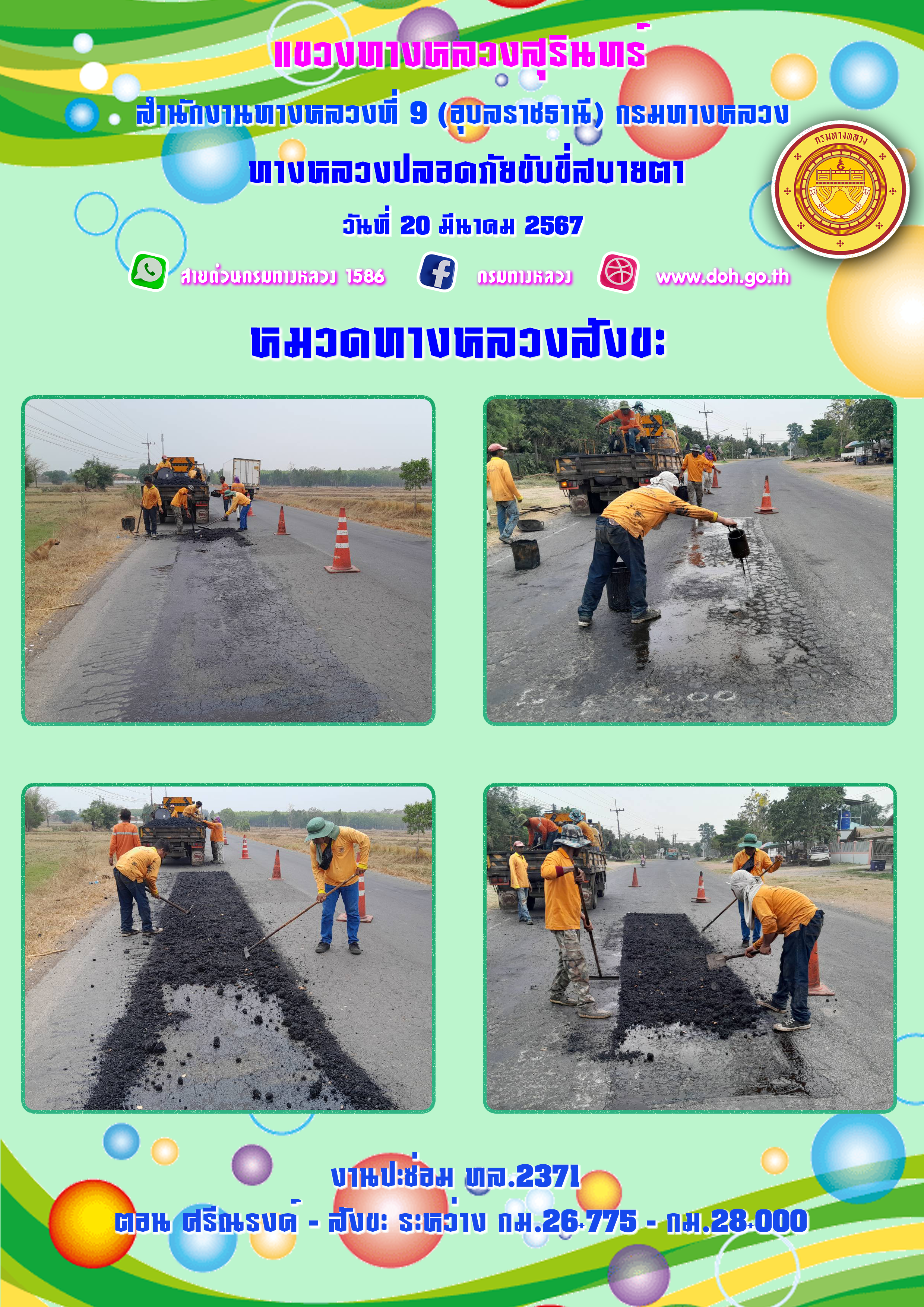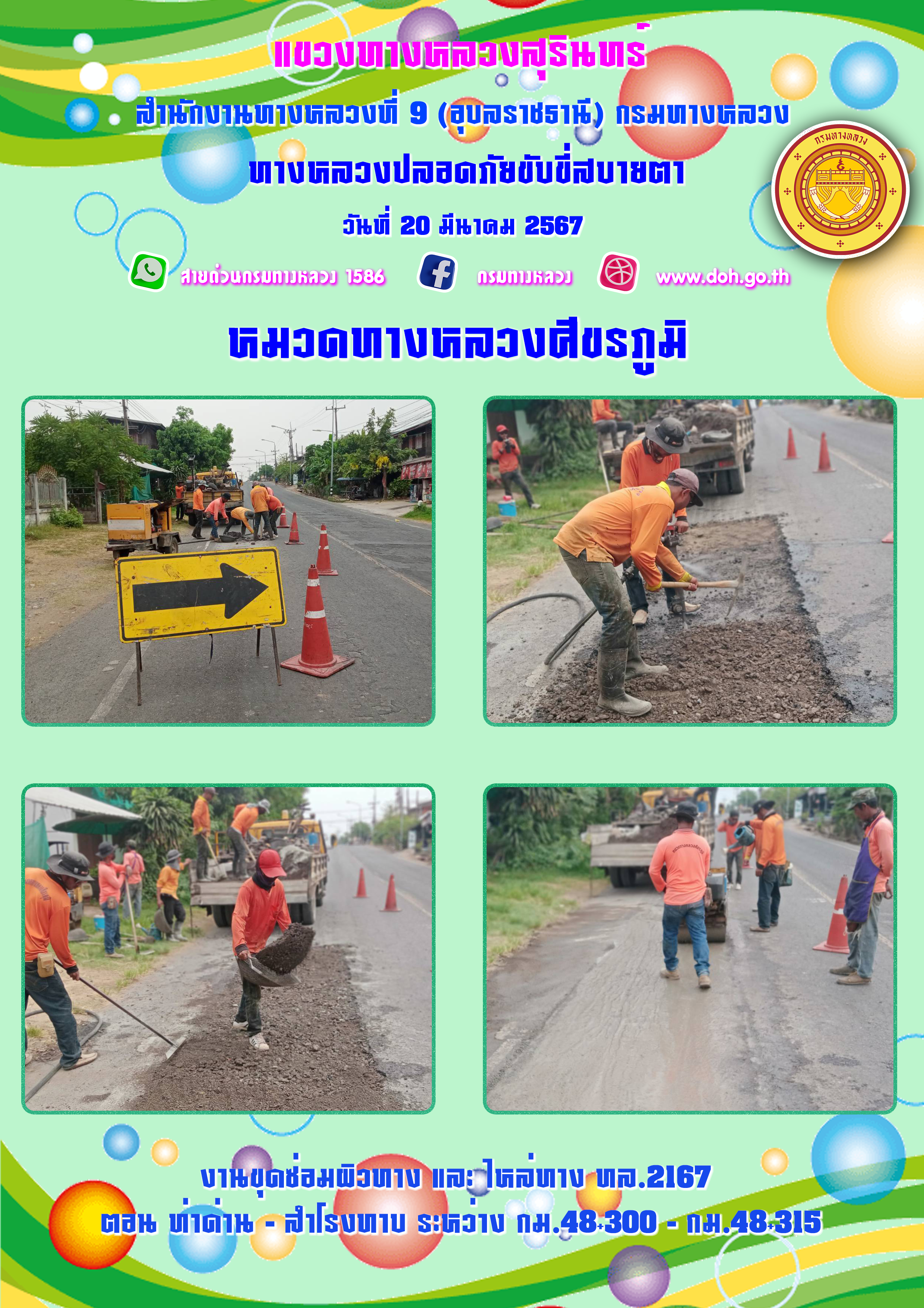 ทางหลวงปลอยภัย ขับขี่สบายตา 20 มีนาคม 2567