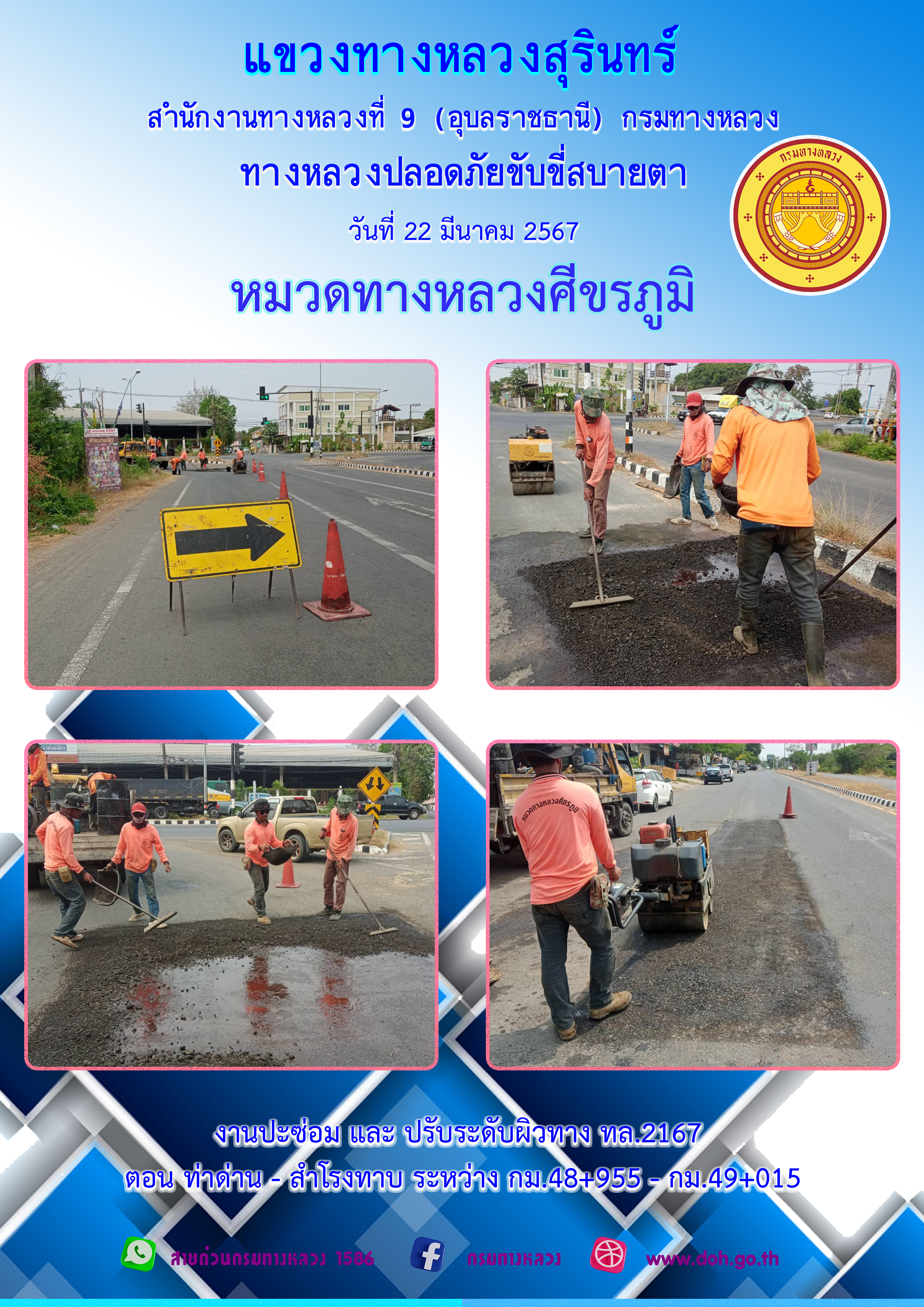 ทางหลวงปลอยภัย ขับขี่สบายตา 22 มีนาคม 2567