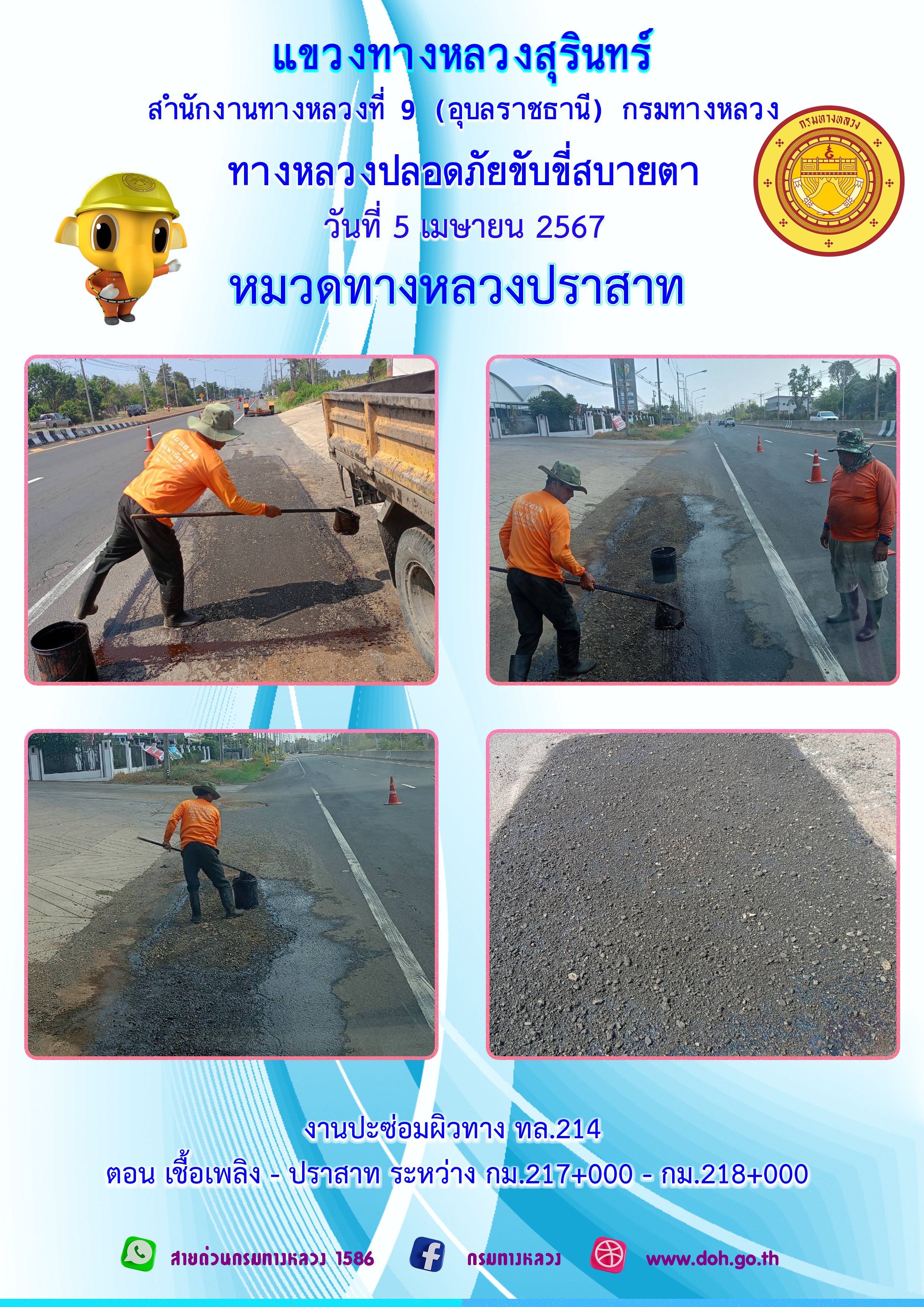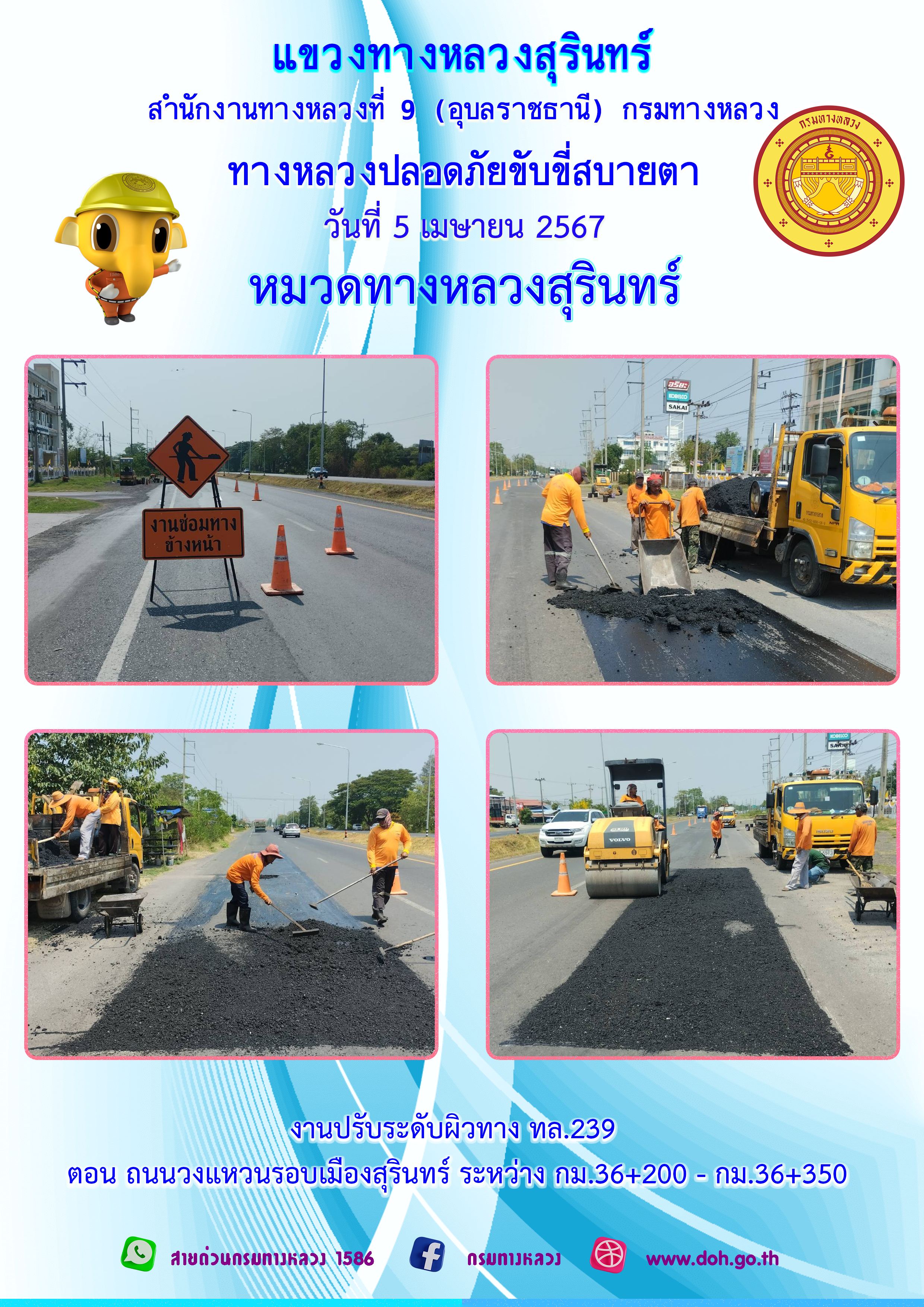 ข้อมูลภาพกิจกรรม : ทางหลวงปลอยภัย ขับขี่สบายตา 5 เมษายน 2567