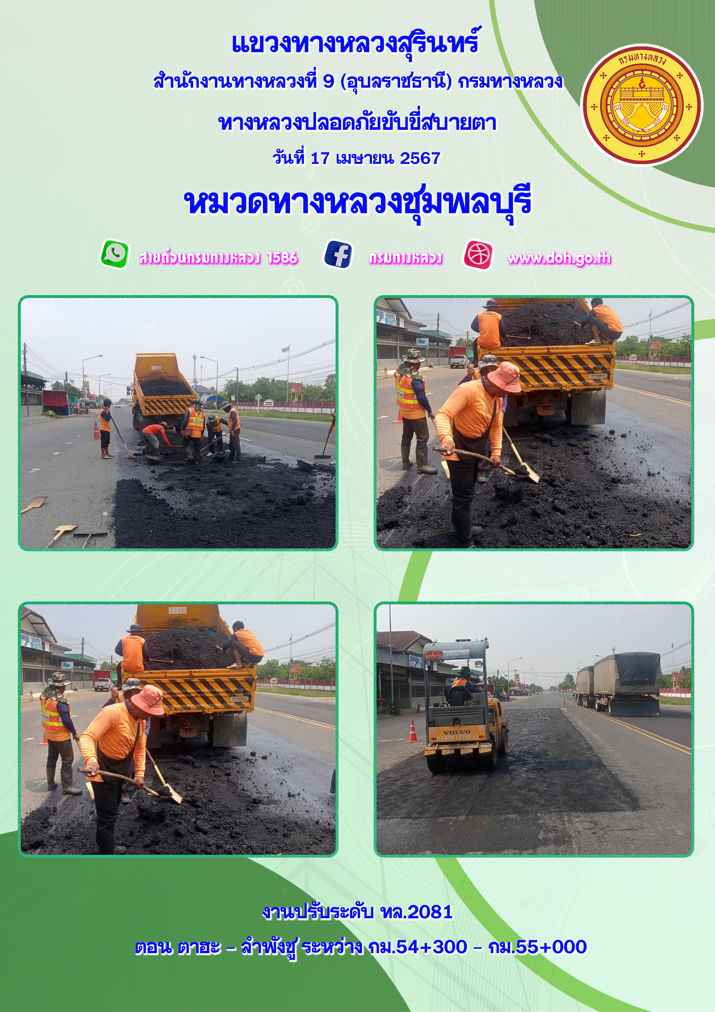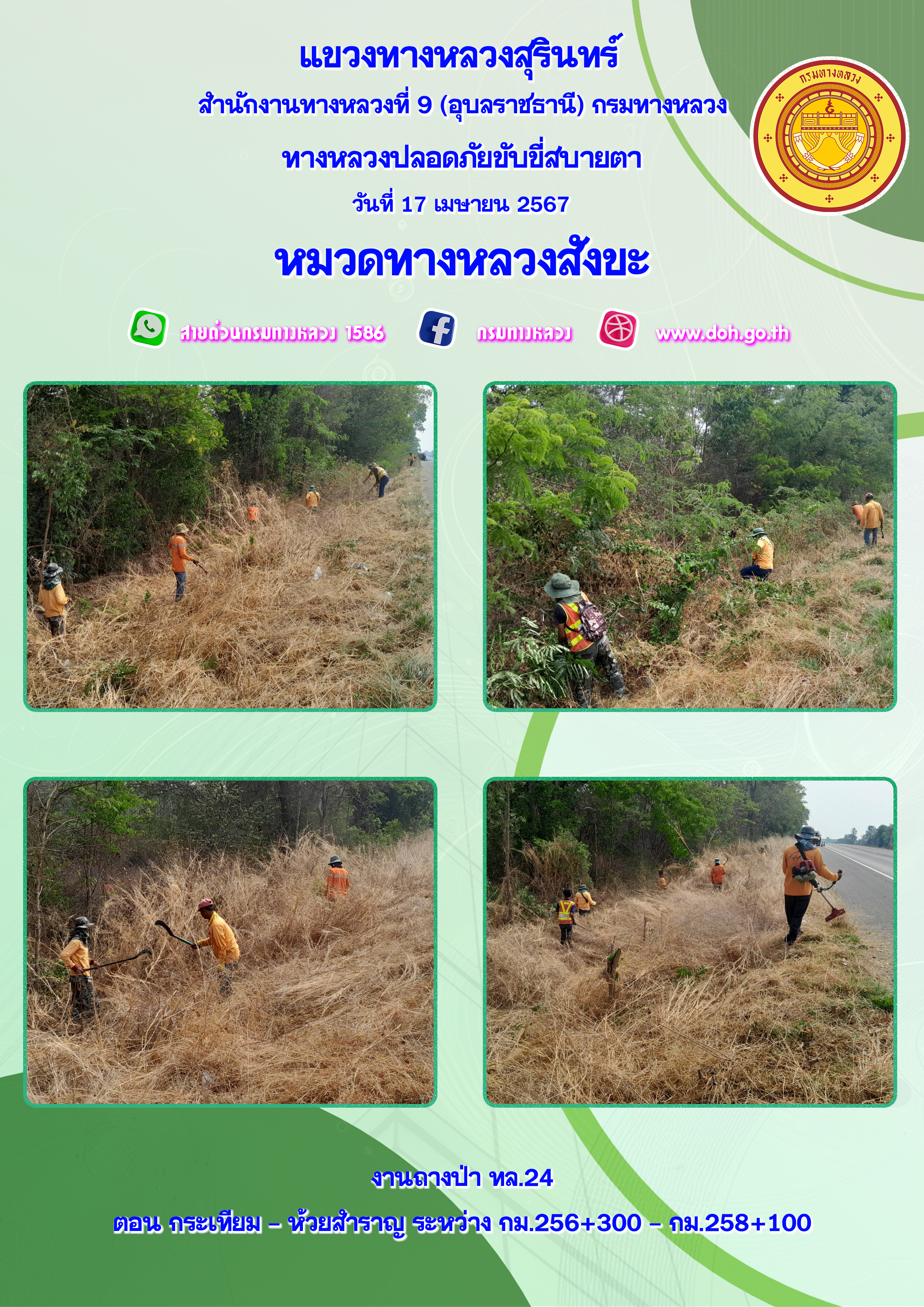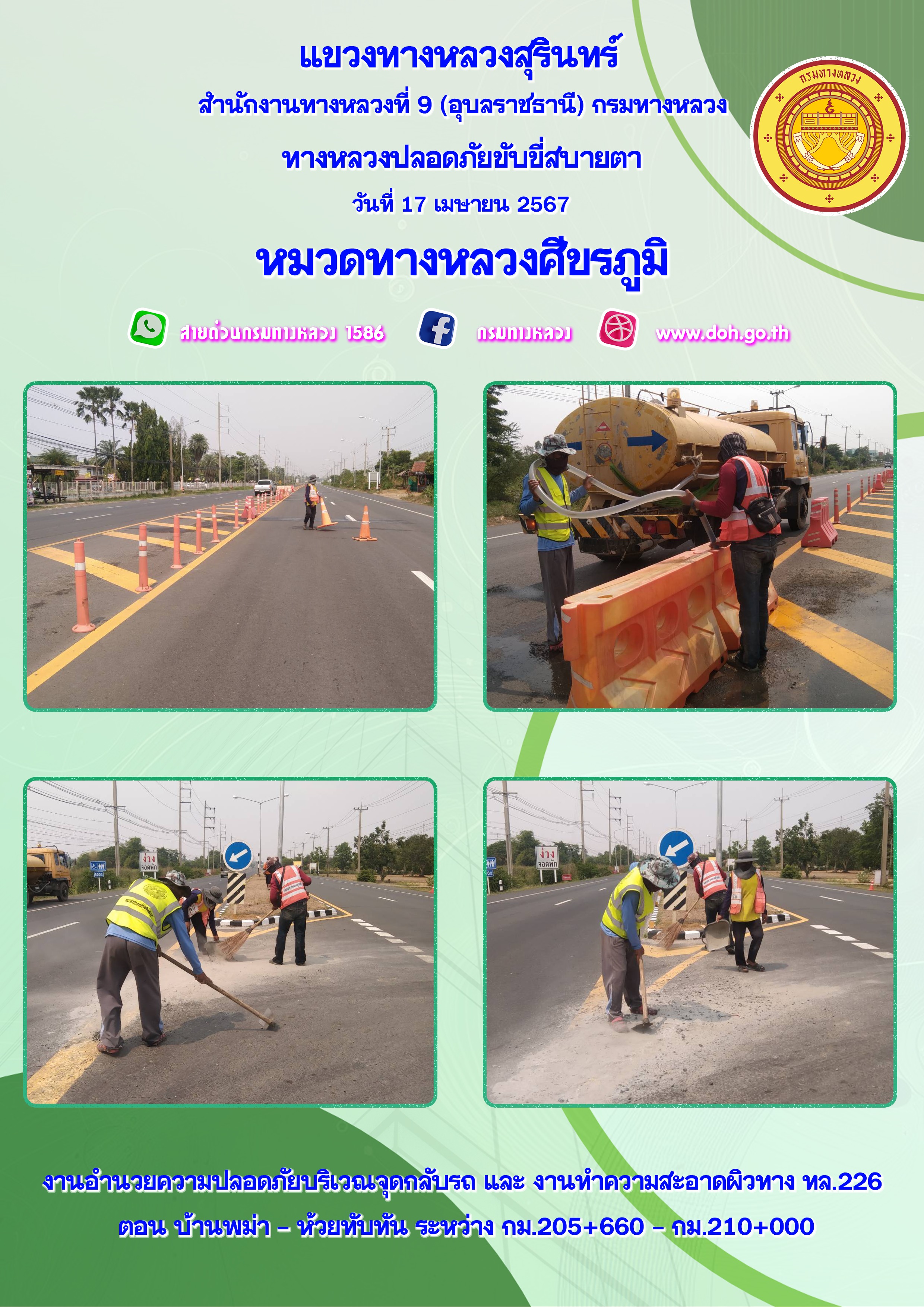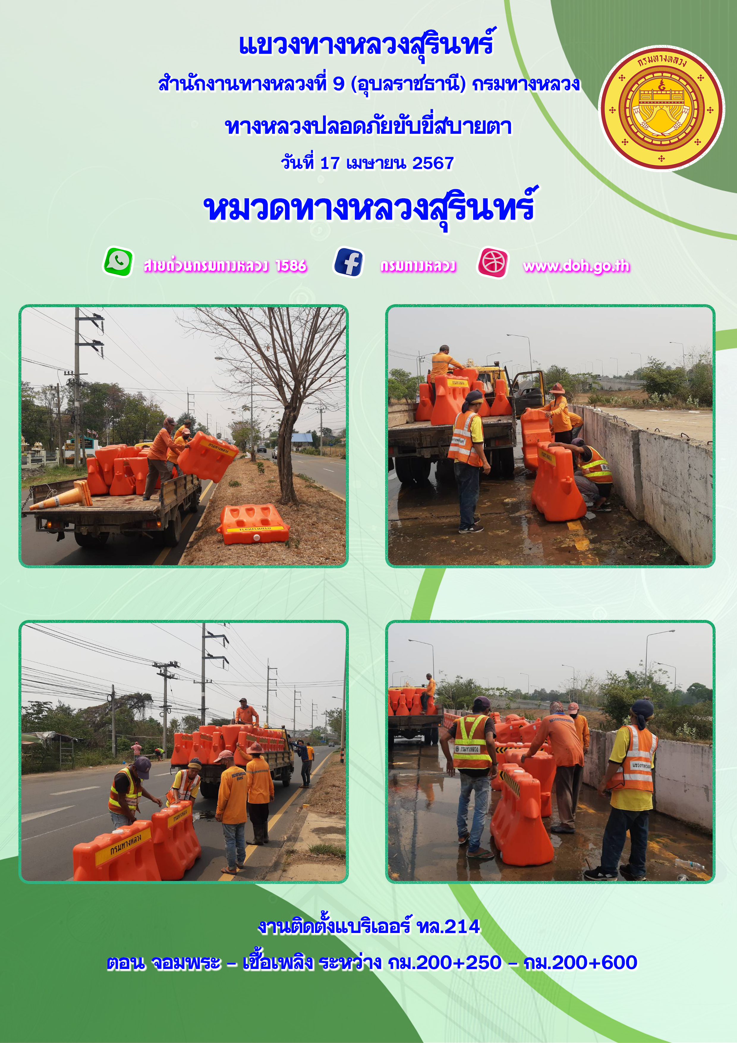ข้อมูลภาพกิจกรรม : ทางหลวงปลอยภัย ขับขี่สบายตา 17 เมษายน 2567