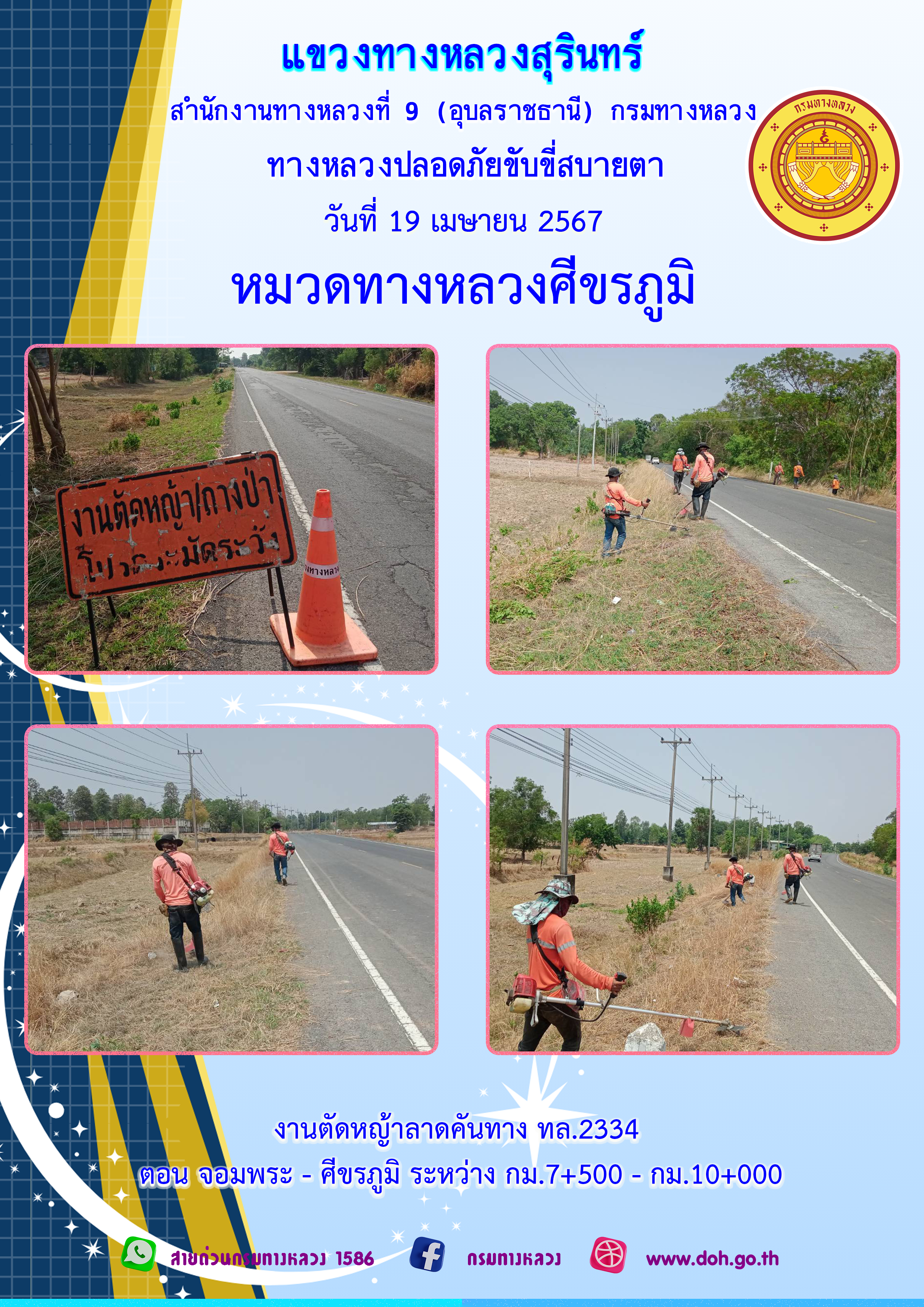 ข้อมูลภาพกิจกรรม : ทางหลวงปลอยภัย ขับขี่สบายตา 18 เมษายน 2567