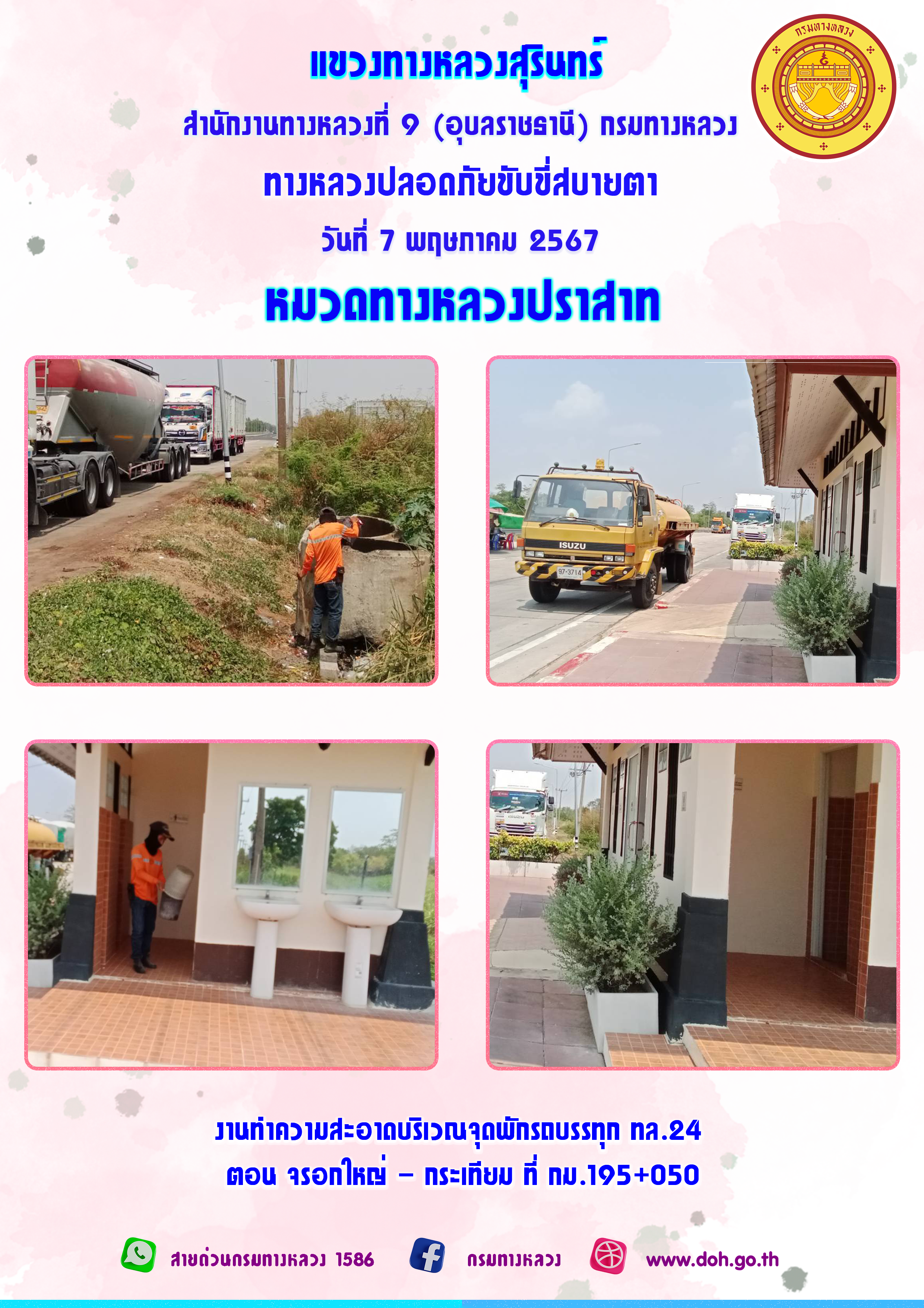 ข้อมูลภาพกิจกรรม : ทางหลวงปลอยภัย ขับขี่สบายตา 7 พฤษภาคม 2567