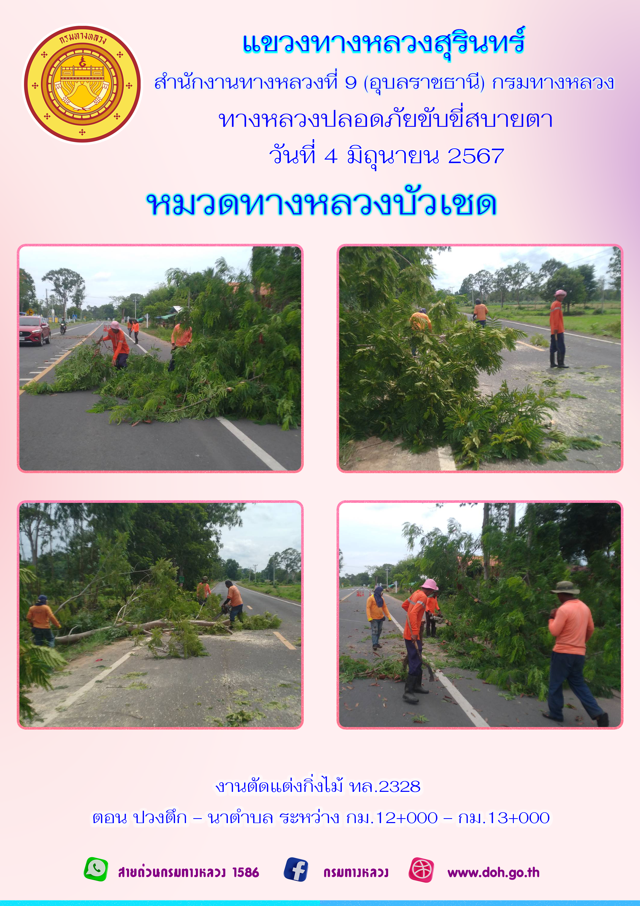 ข้อมูลภาพกิจกรรม : ทางหลวงปลอยภัย ขับขี่สบายตา 4 มิถุนายน 2567