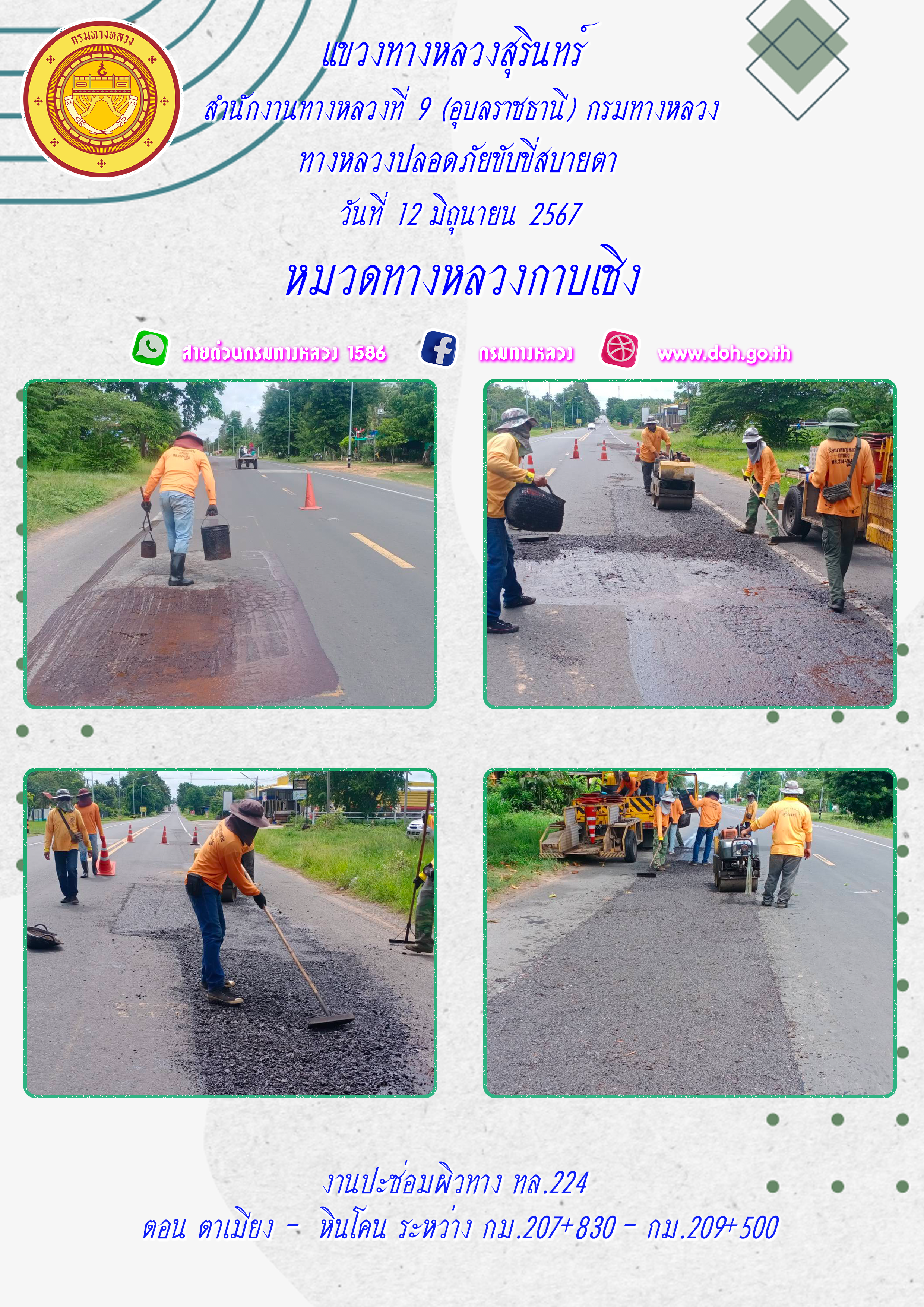 ข้อมูลภาพกิจกรรม : ทางหลวงปลอยภัย ขับขี่สบายตา 12 มิถุนายน 2567