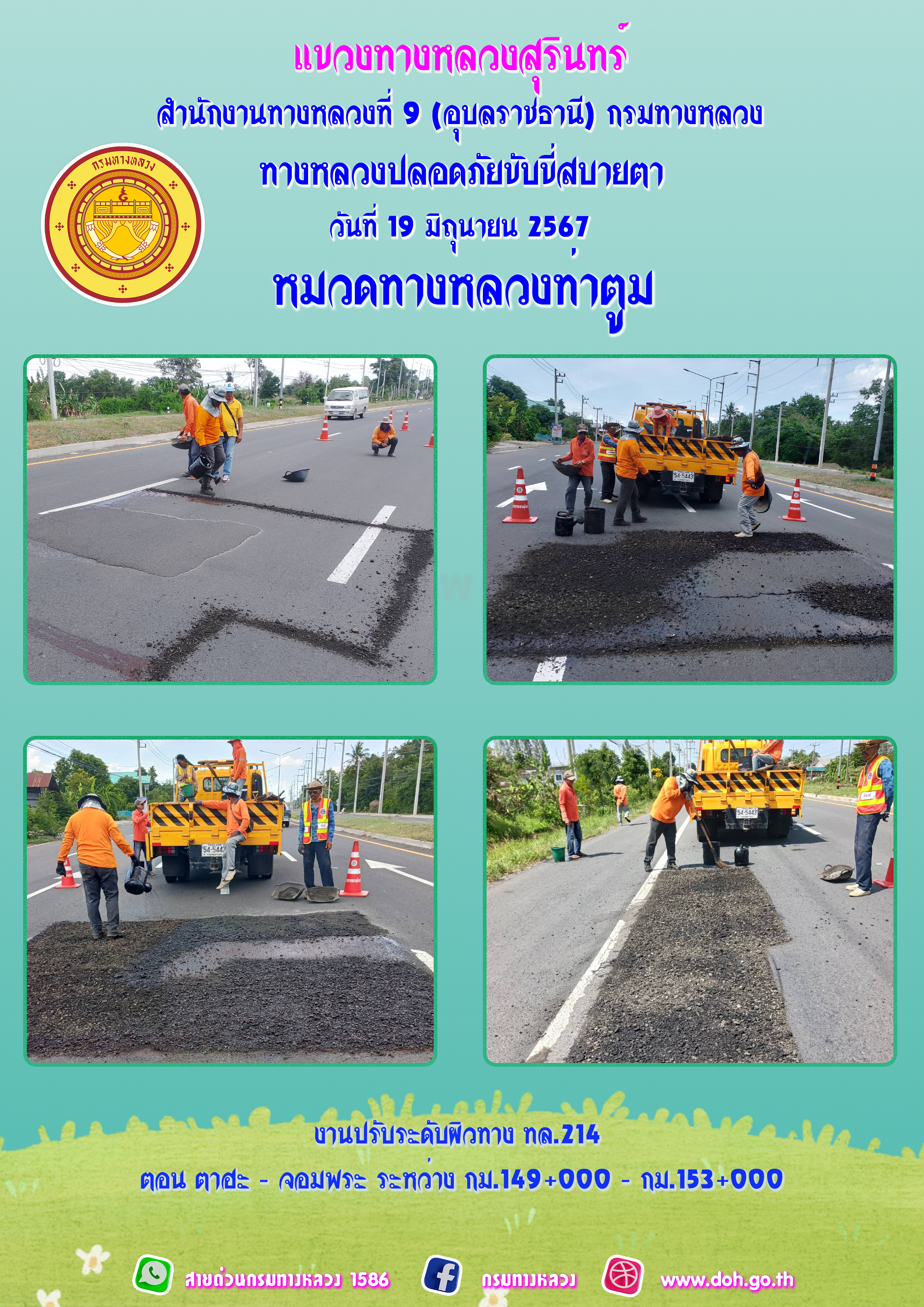 ข้อมูลภาพกิจกรรม : ทางหลวงปลอยภัย ขับขี่สบายตา 19 มิถุนายน 2567
