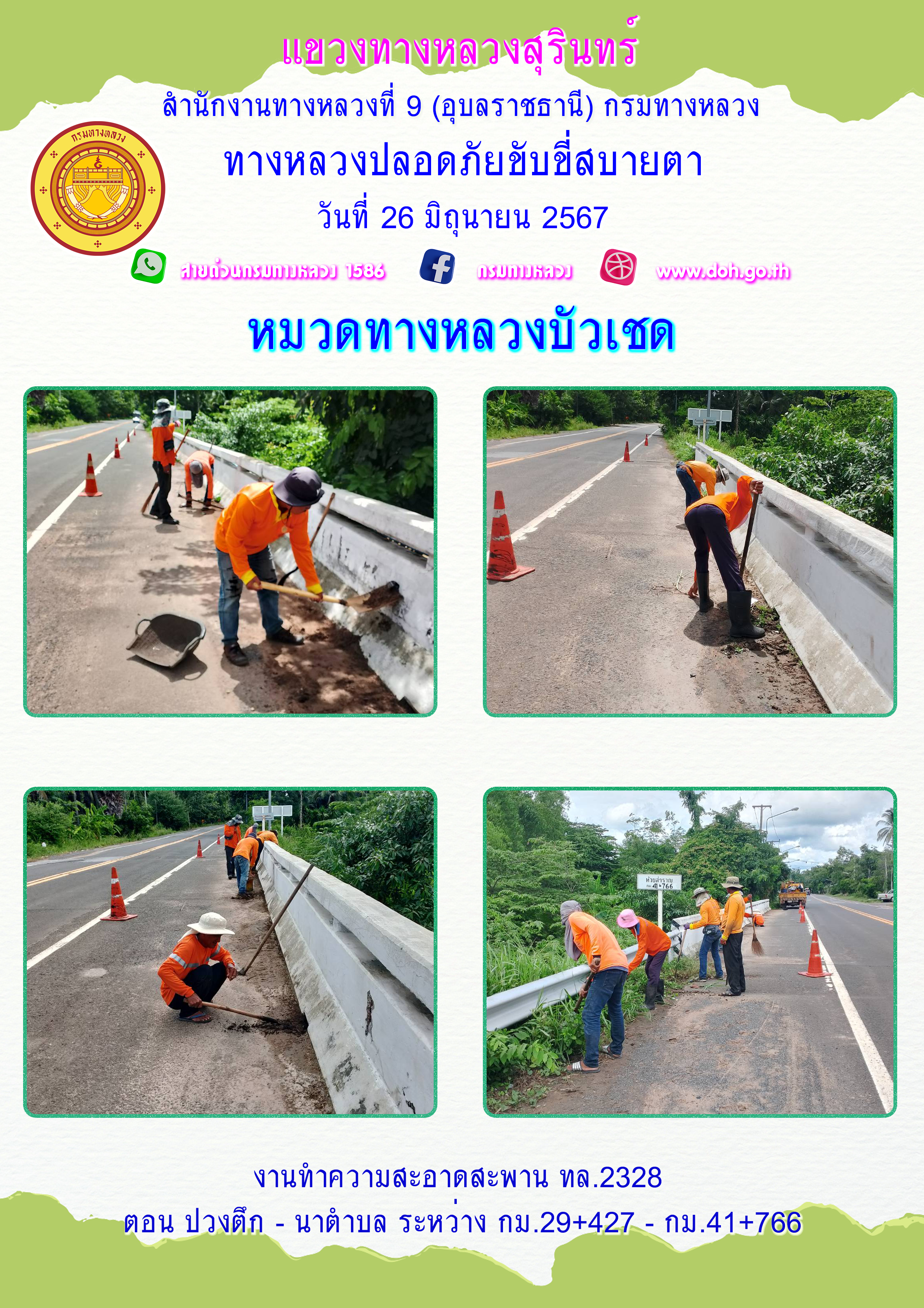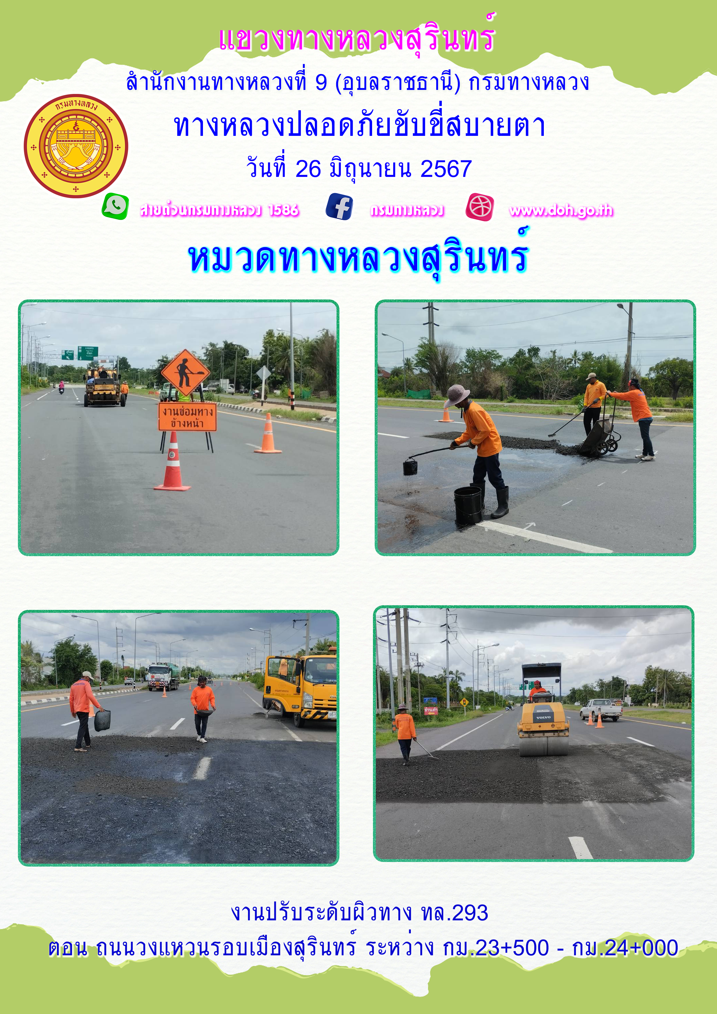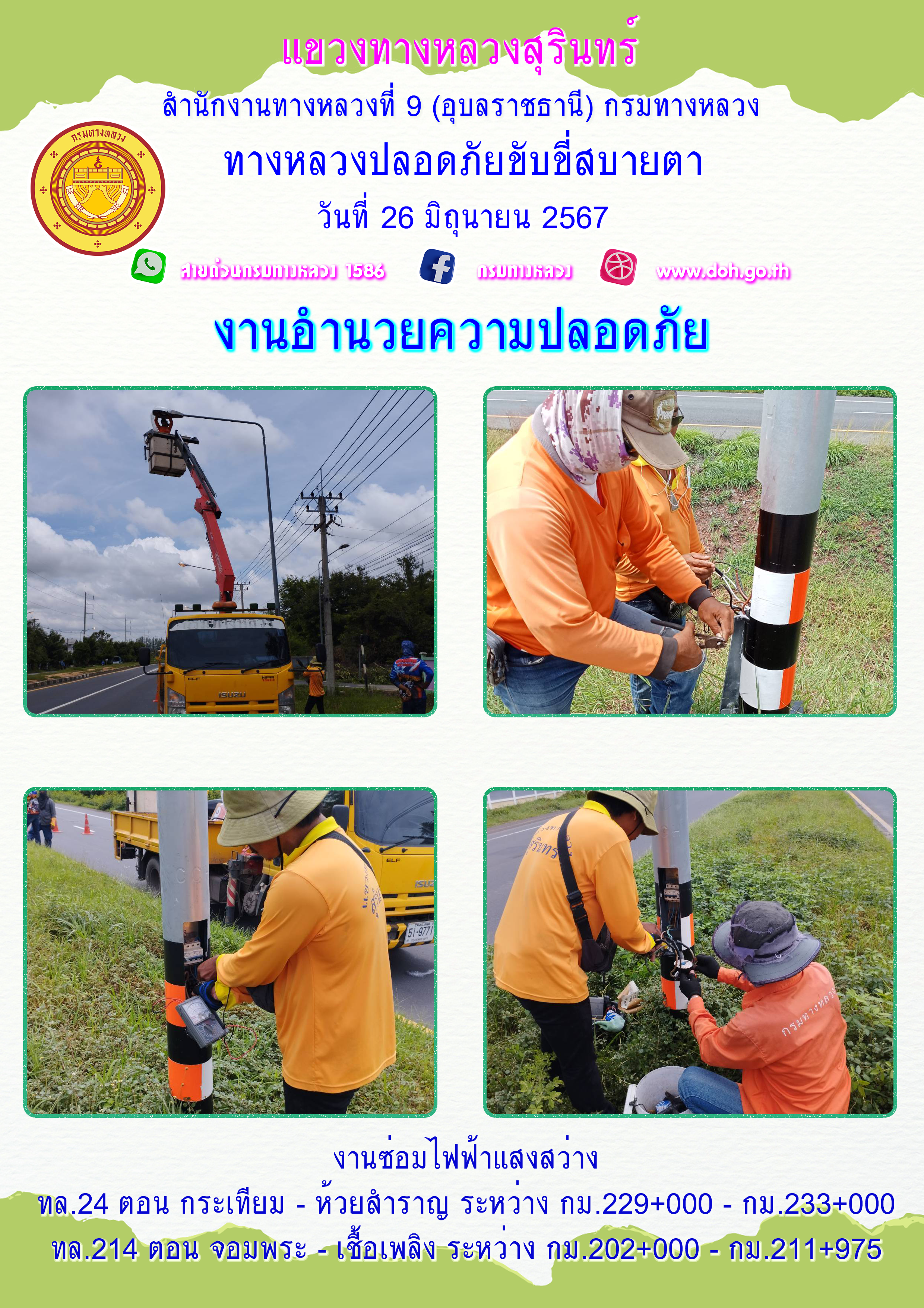 ข้อมูลภาพกิจกรรม : ทางหลวงปลอยภัย ขับขี่สบายตา 26 มิถุนายน 2567
