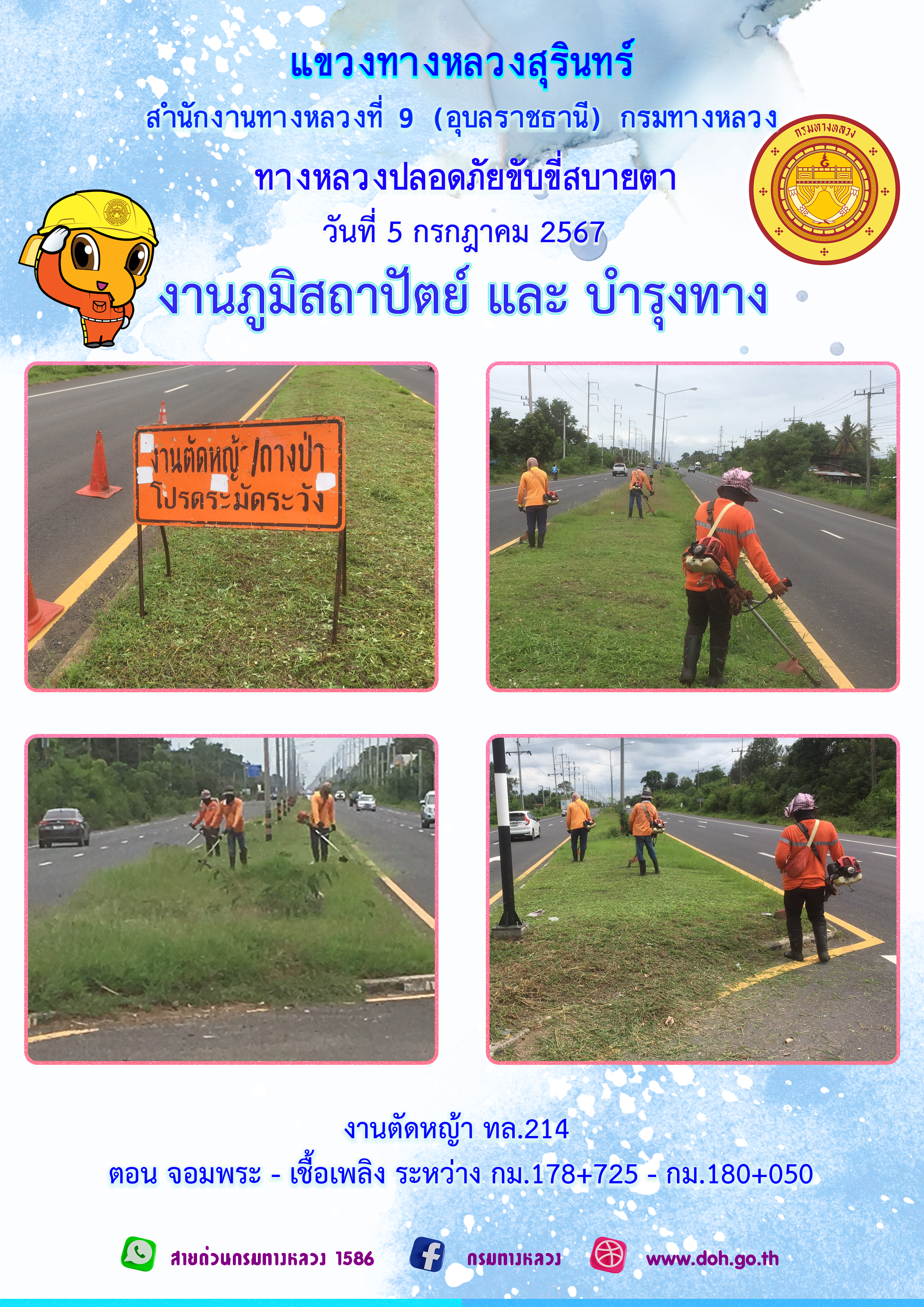 ข้อมูลภาพกิจกรรม : ทางหลวงปลอยภัย ขับขี่สบายตา 5 กรกฎาคม 2567