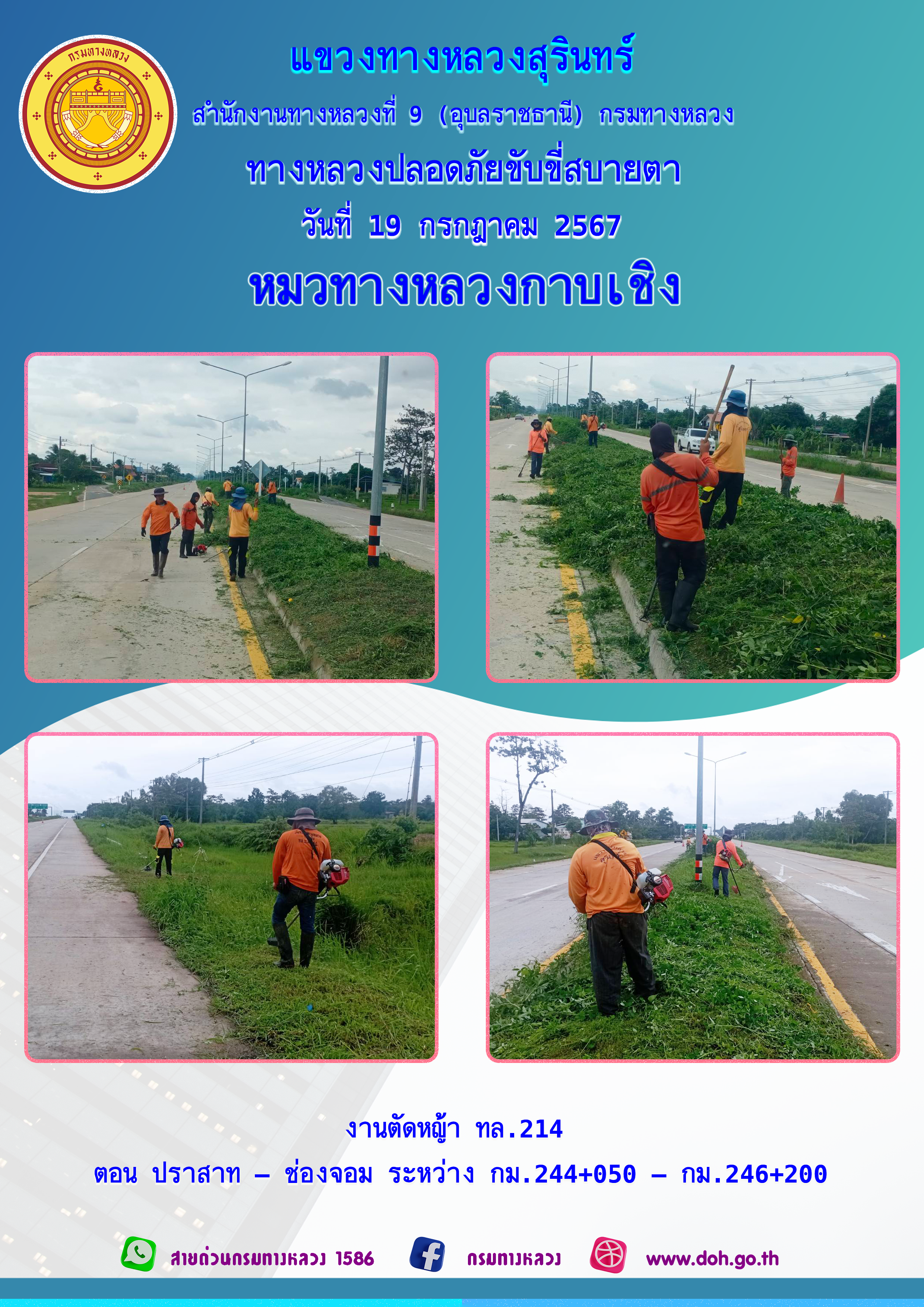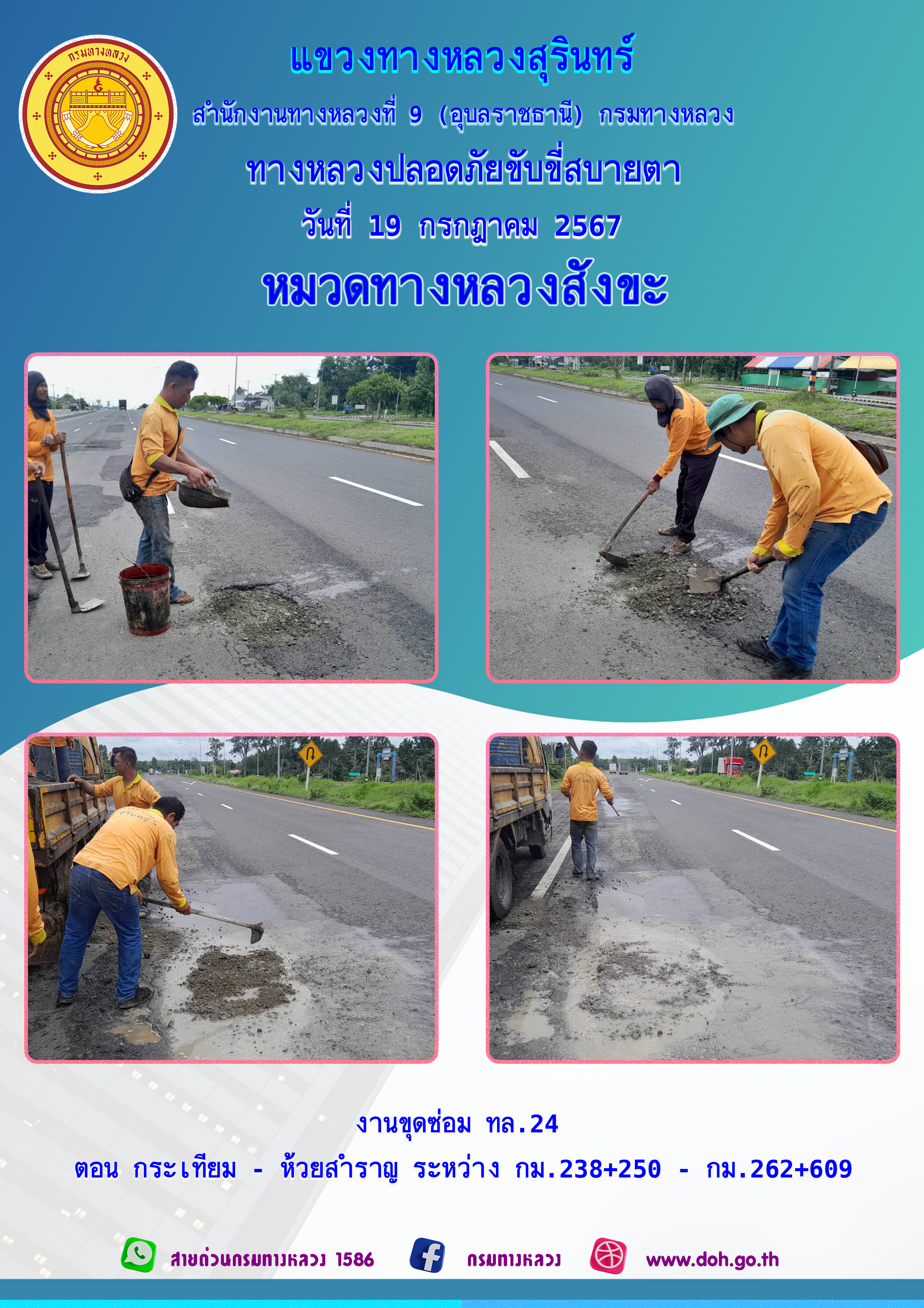 ข้อมูลภาพกิจกรรม : ทางหลวงปลอยภัย ขับขี่สบายตา 19 กรกฎาคม 2567