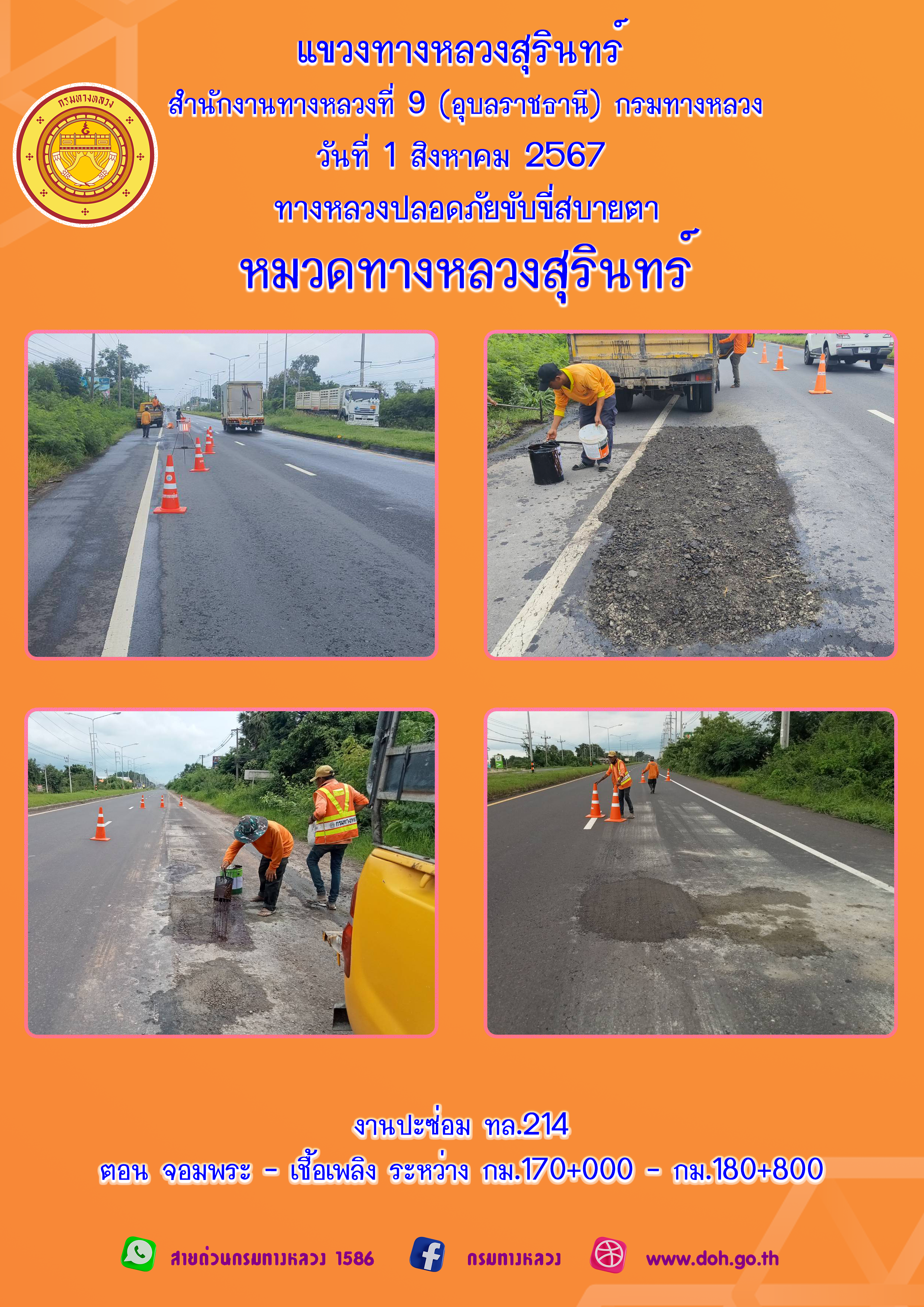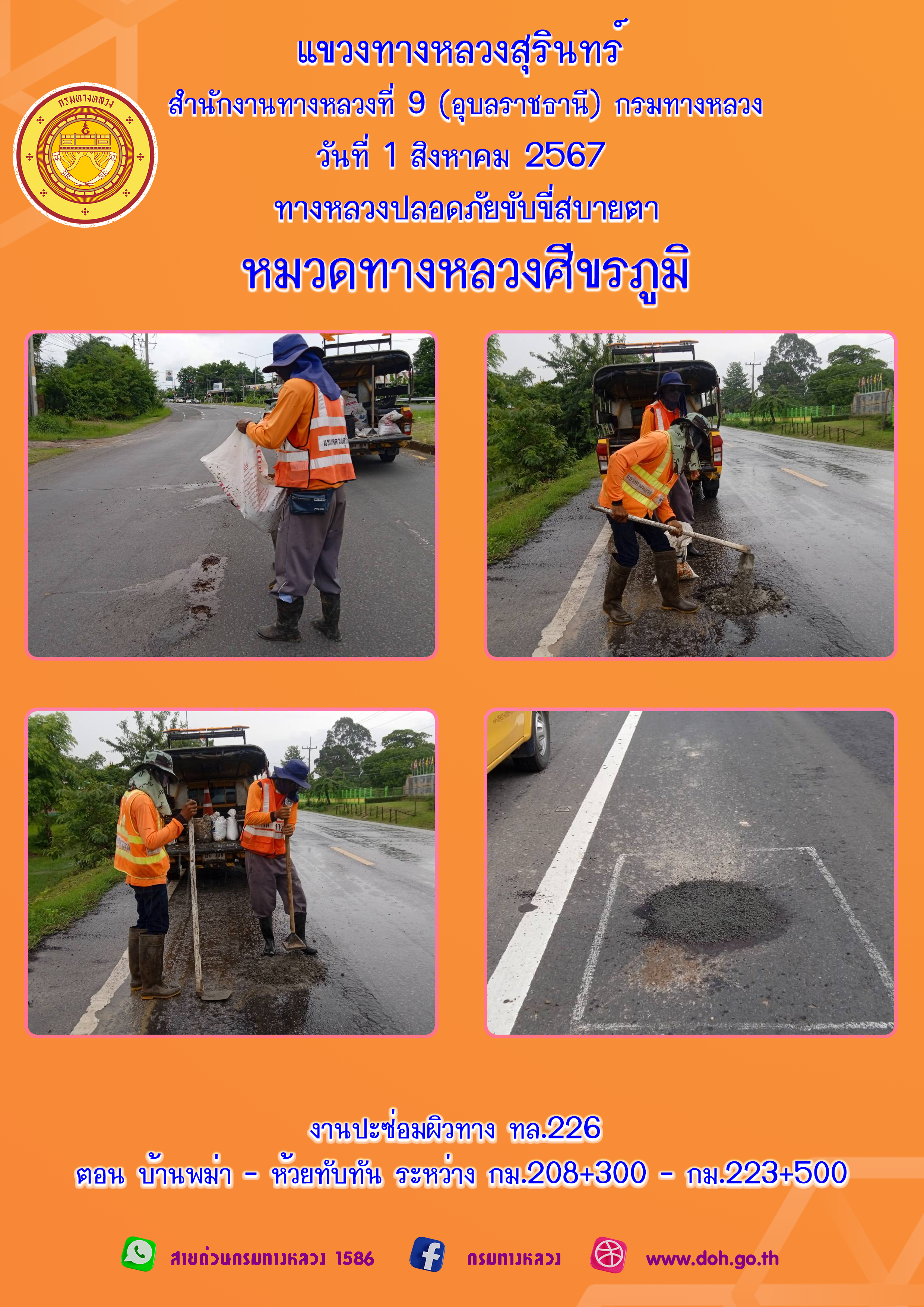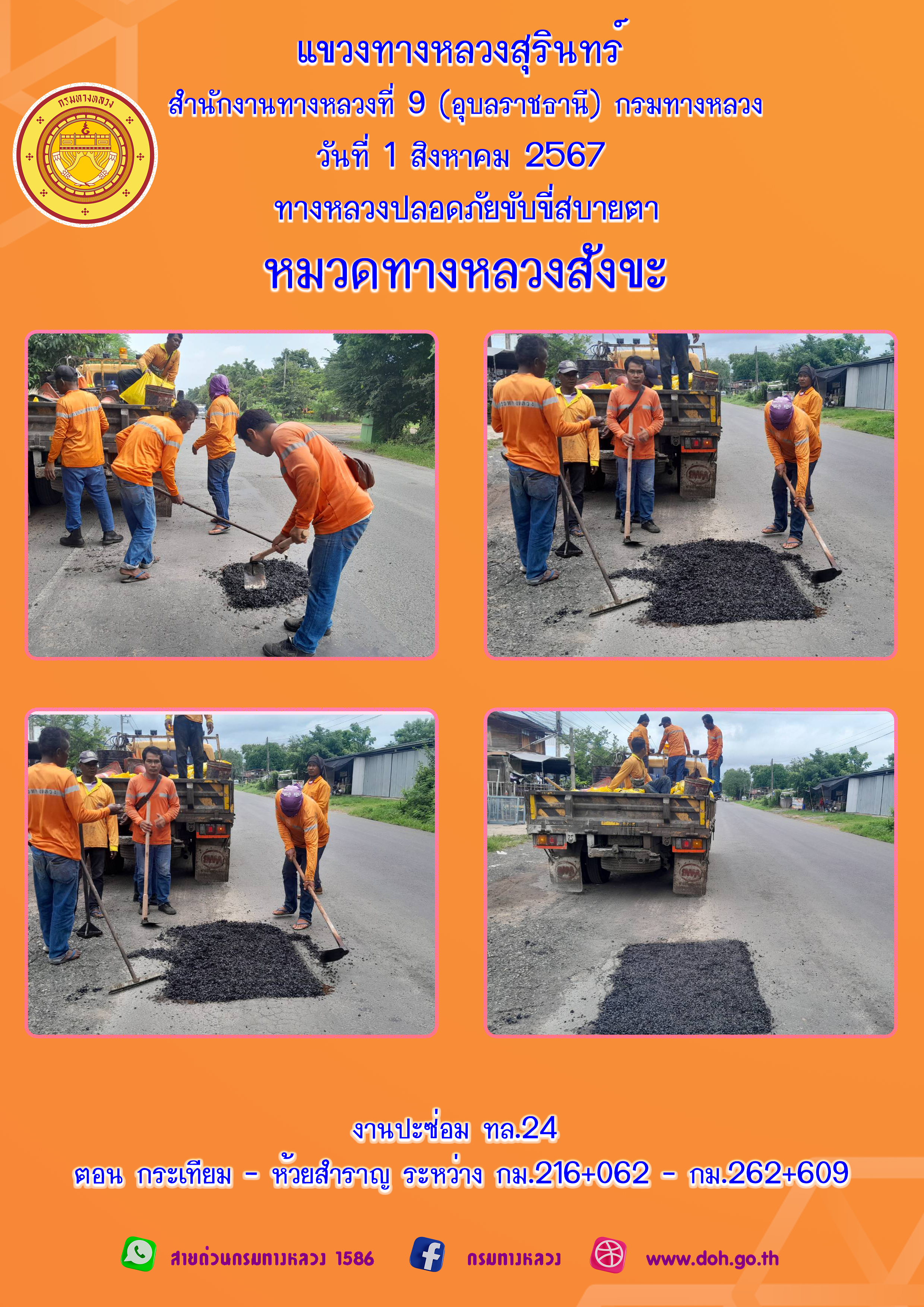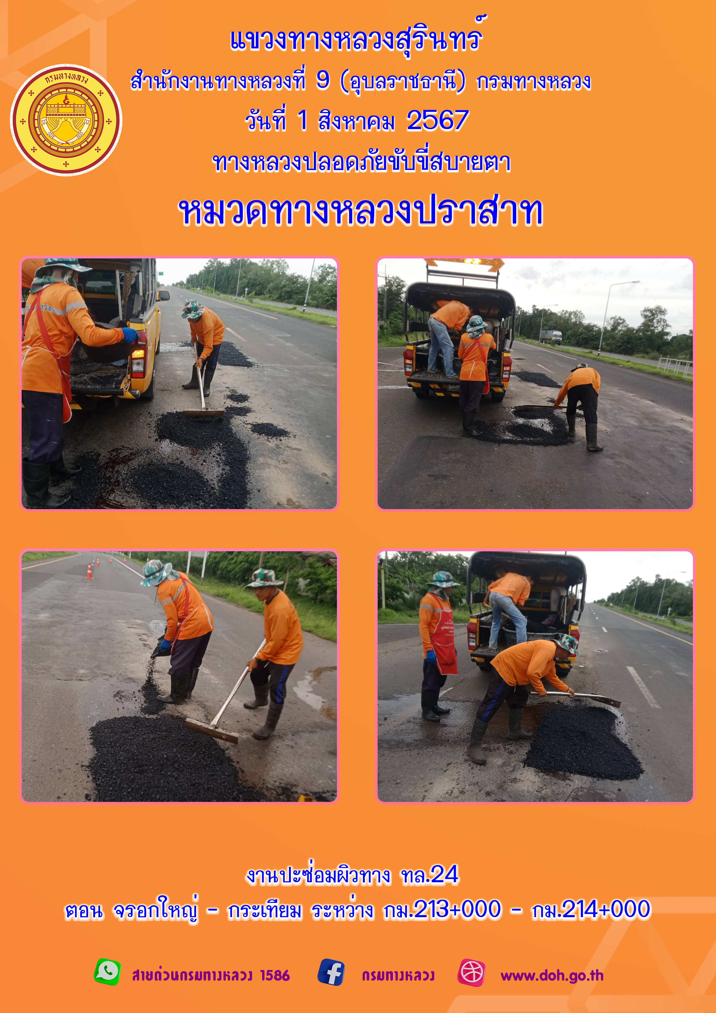 ข้อมูลภาพกิจกรรม : ทางหลวงปลอยภัย ขับขี่สบายตา 1 สิงหาคม 2567