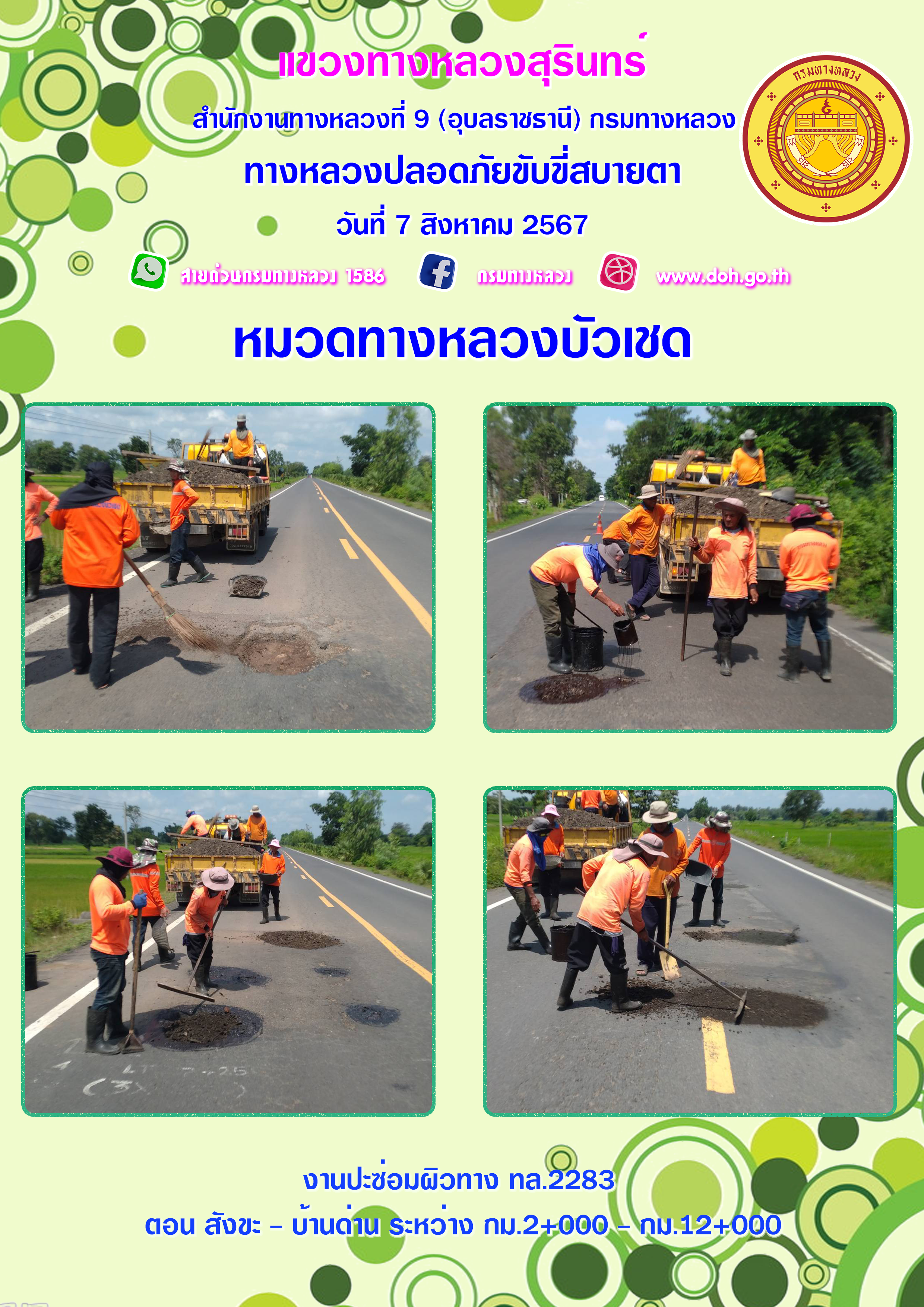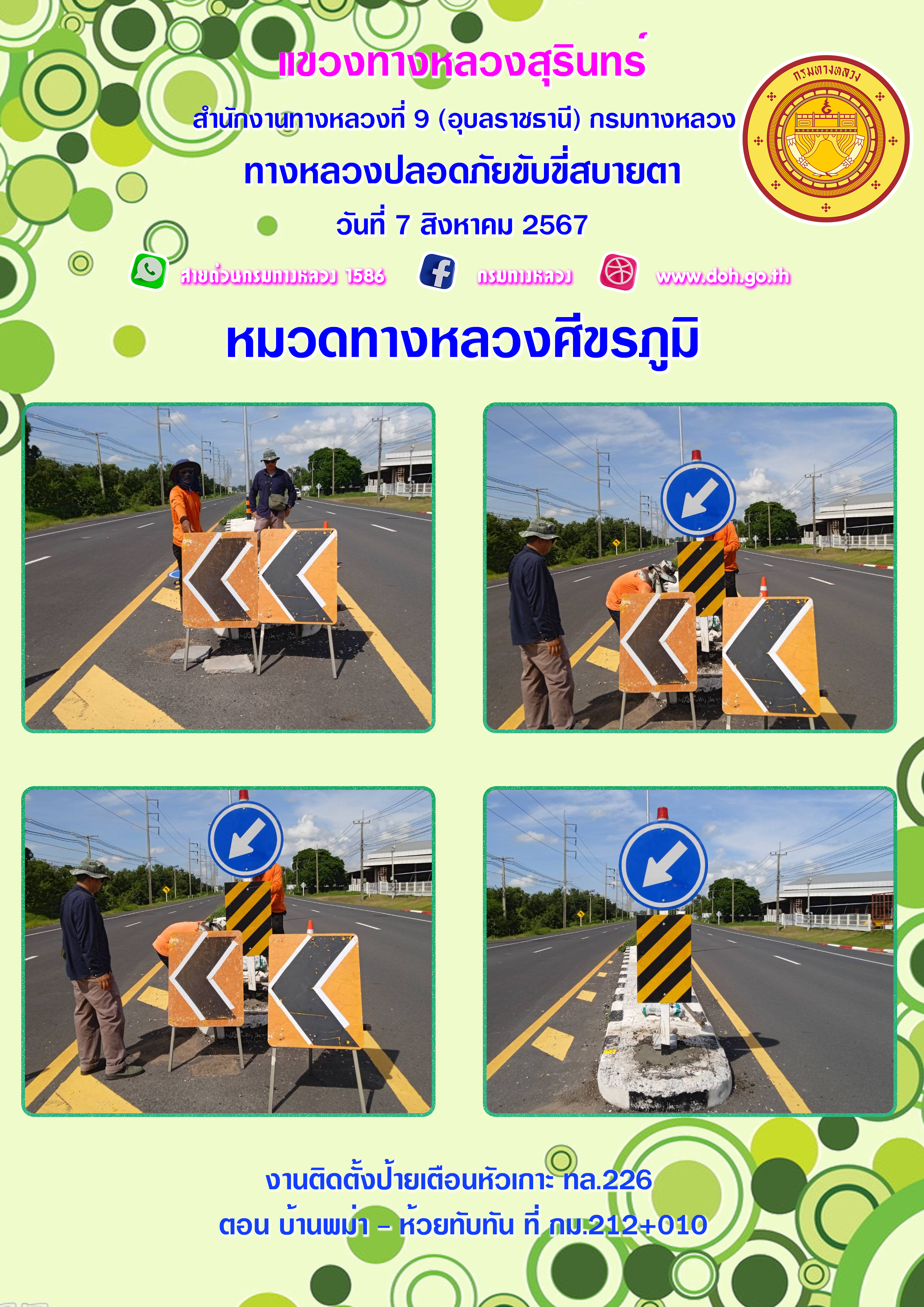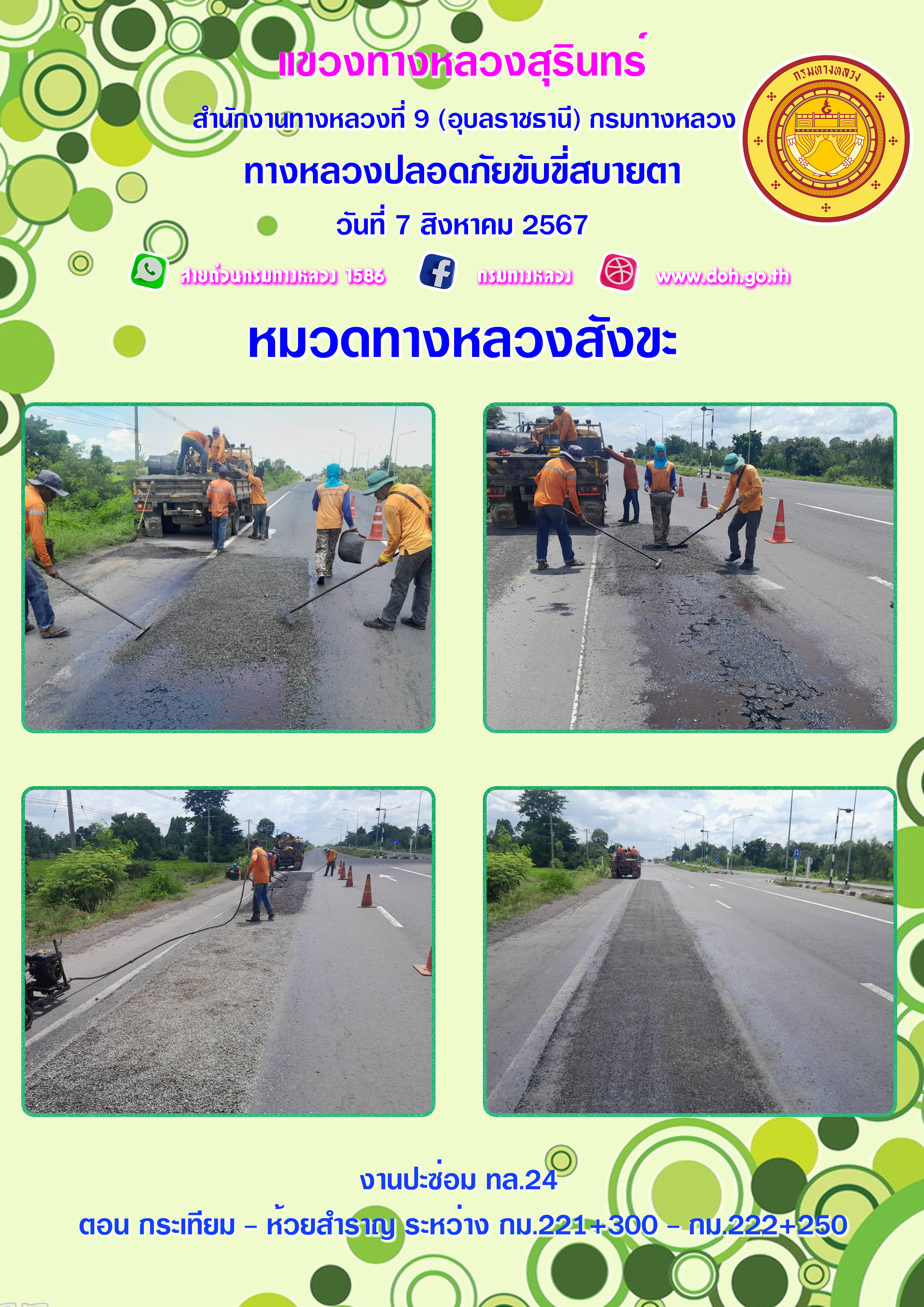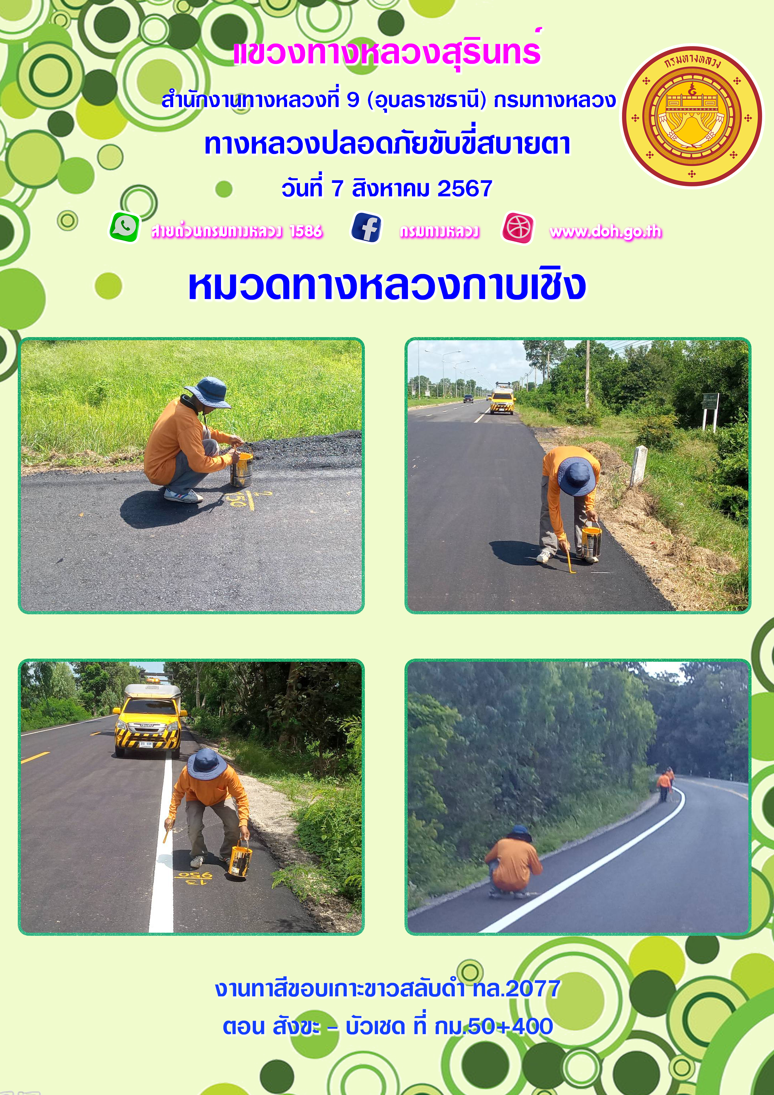 ข้อมูลภาพกิจกรรม : ทางหลวงปลอยภัย ขับขี่สบายตา 7 สิงหาคม 2567