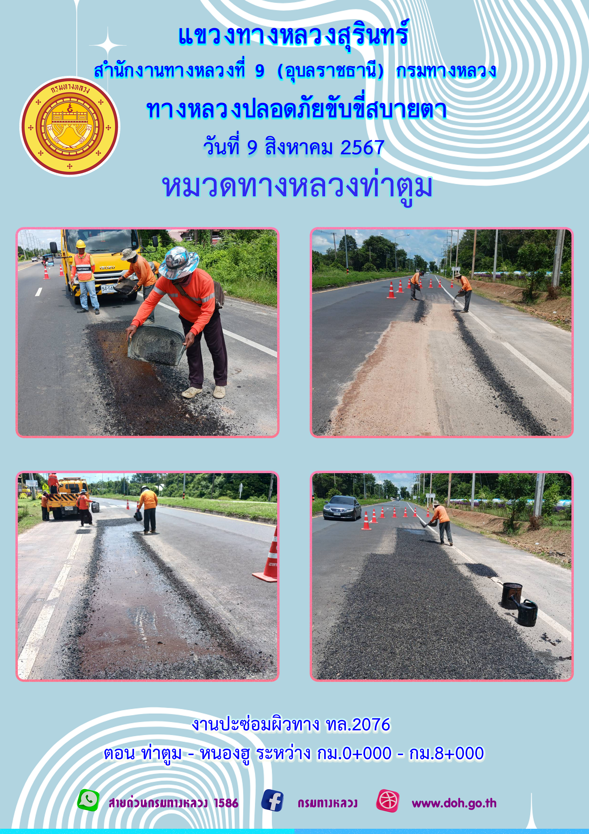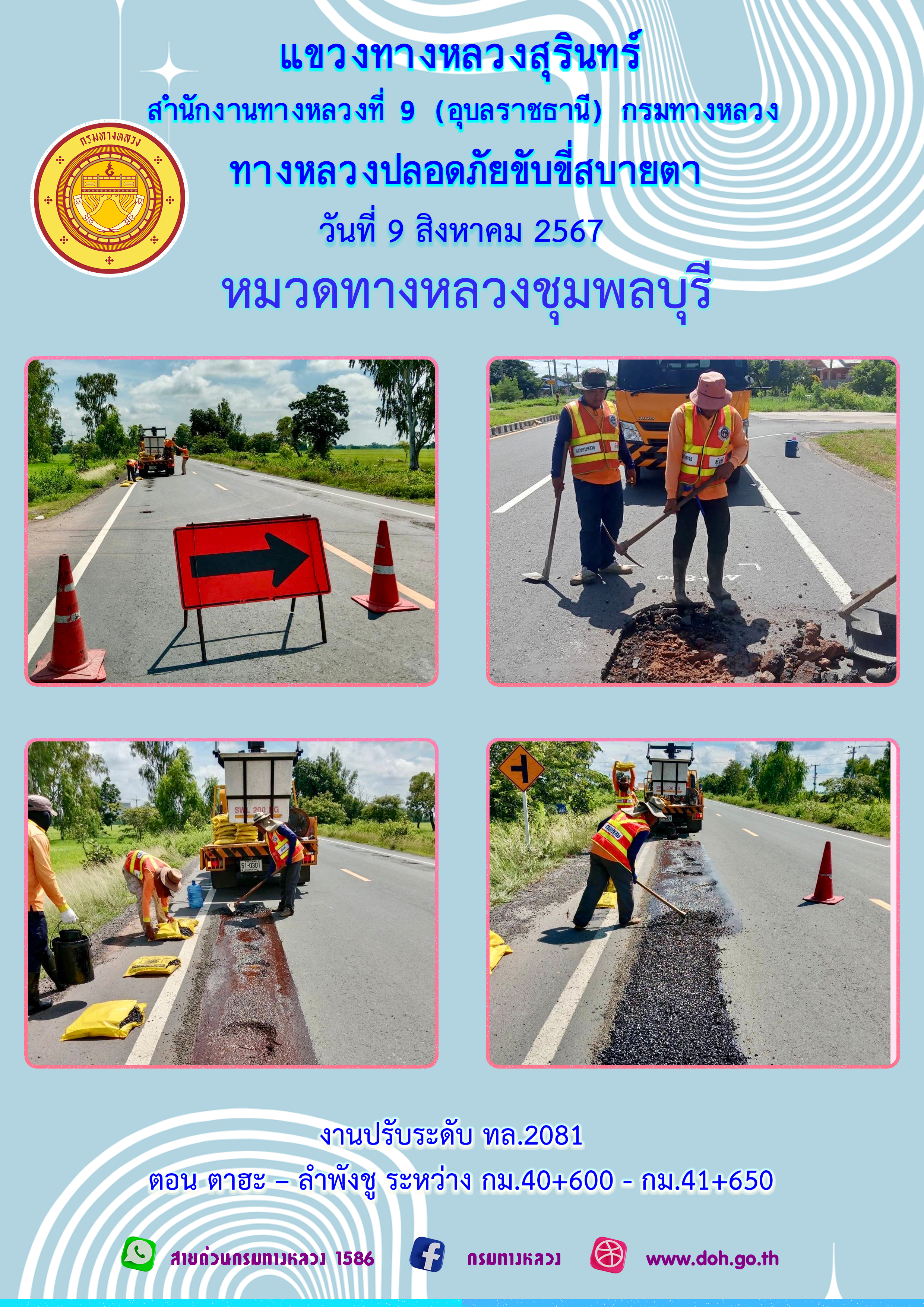 ข้อมูลภาพกิจกรรม : ทางหลวงปลอยภัย ขับขี่สบายตา 9 สิงหาคม 2567