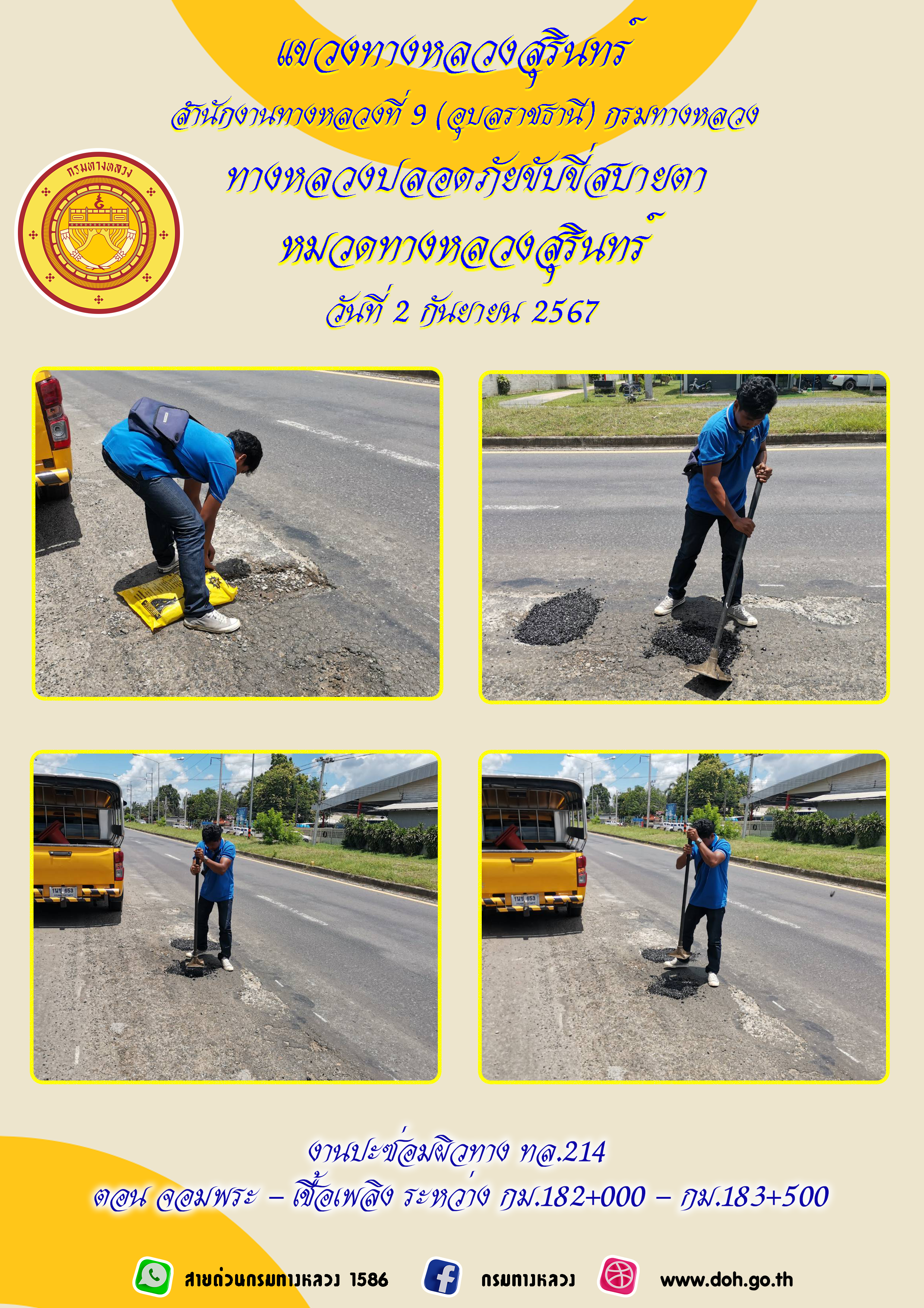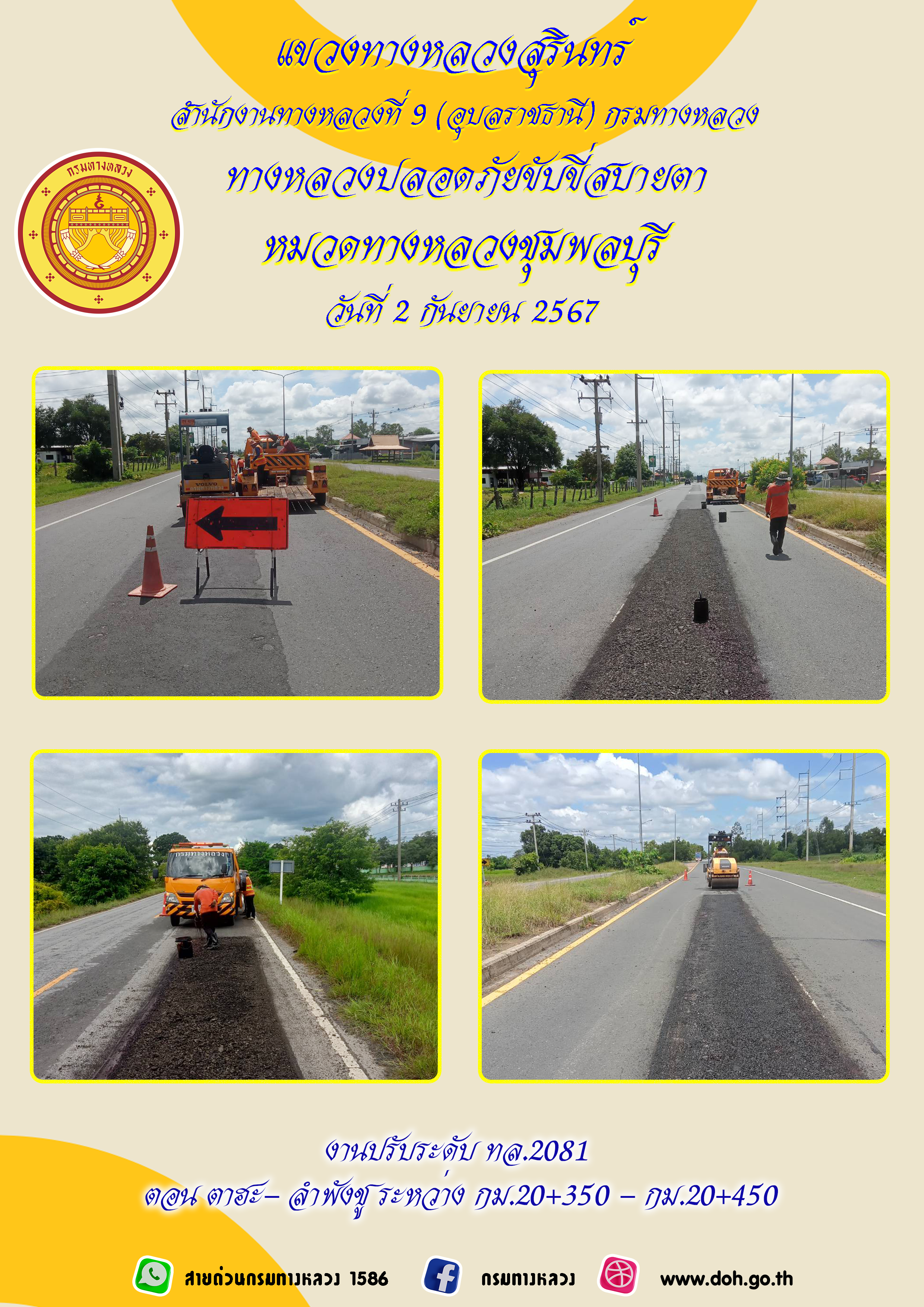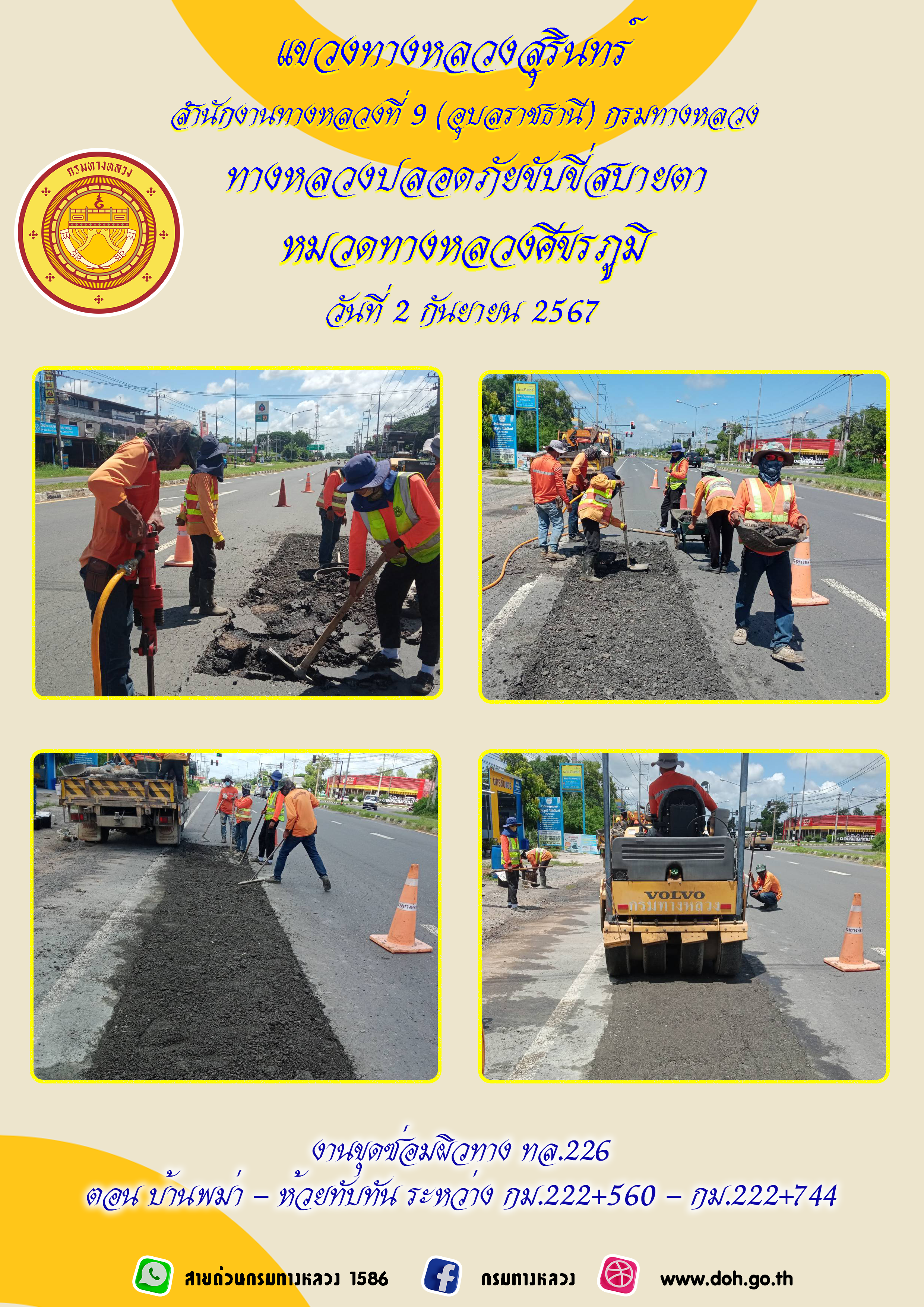 ข้อมูลภาพกิจกรรม : ทางหลวงปลอยภัย ขับขี่สบายตา 2 กันยายน 2567