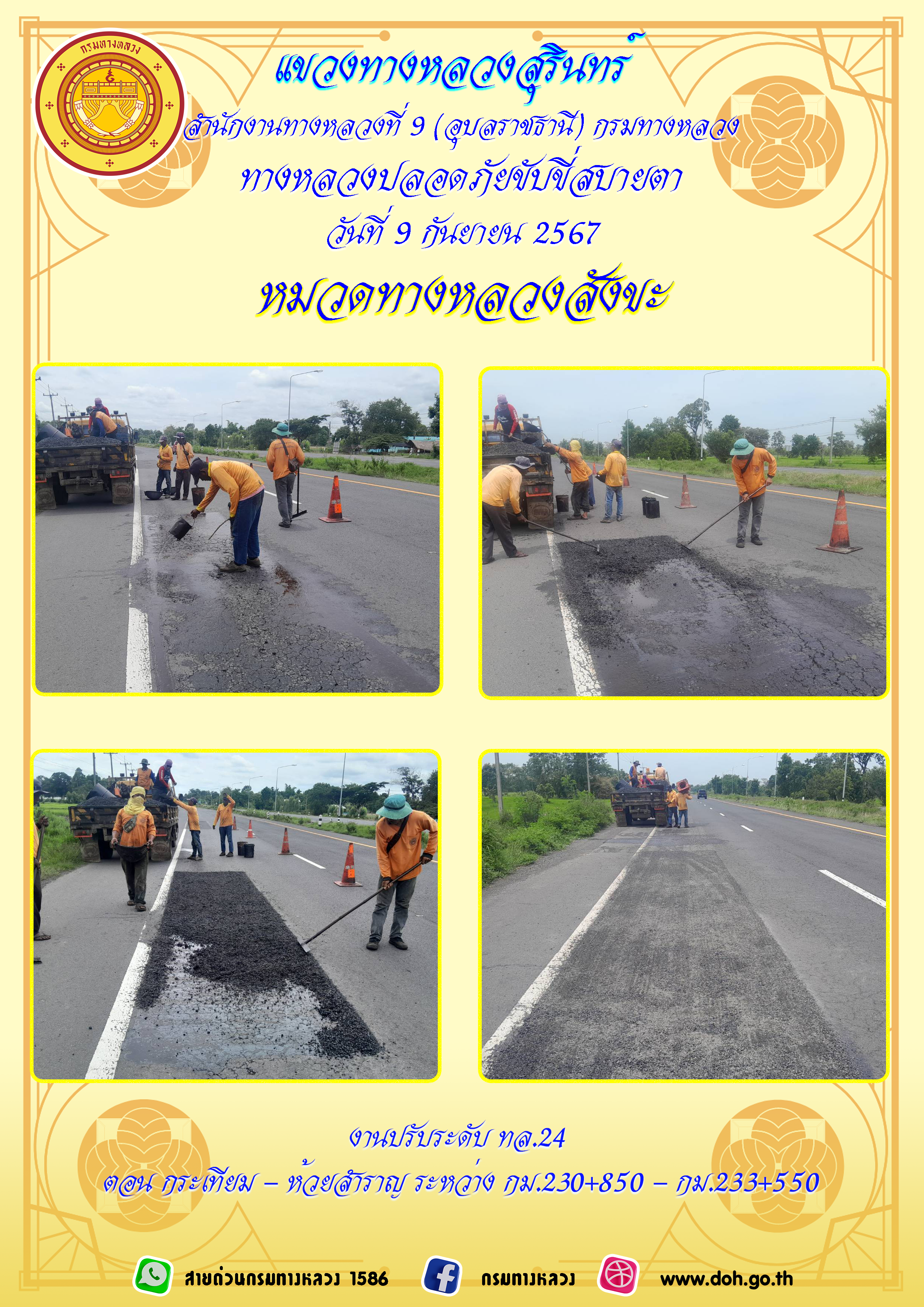 ทางหลวงปลอยภัย ขับขี่สบายตา 9 กันยายน 2567