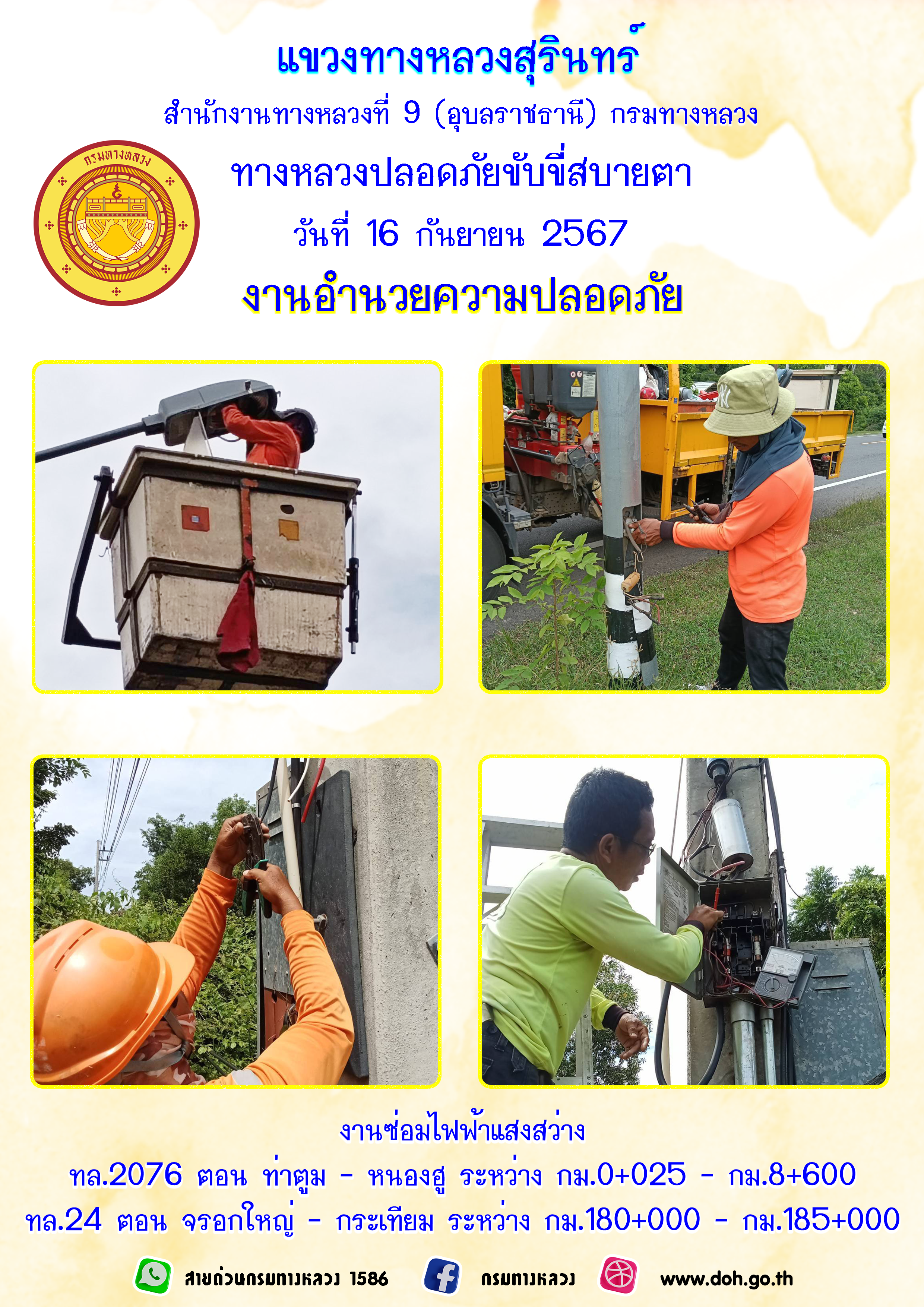 ทางหลวงปลอยภัย ขับขี่สบายตา 16 กันยายน 2567