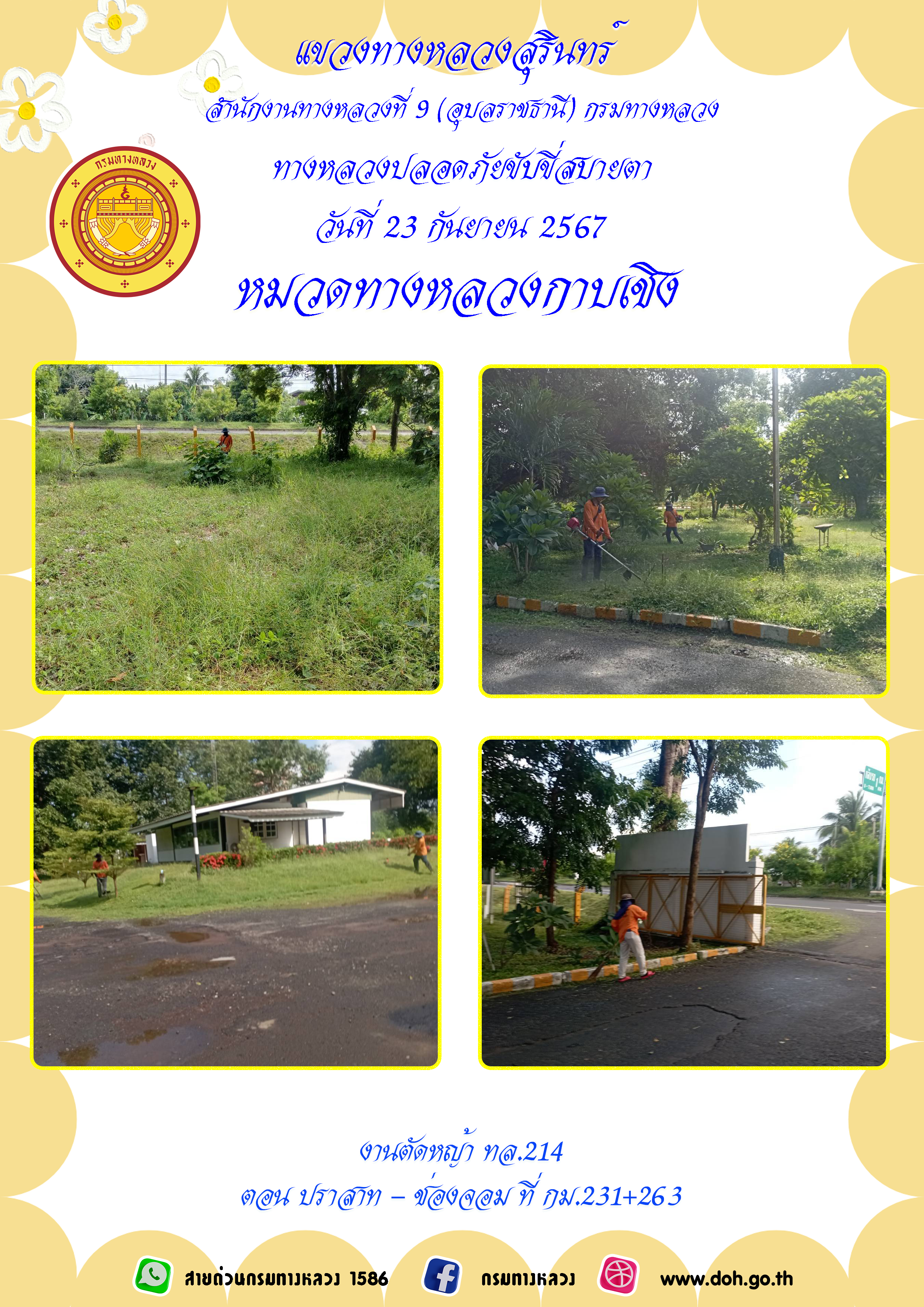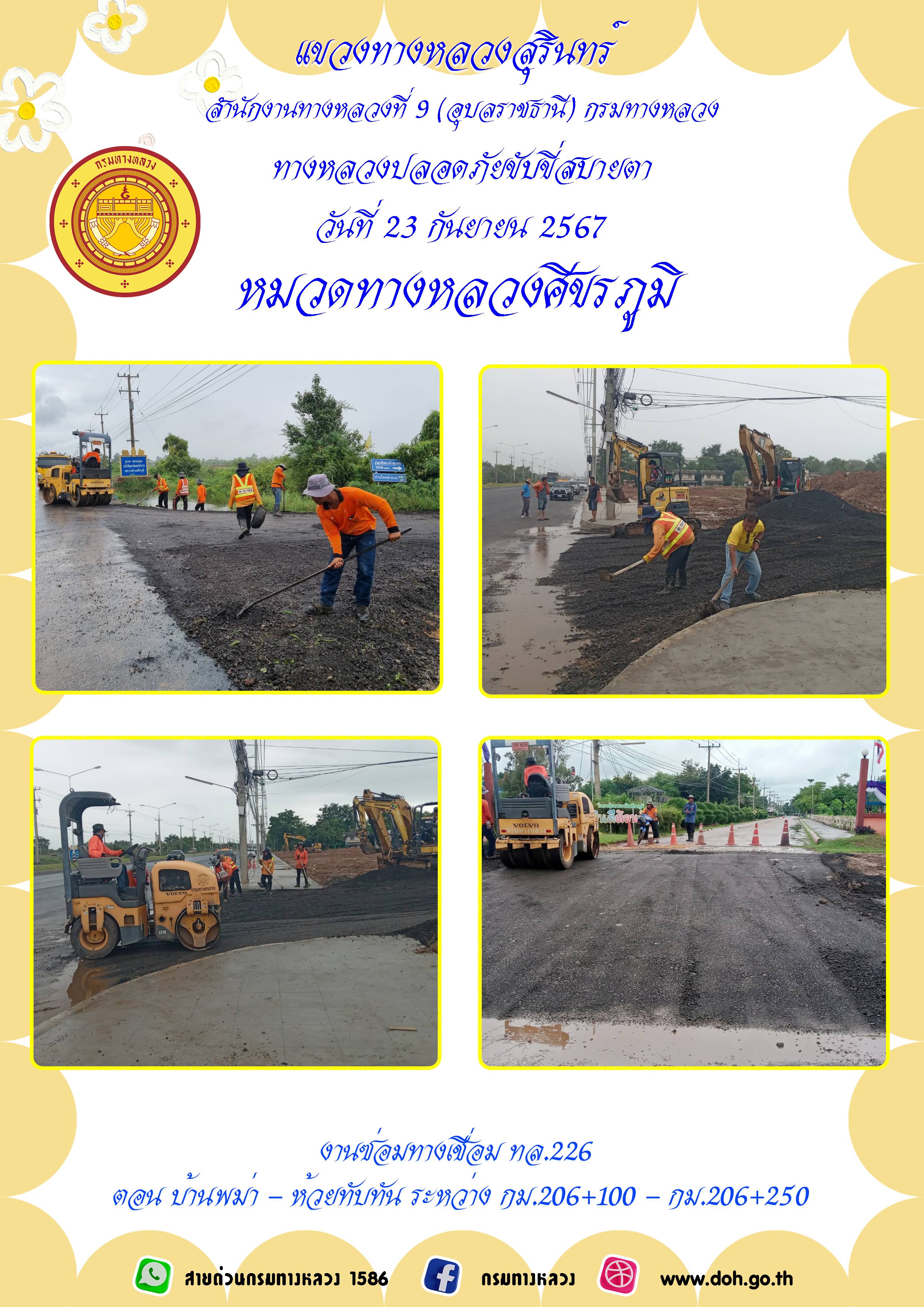 ข้อมูลภาพกิจกรรม : ทางหลวงปลอยภัย ขับขี่สบายตา 23 กันยายน 2567