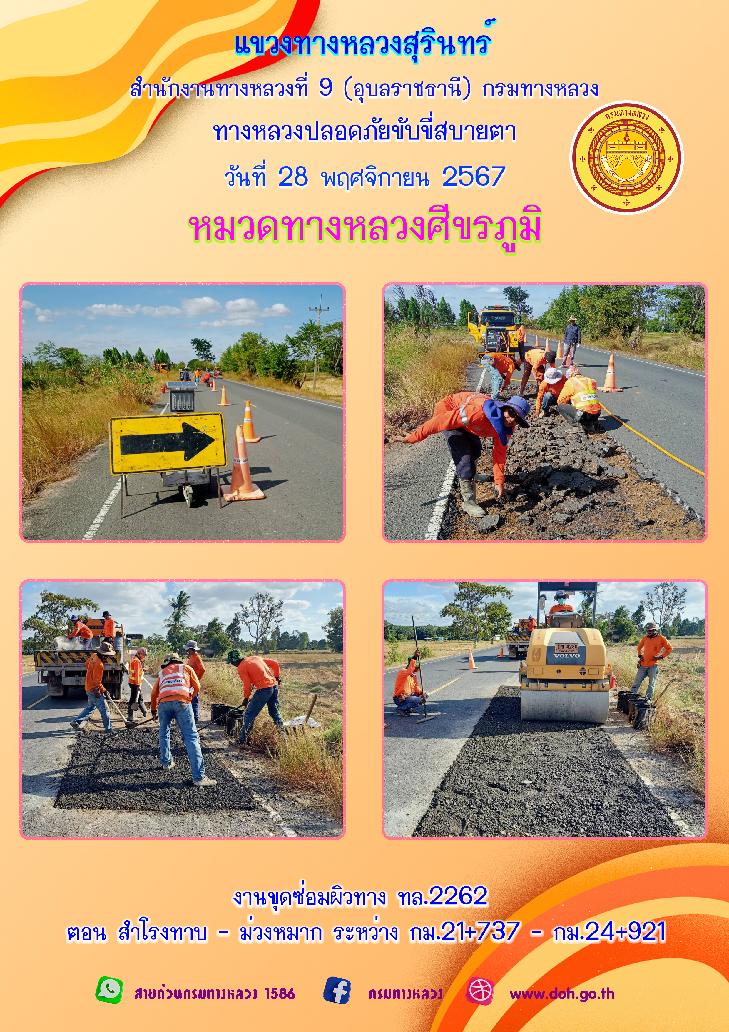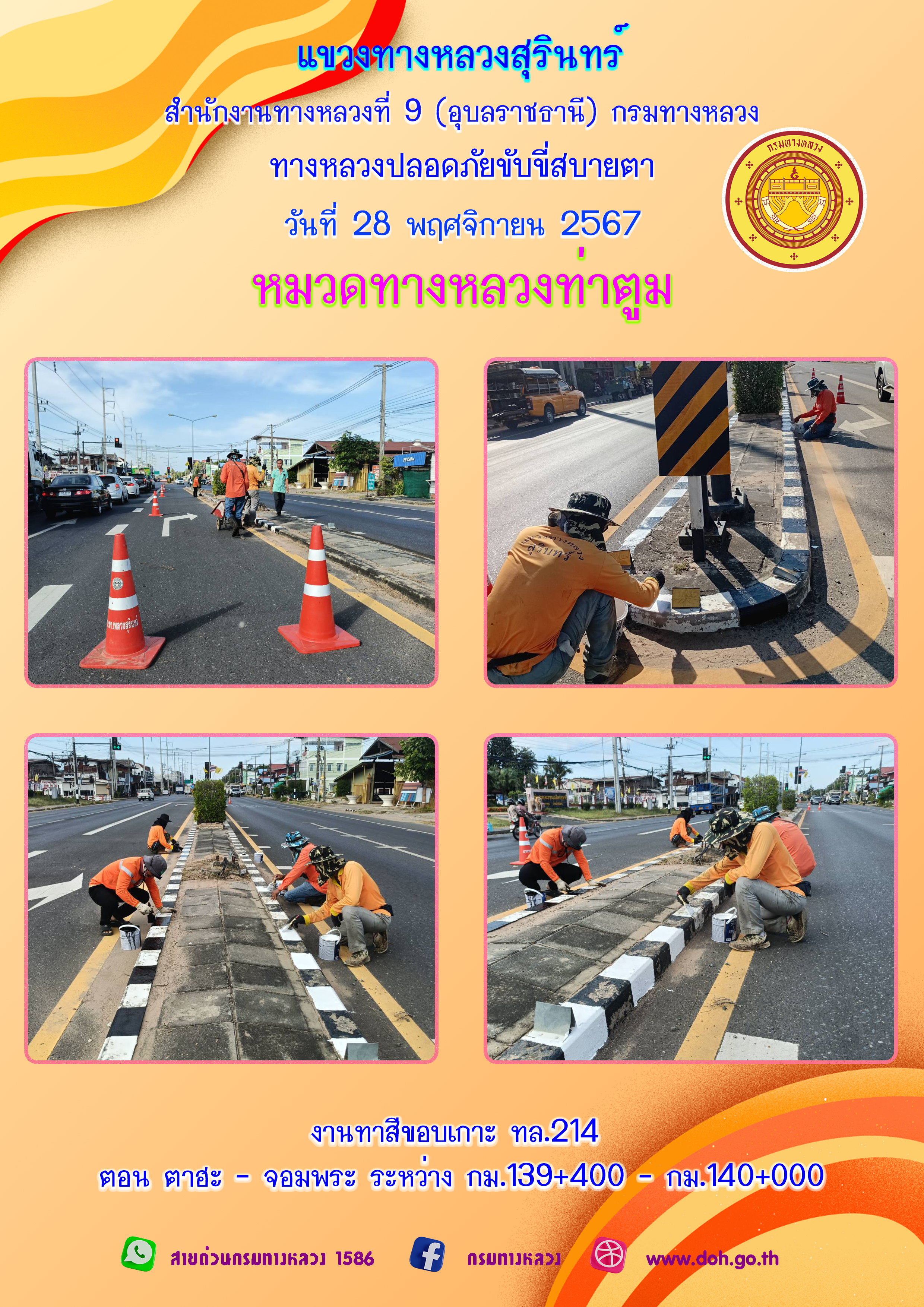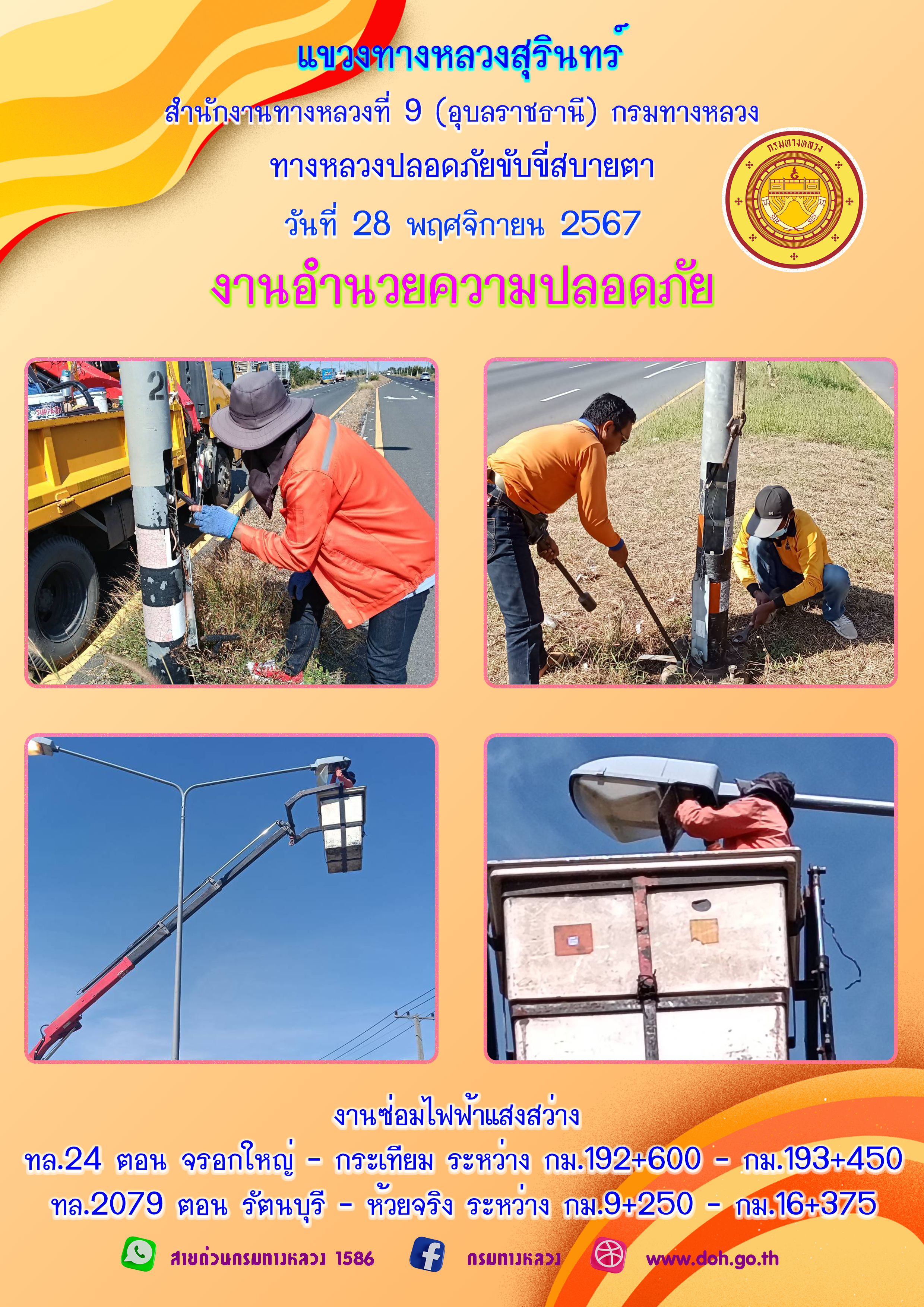 ข้อมูลภาพกิจกรรม : ทางหลวงปลอยภัย ขับขี่สบายตา 28 พฤศจิกายน 2567