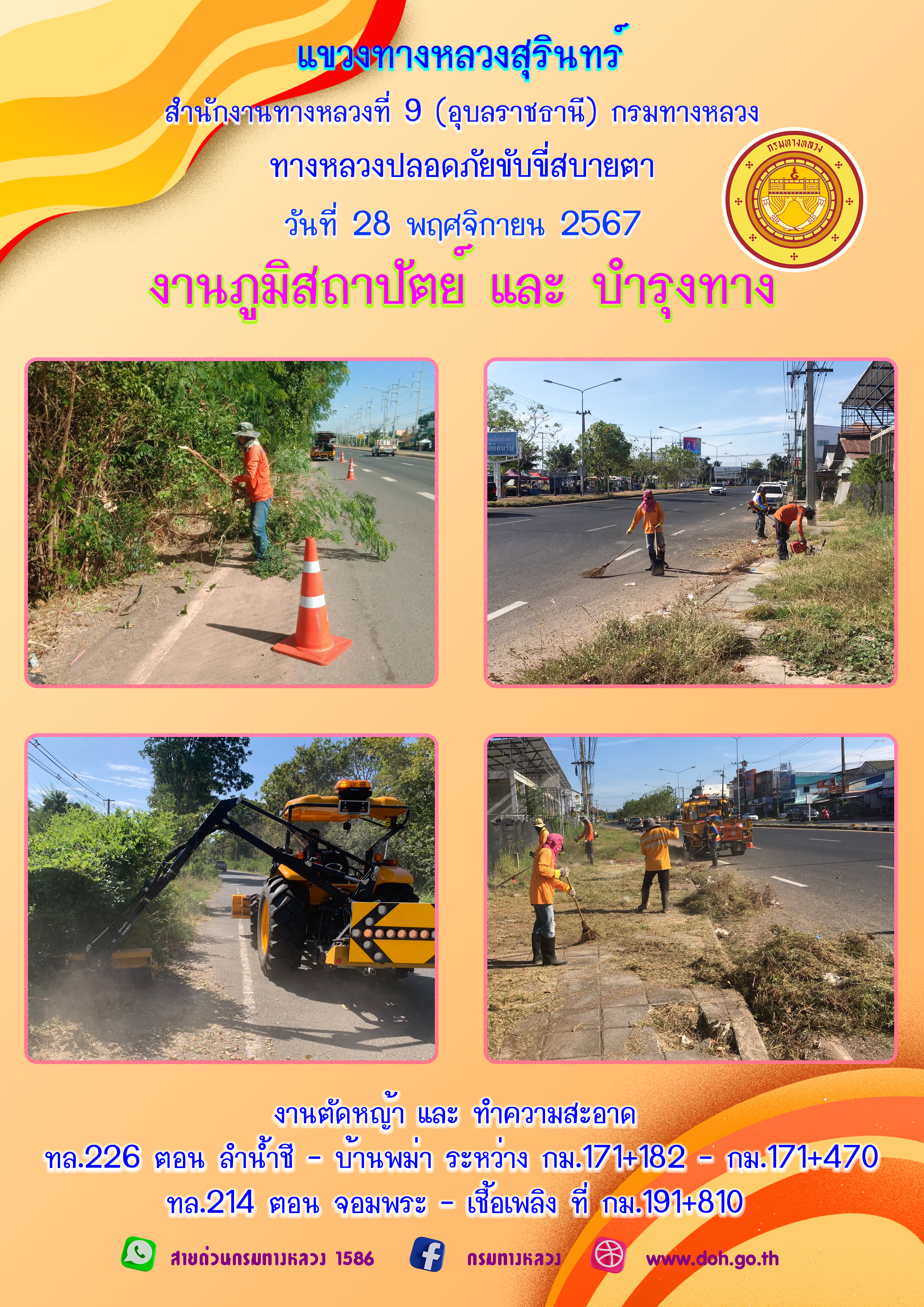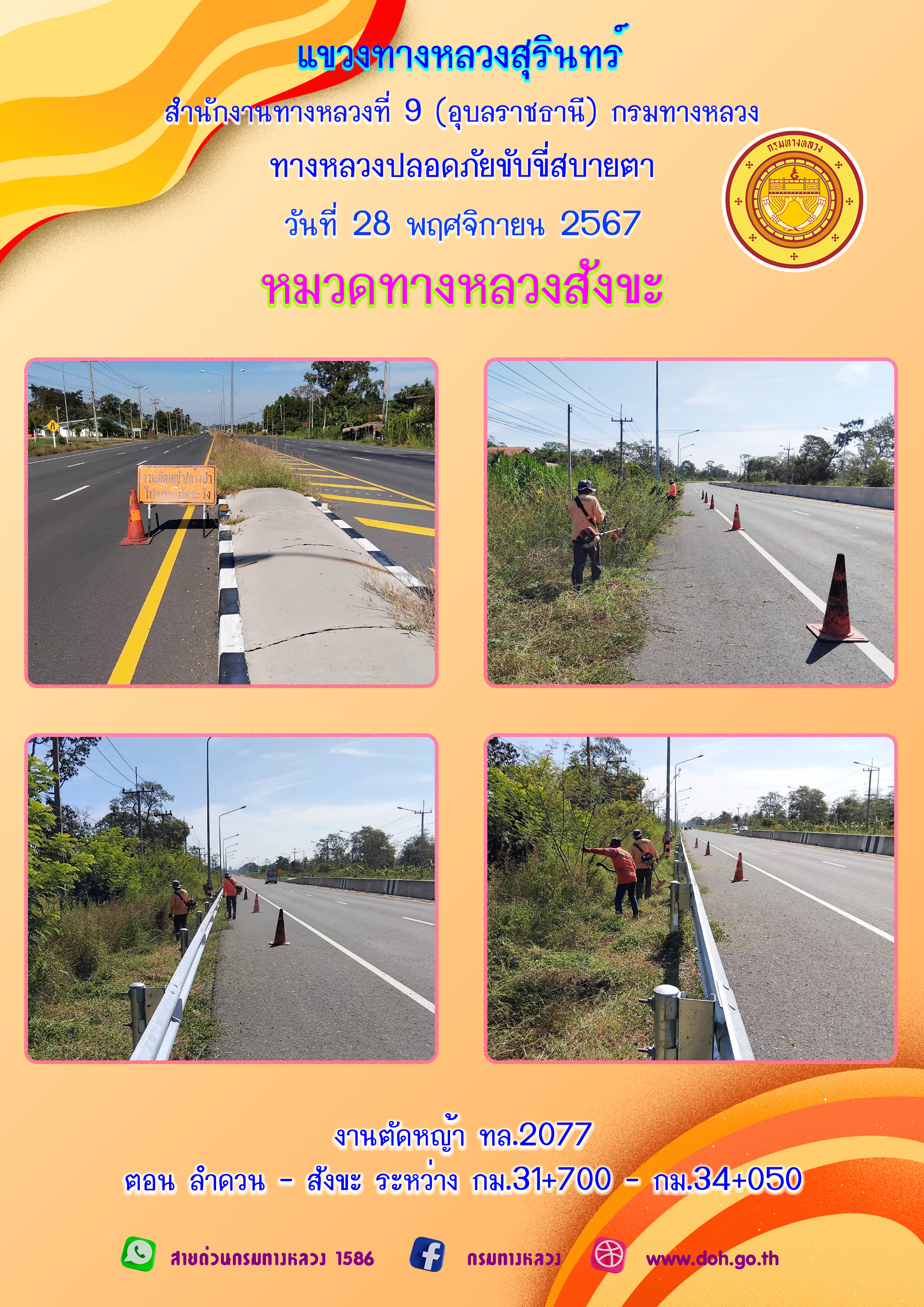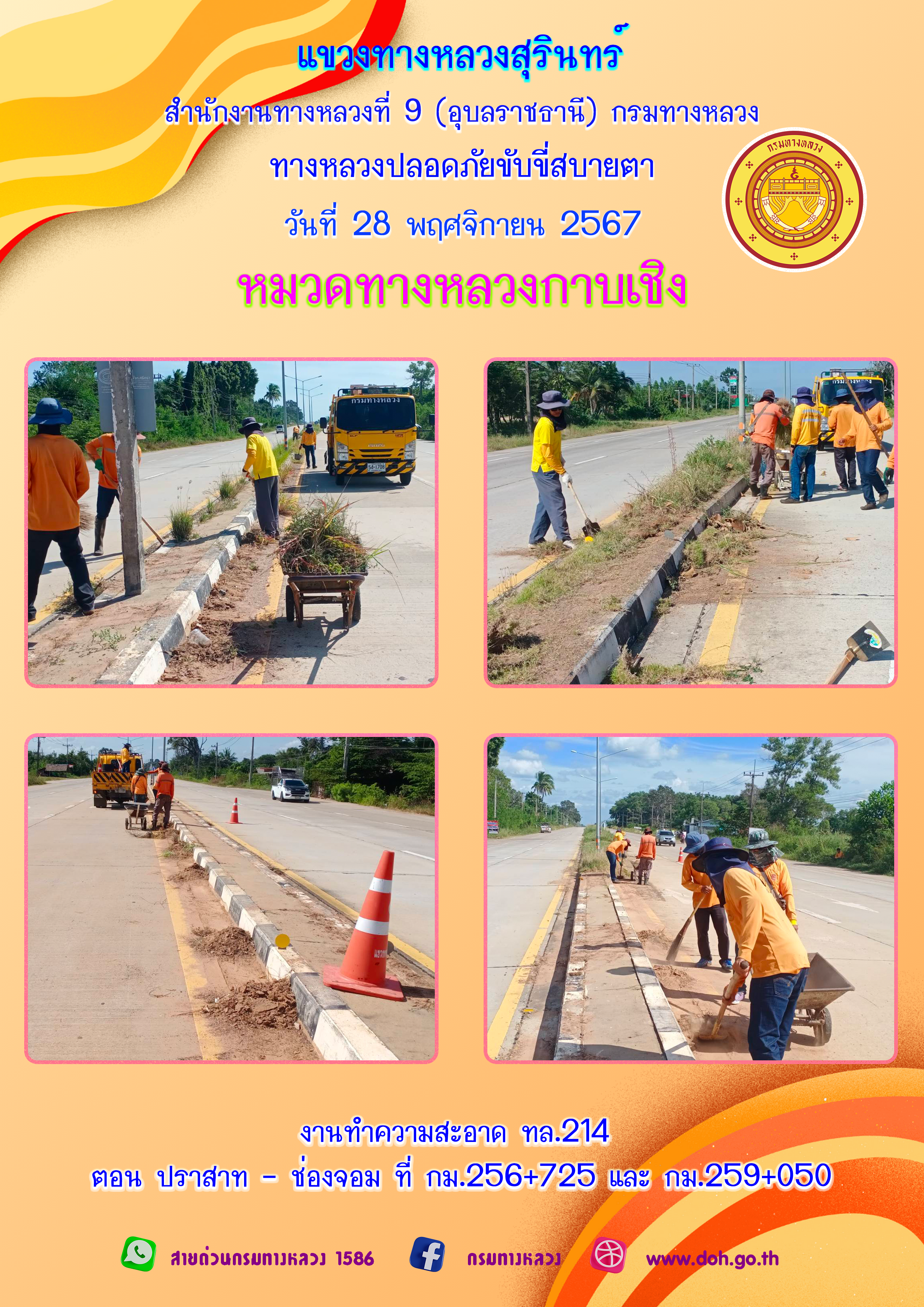 ข้อมูลภาพกิจกรรม : ทางหลวงปลอยภัย ขับขี่สบายตา 28 พฤศจิกายน 2567