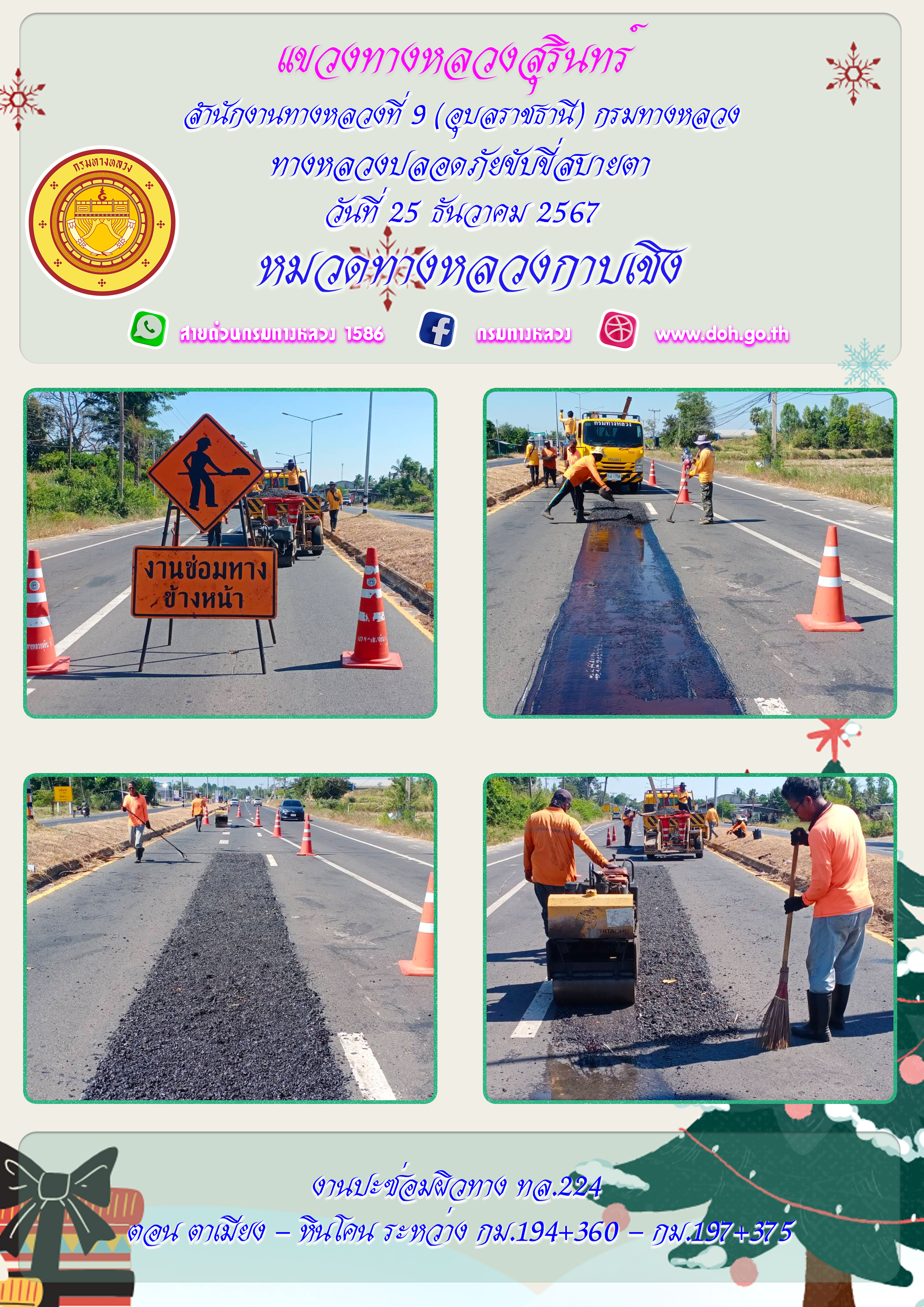 ข้อมูลภาพกิจกรรม : ทางหลวงปลอยภัย ขับขี่สบายตา 25 ธันวาคม 2567