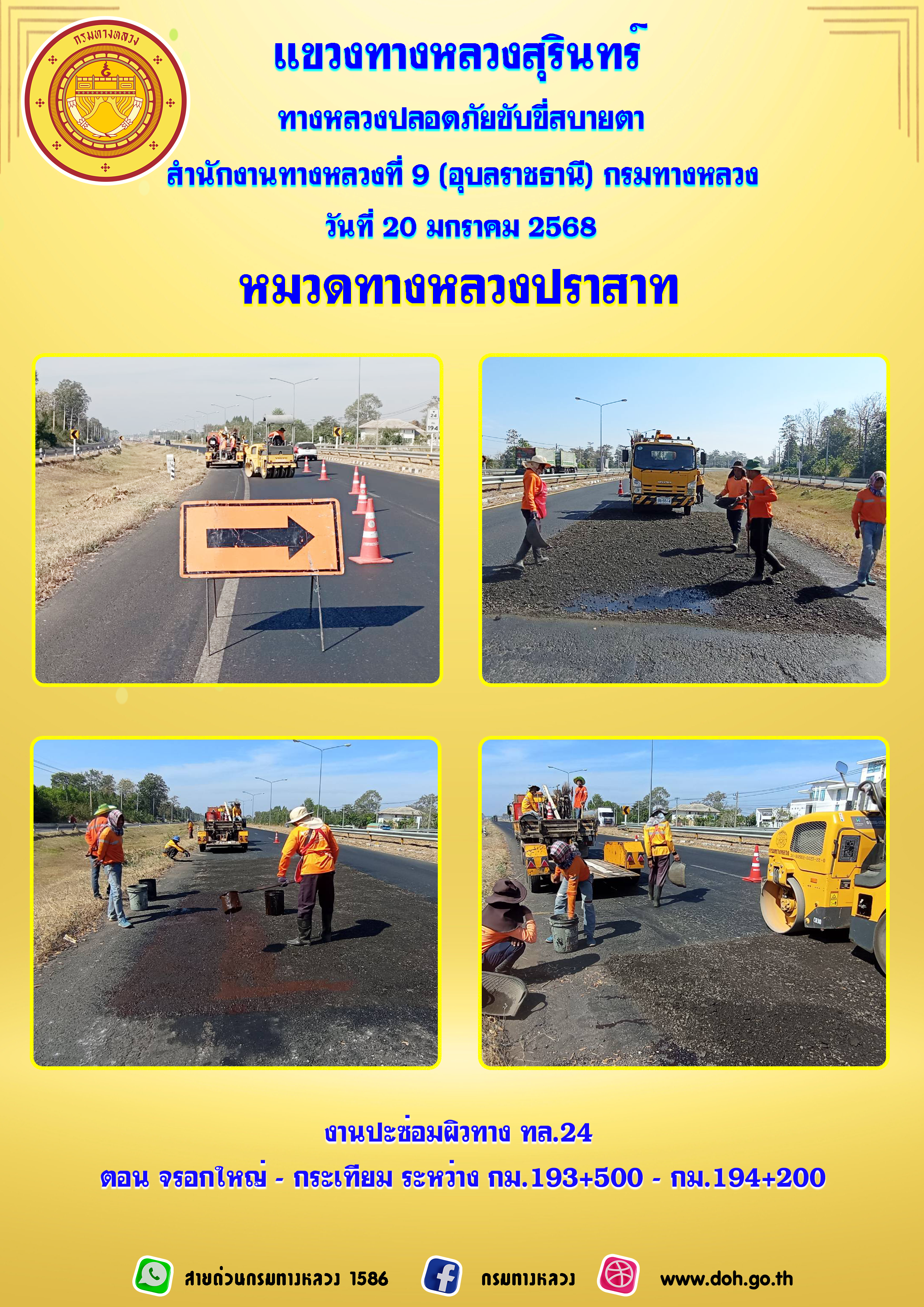 ทางหลวงปลอยภัย ขับขี่สบายตา 20 มกราคม 2568