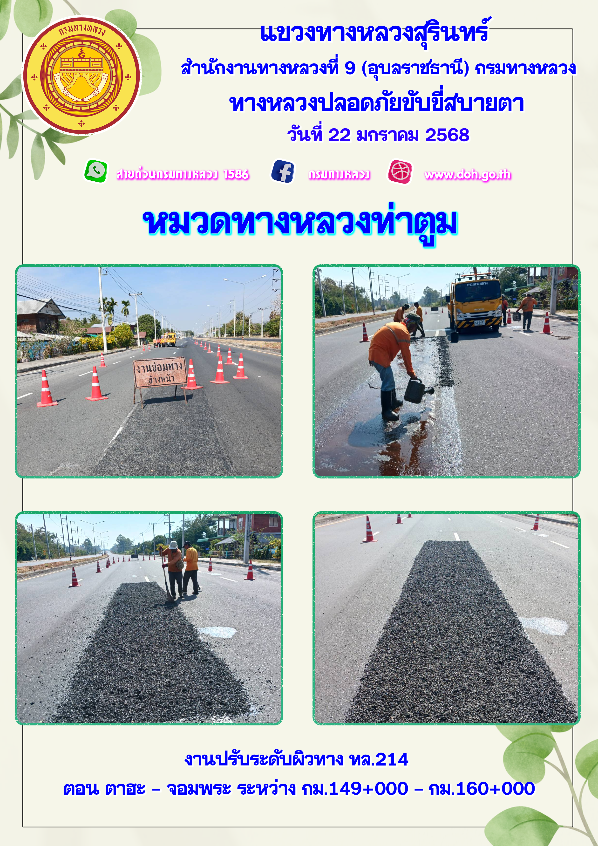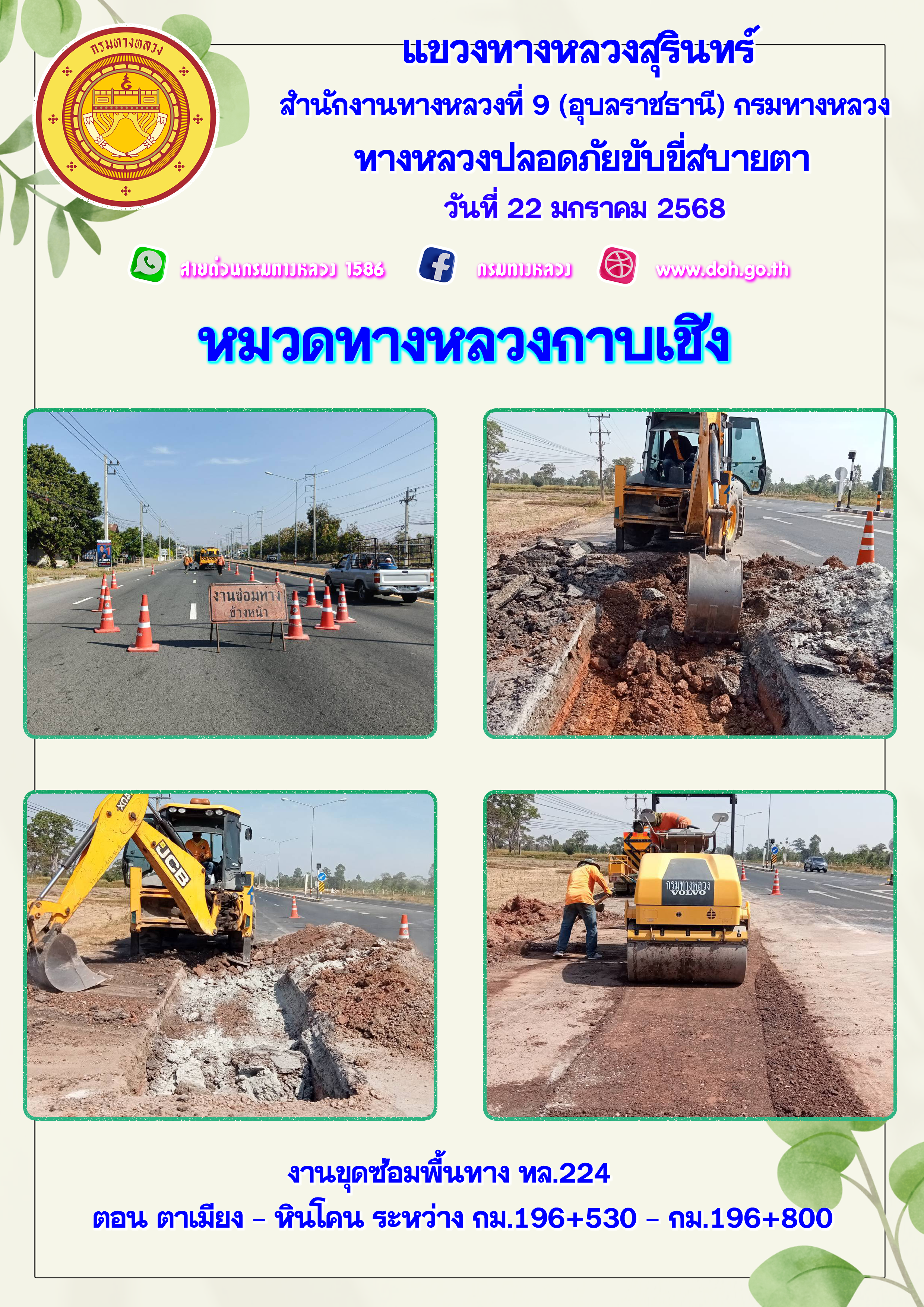 ทางหลวงปลอยภัย ขับขี่สบายตา 22 มกราคม 2568