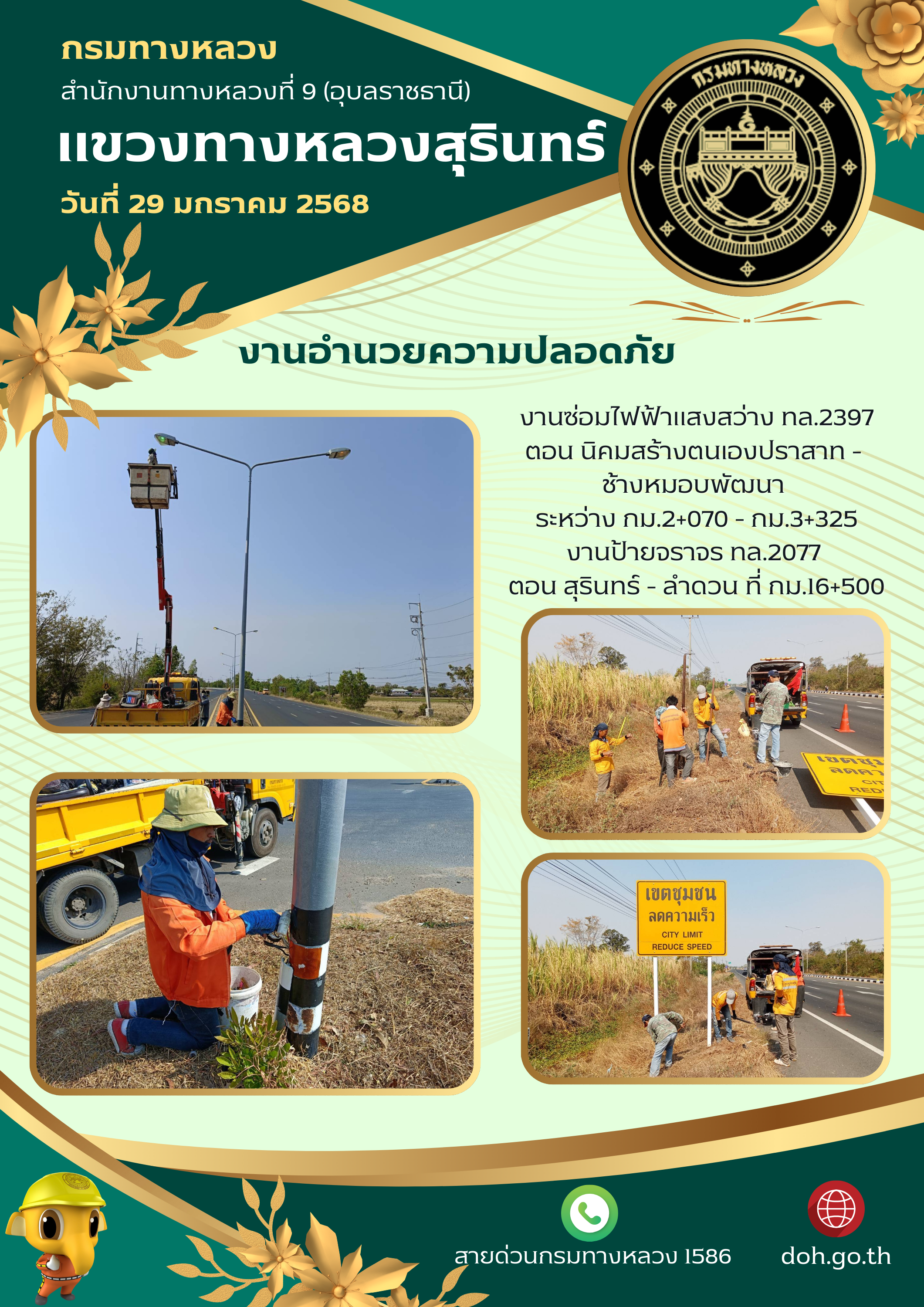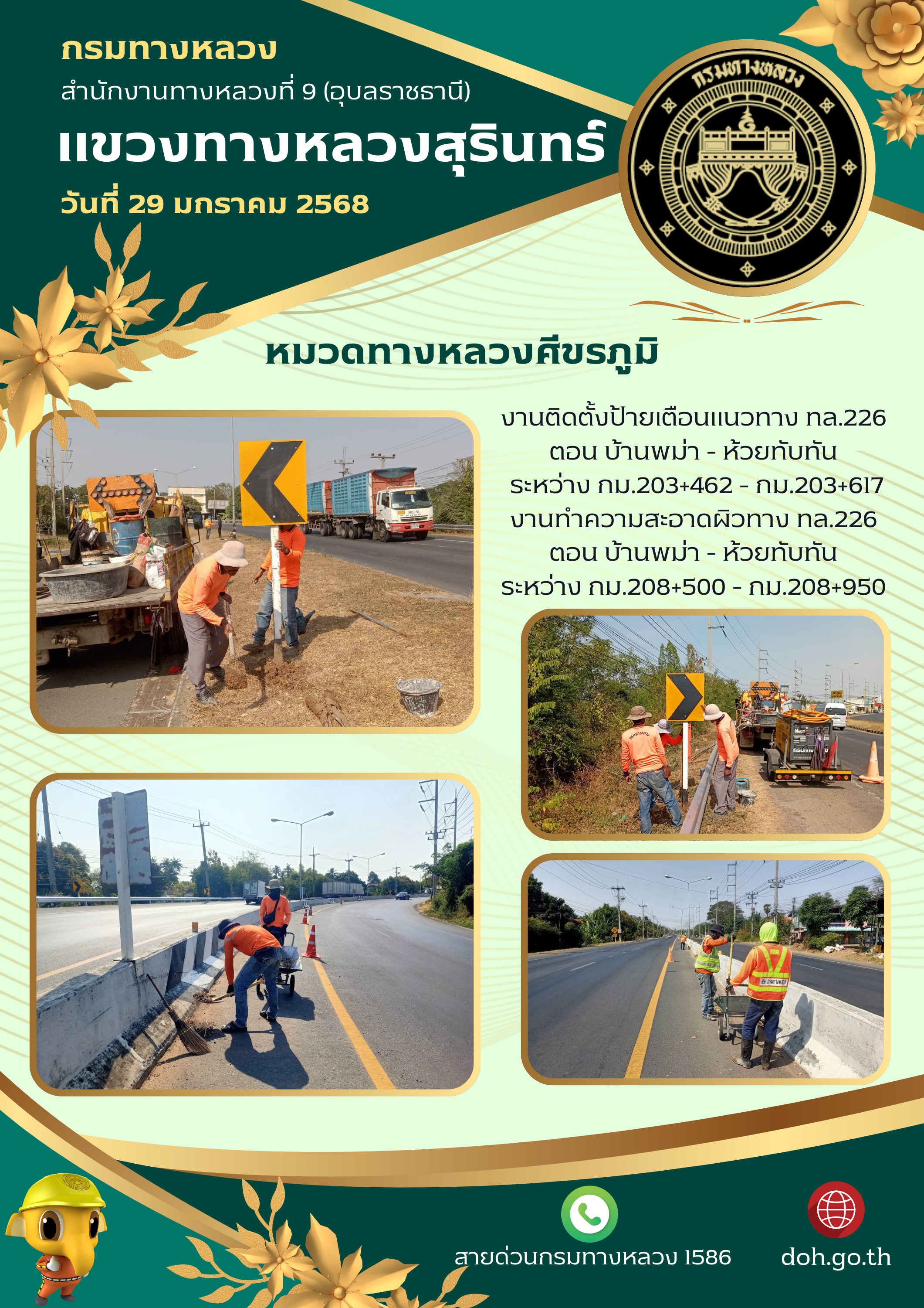 ทางหลวงปลอยภัย ขับขี่สบายตา 29 มกราคม 2568