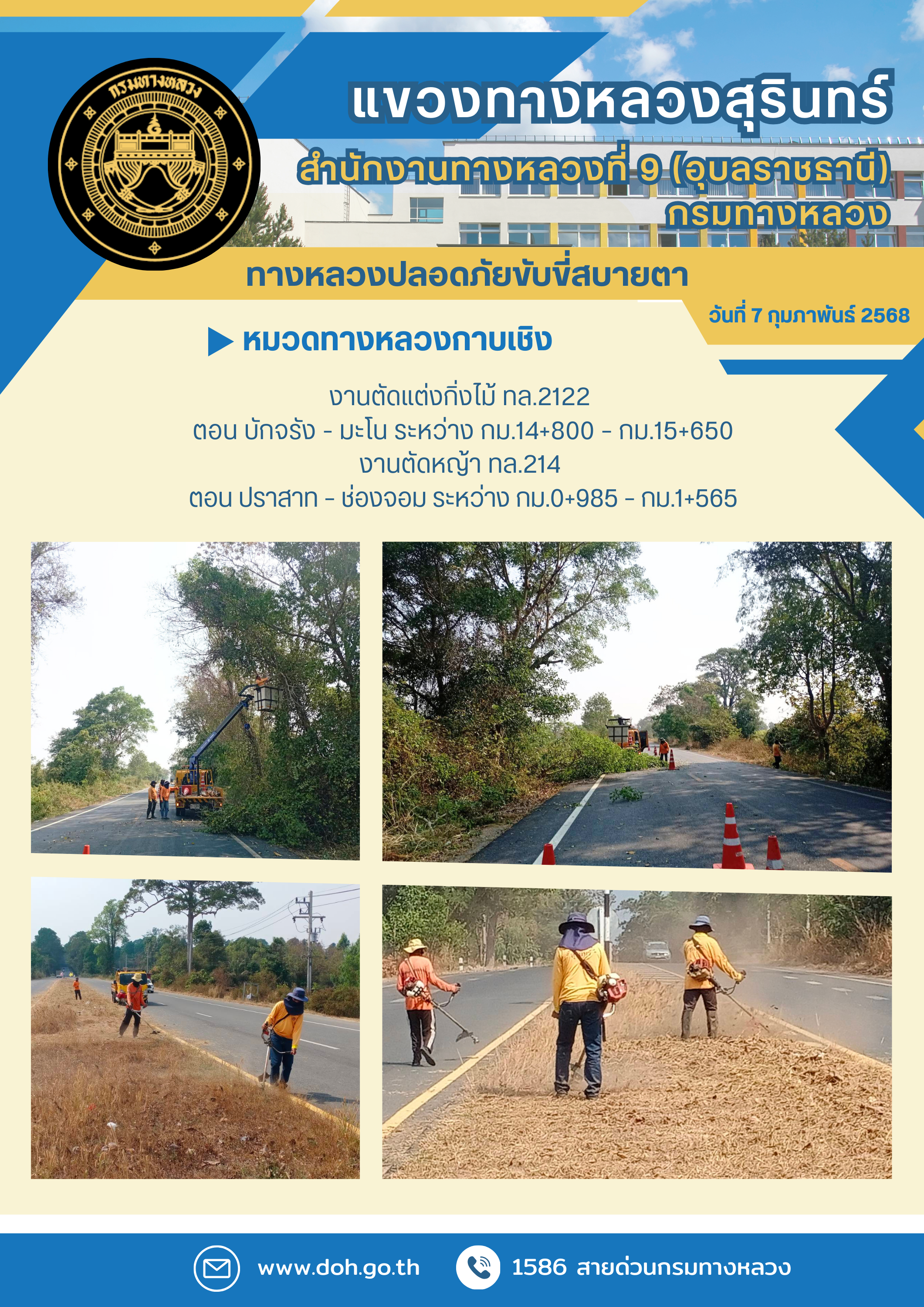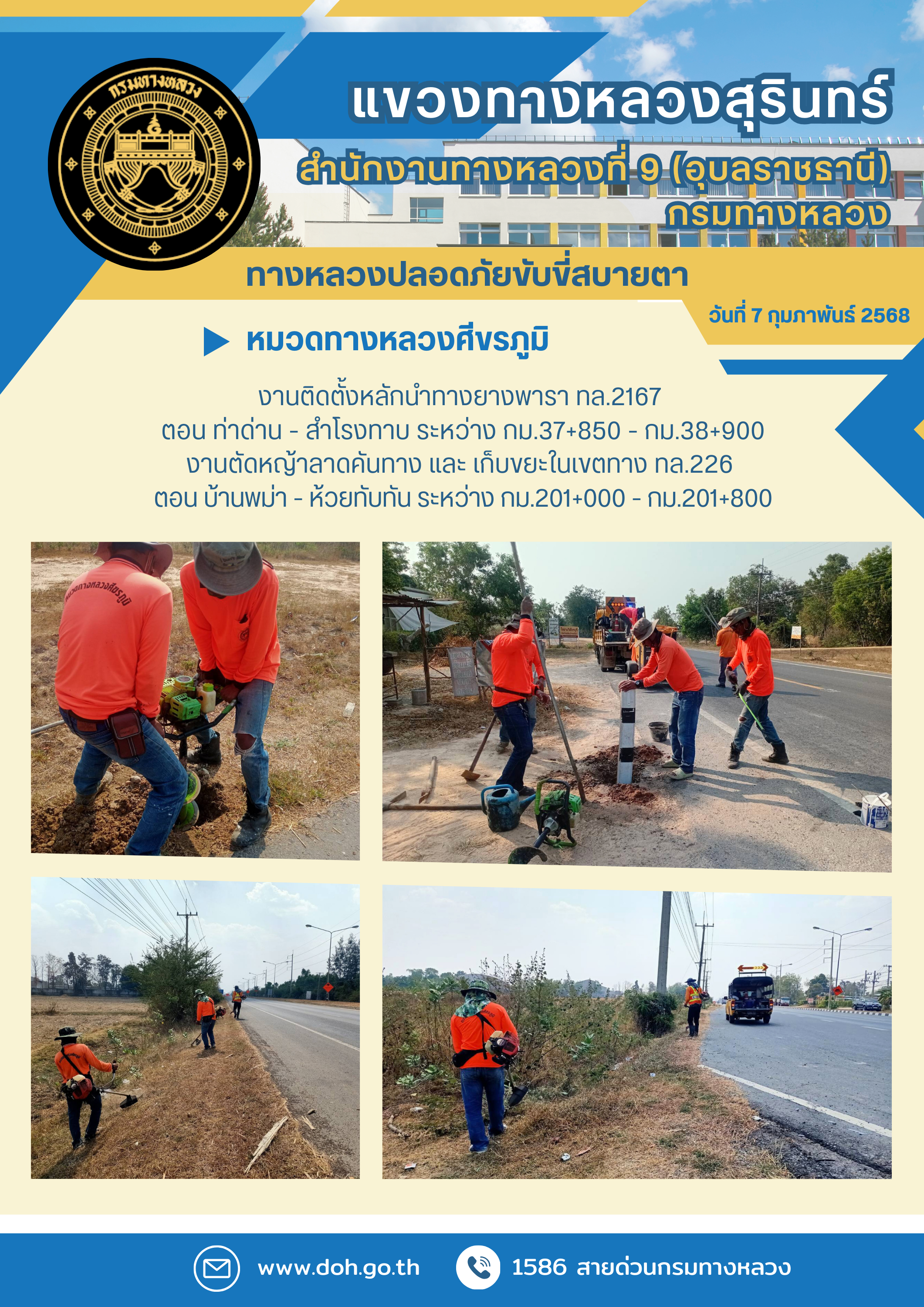 ข้อมูลภาพกิจกรรม : ทางหลวงปลอยภัย ขับขี่สบายตา 7 กุมภาพันธ์ 2568