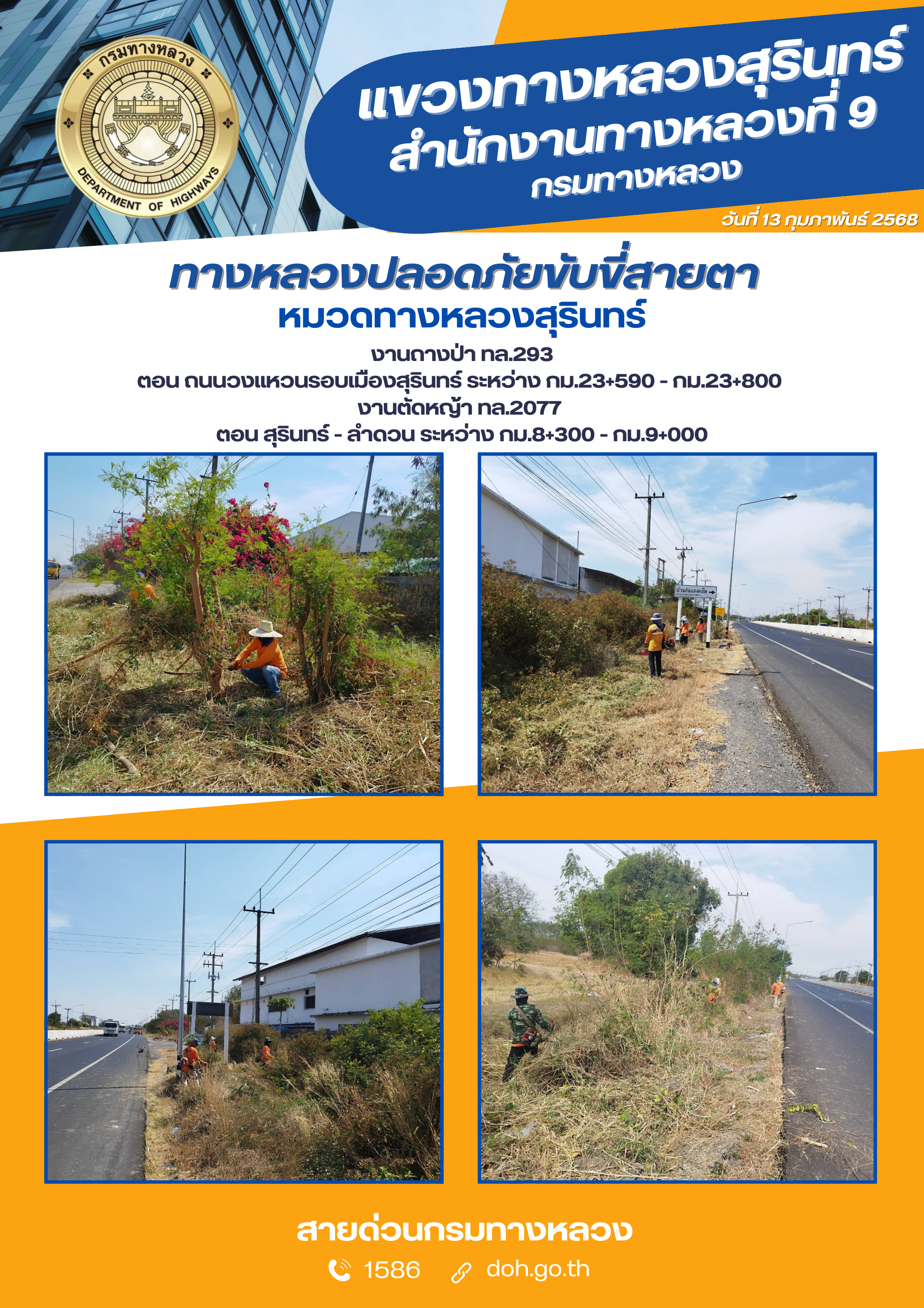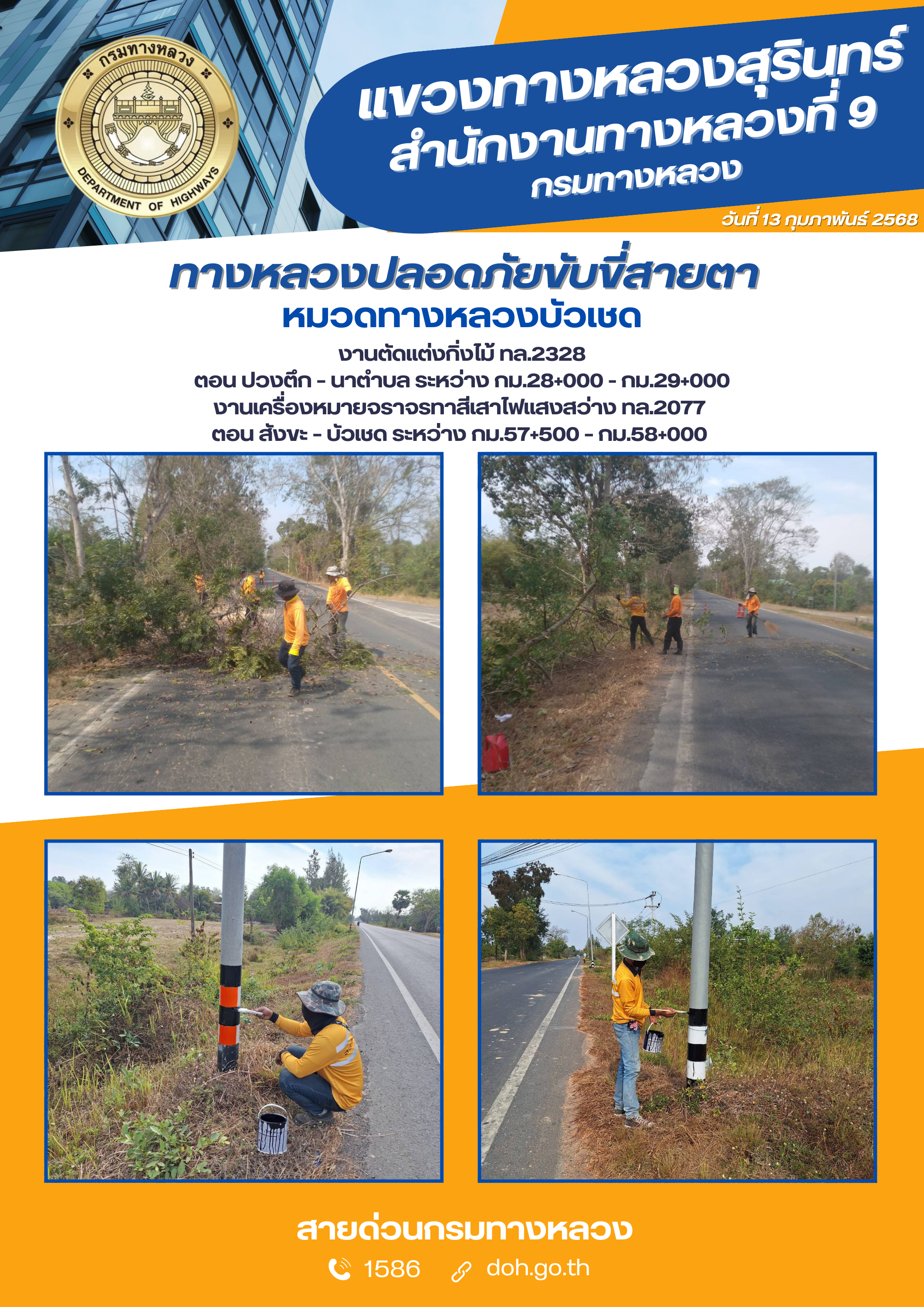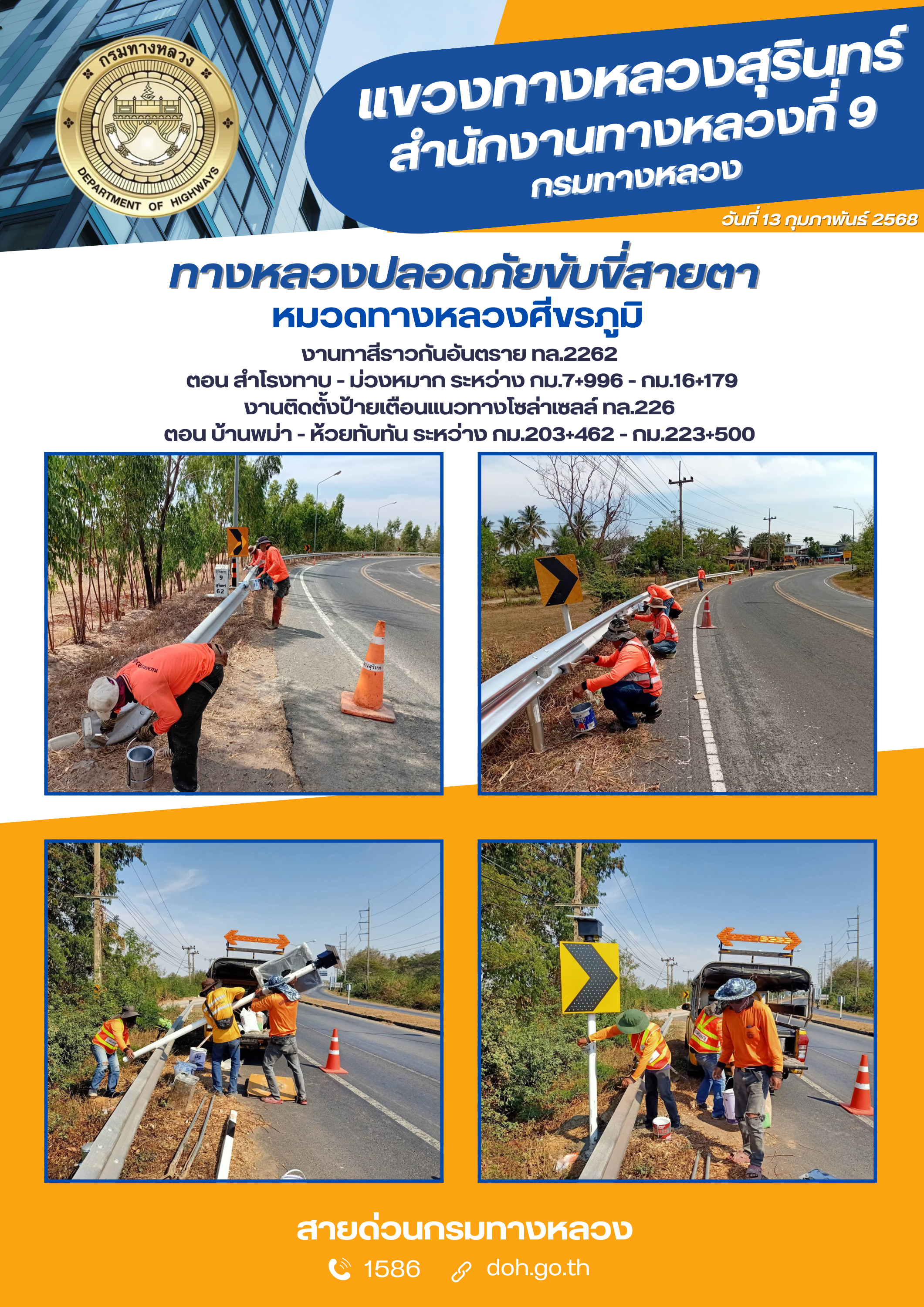 ข้อมูลภาพกิจกรรม : ทางหลวงปลอยภัย ขับขี่สบายตา 13 กุมภาพันธ์ 2568
