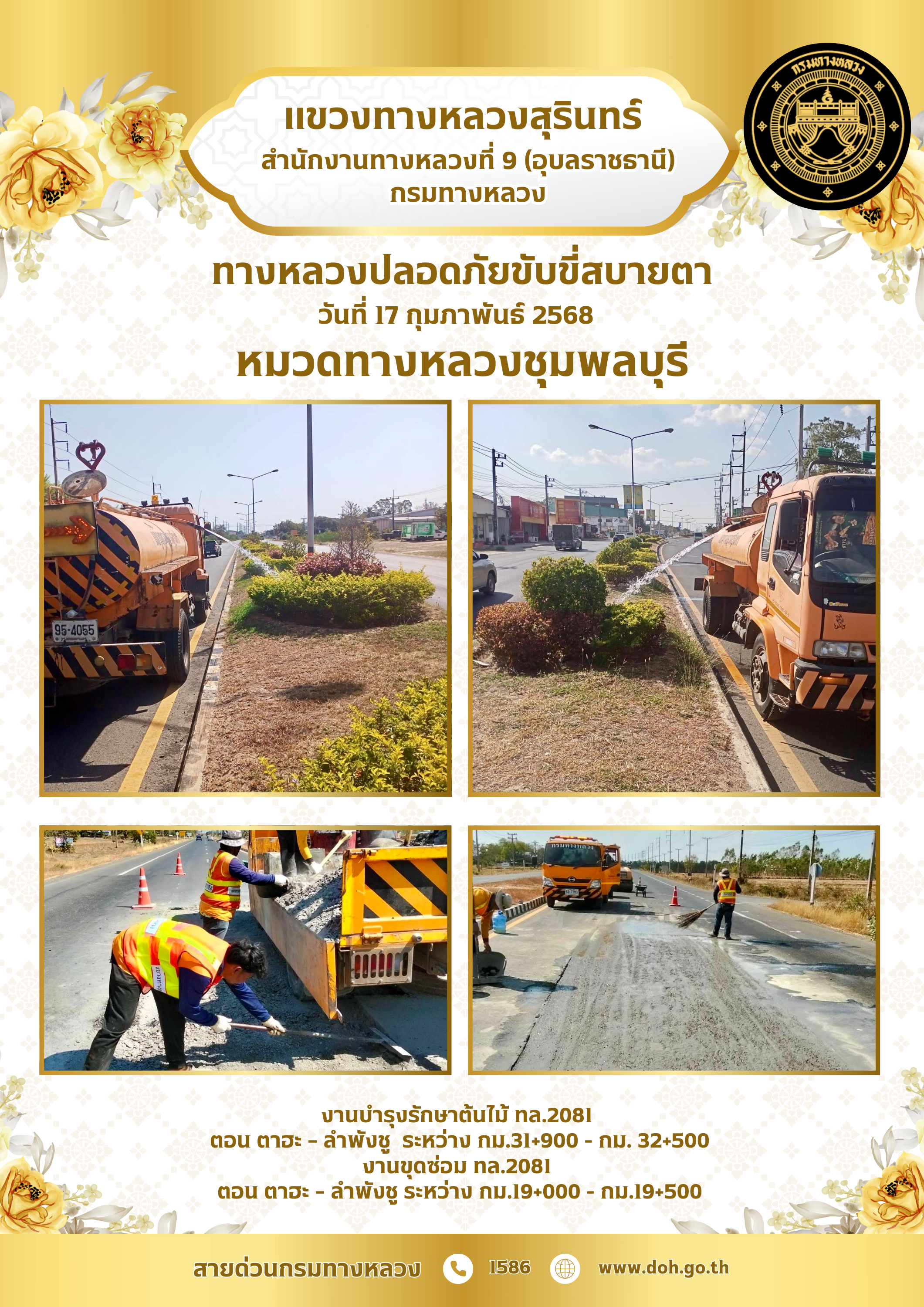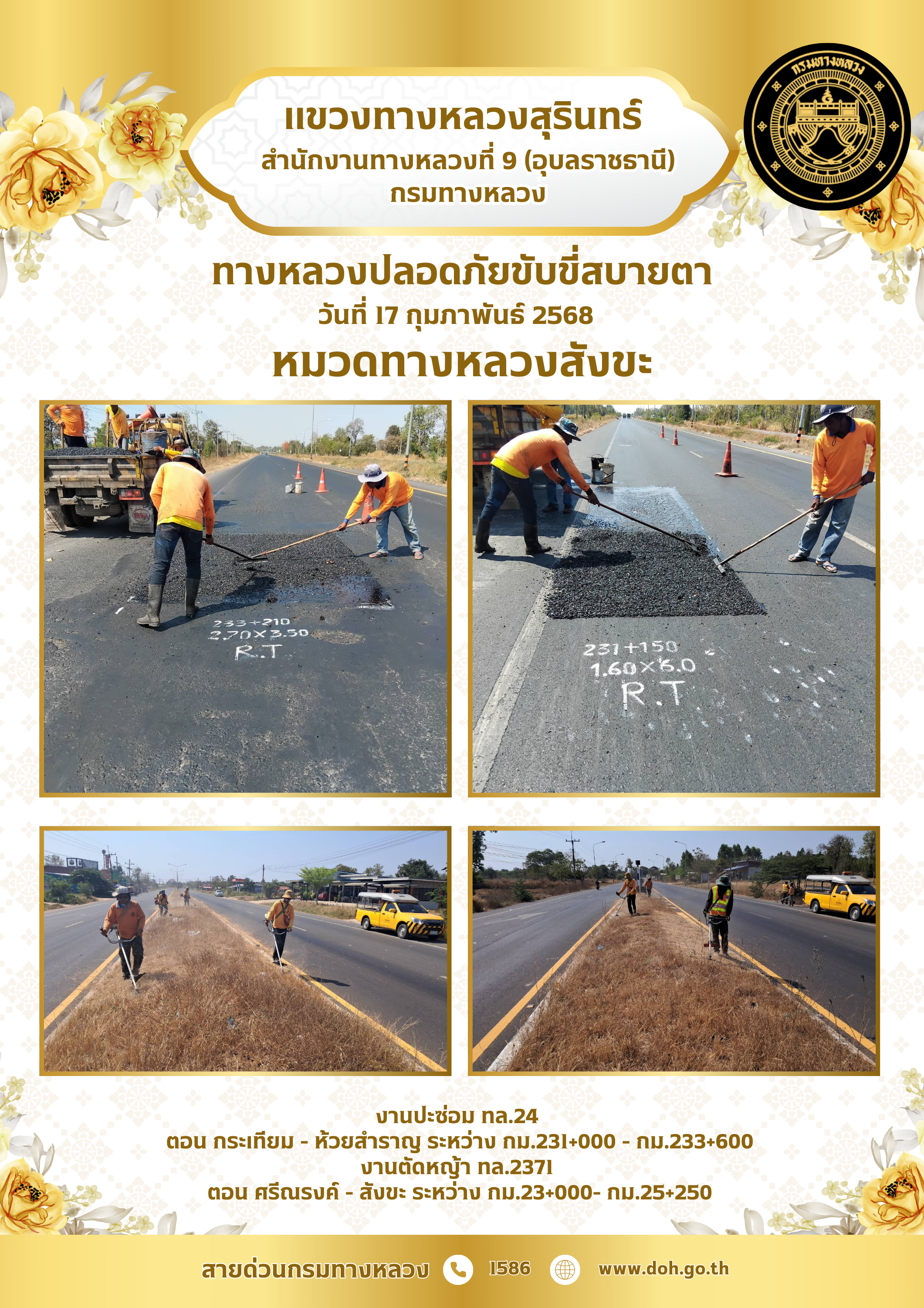 ทางหลวงปลอยภัย ขับขี่สบายตา 17 กุมภาพันธ์ 2568
