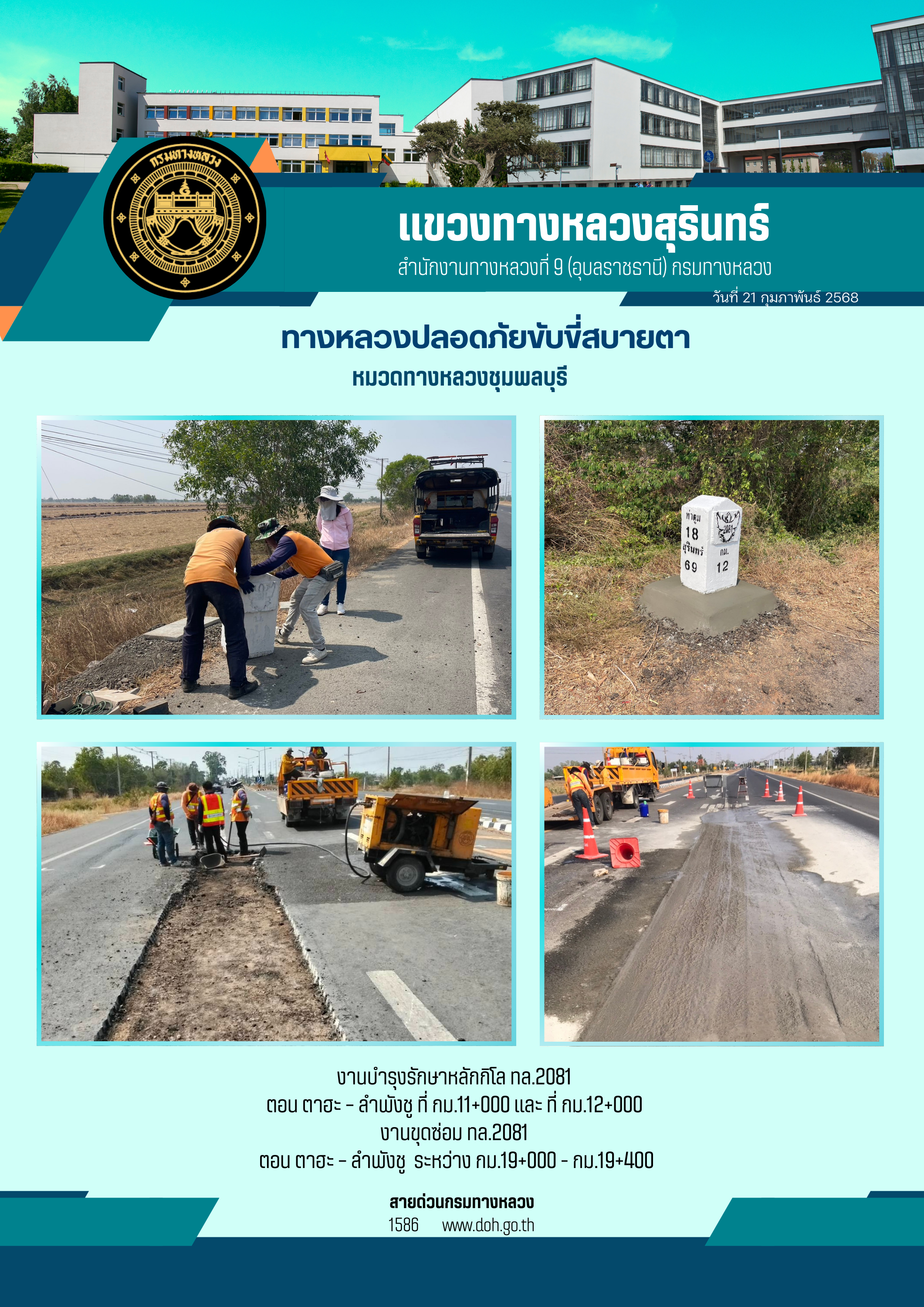 ข้อมูลภาพกิจกรรม : ทางหลวงปลอยภัย ขับขี่สบายตา 21 กุมภาพันธ์ 2568