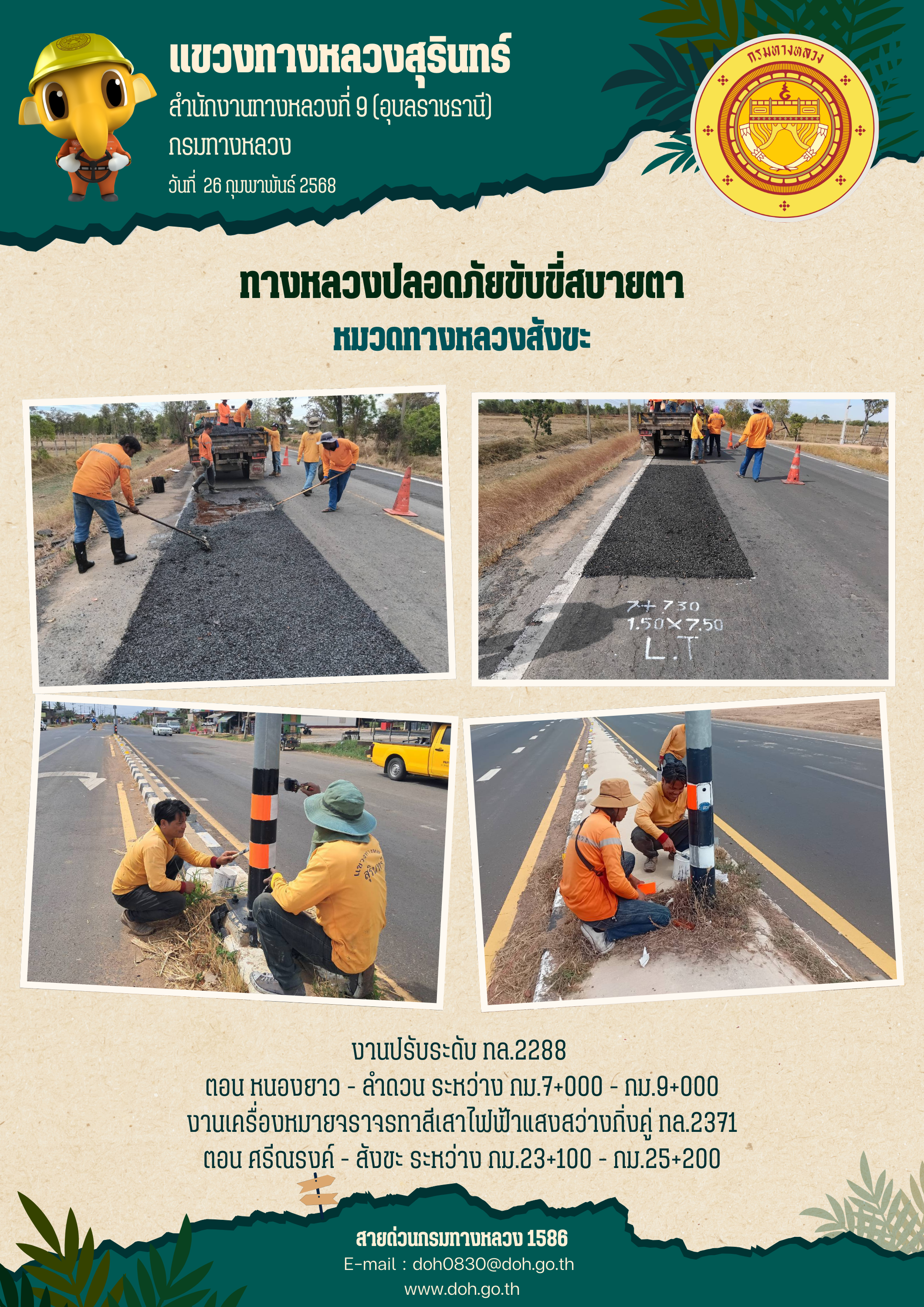 ข้อมูลภาพกิจกรรม : ทางหลวงปลอยภัย ขับขี่สบายตา 26 กุมภาพันธ์ 2568