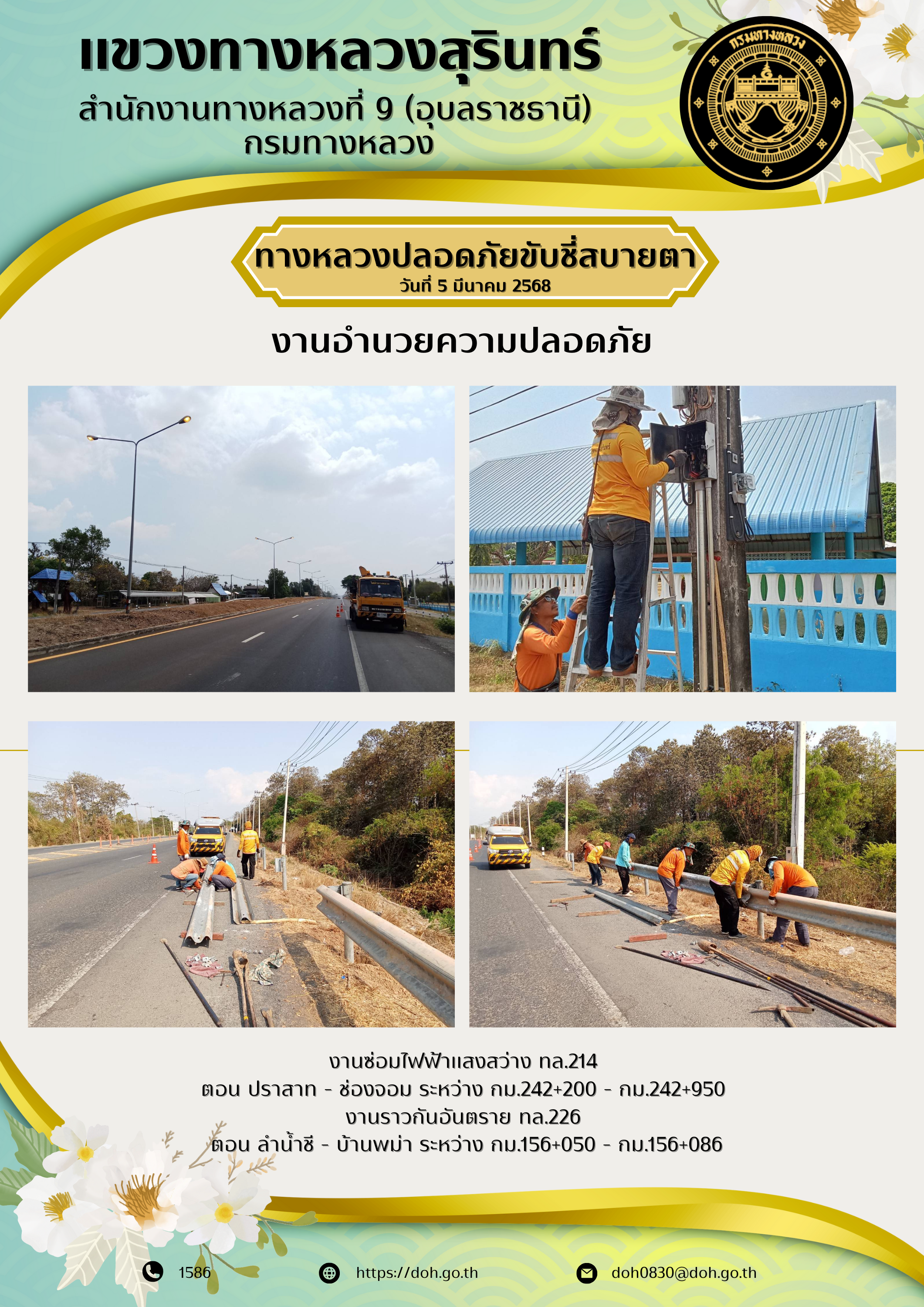 ทางหลวงปลอยภัย ขับขี่สบายตา 5 มีนาคม 2568