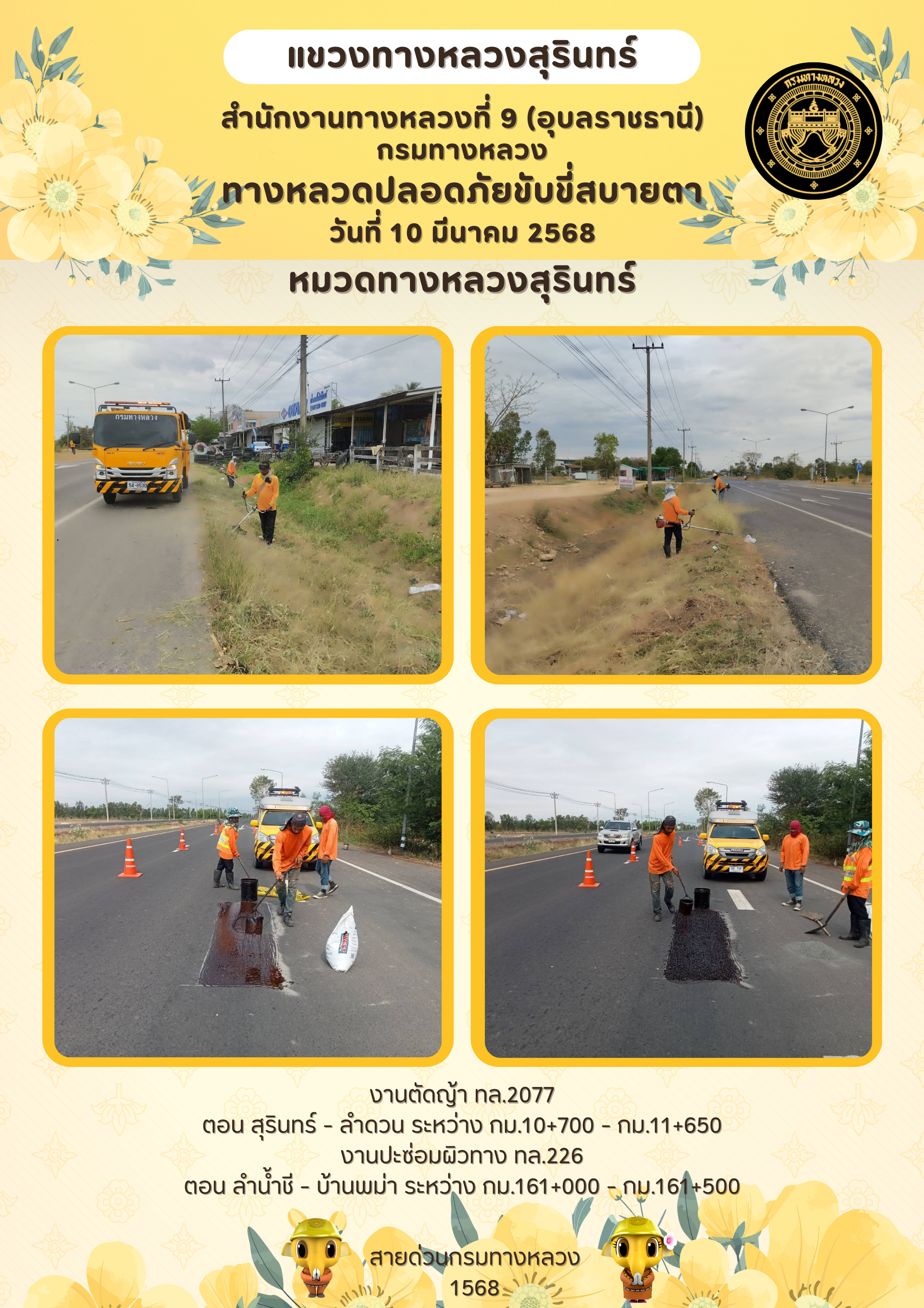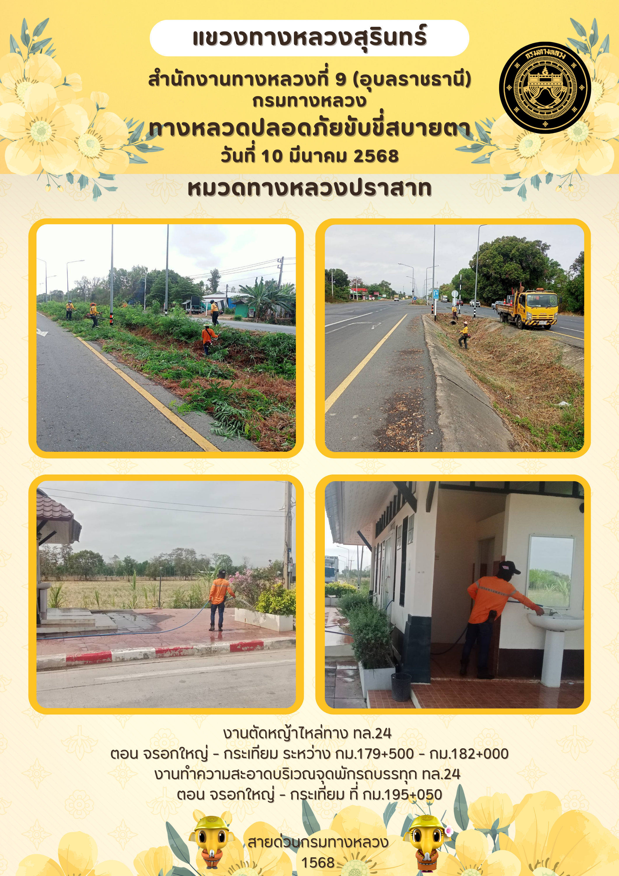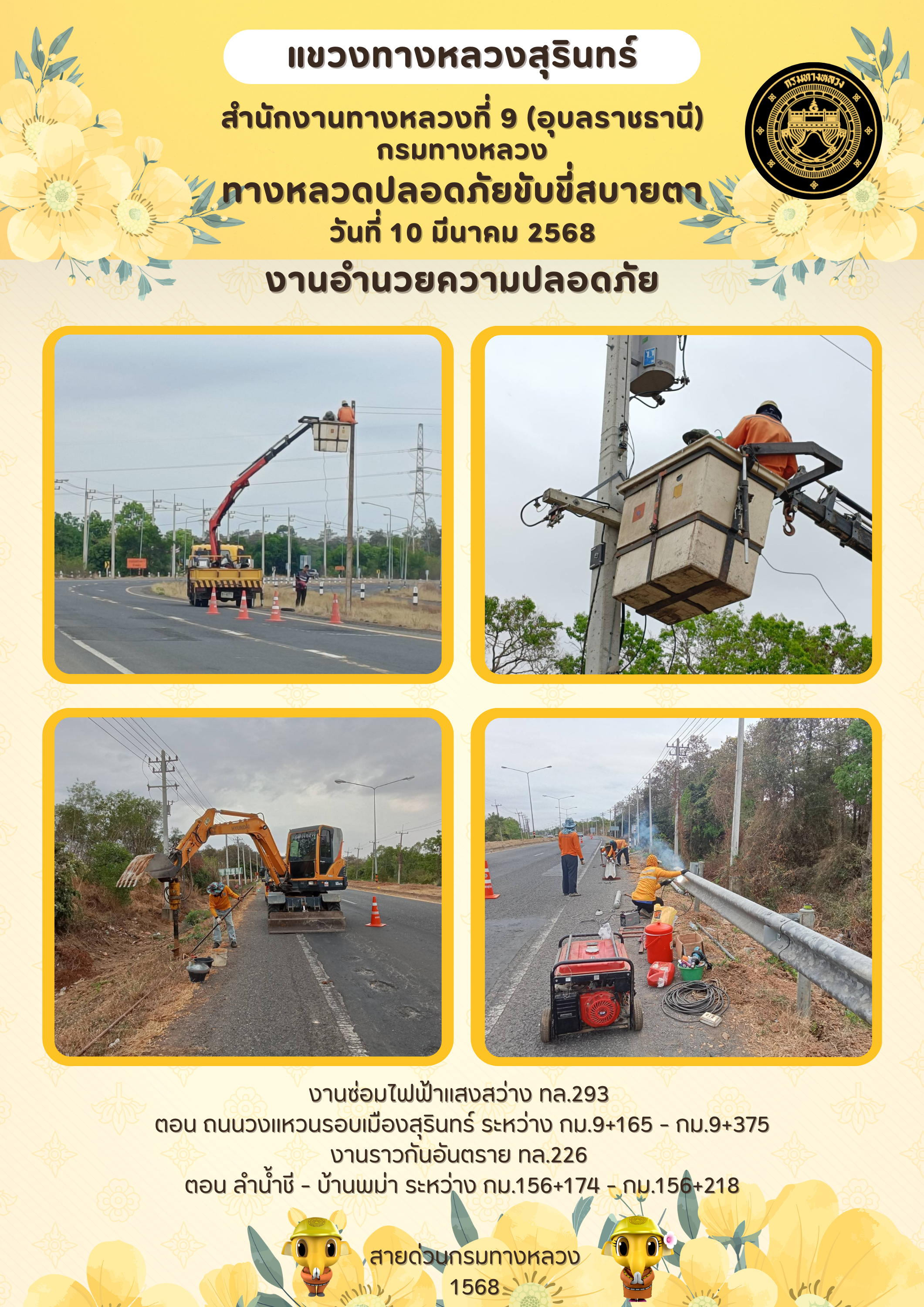 ทางหลวงปลอยภัย ขับขี่สบายตา 10 มีนาคม 2568