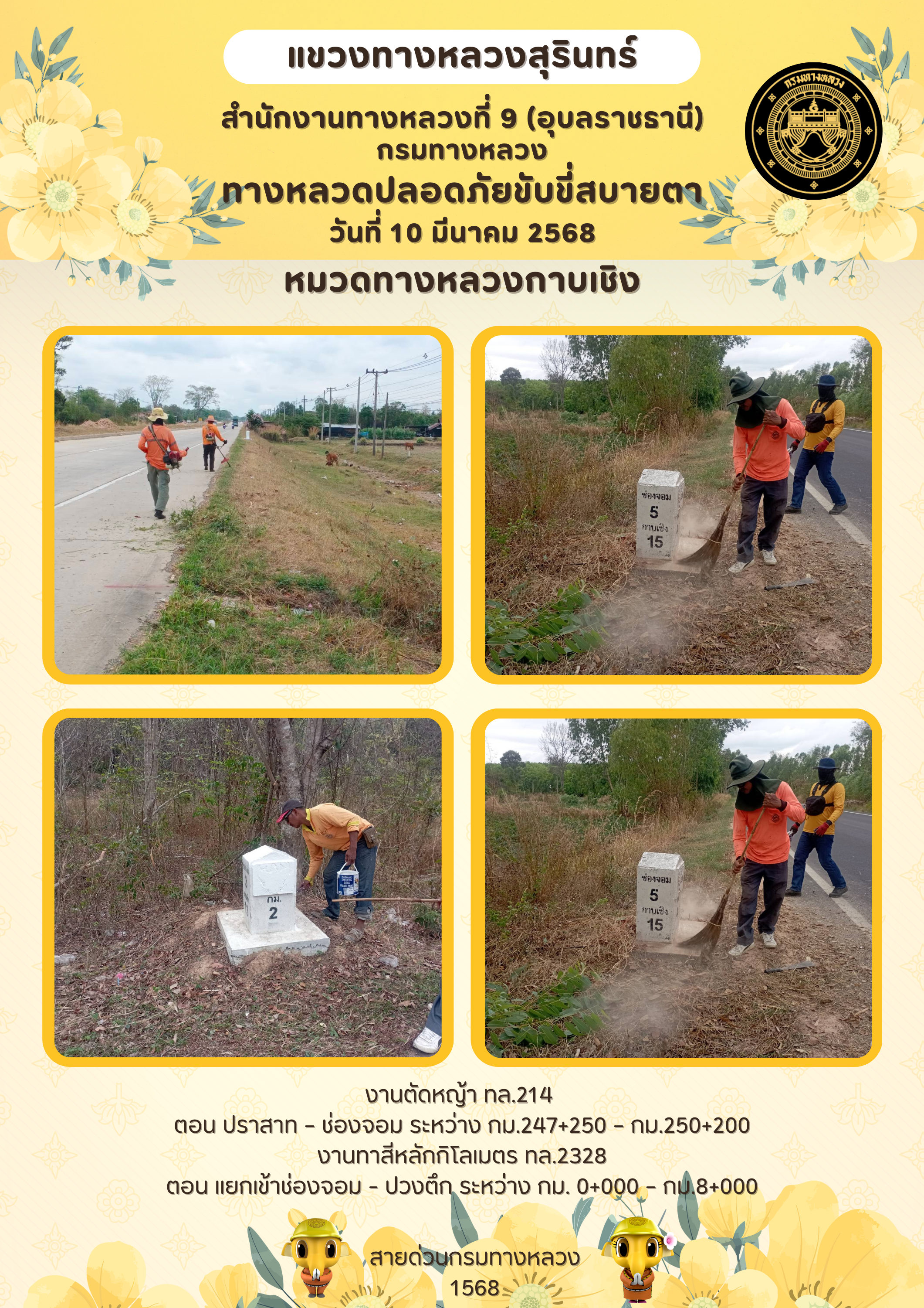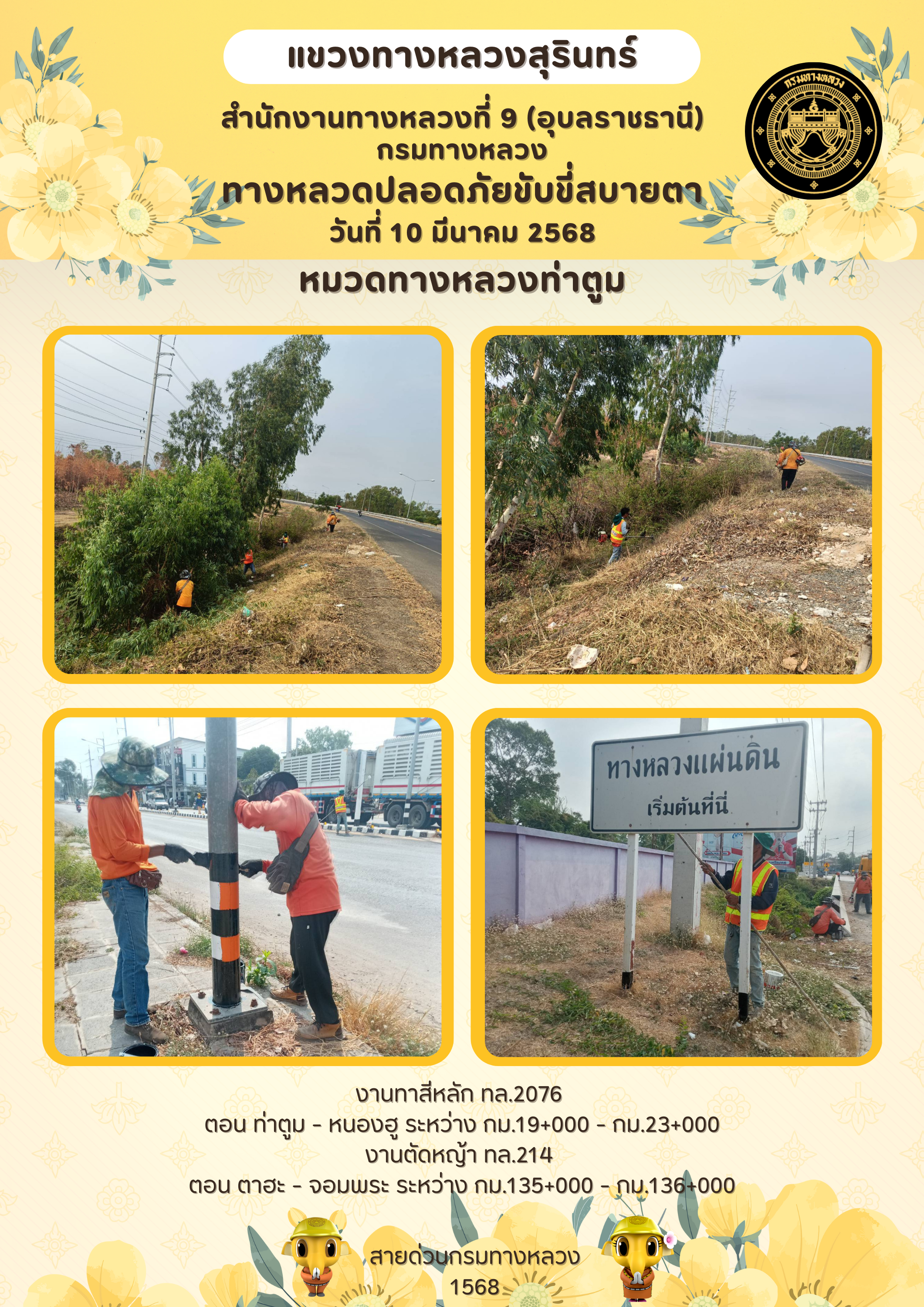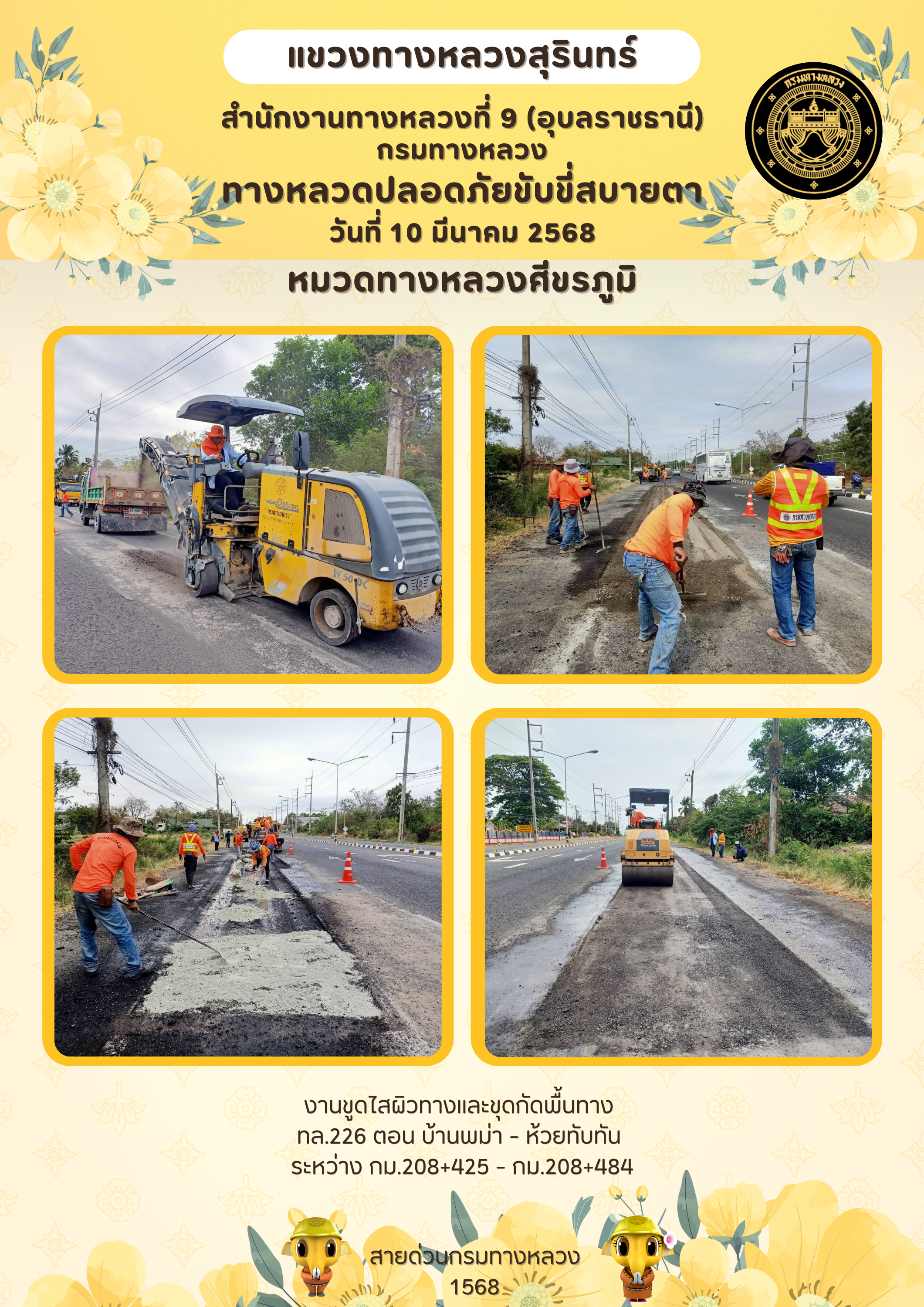 ทางหลวงปลอยภัย ขับขี่สบายตา 10 มีนาคม 2568