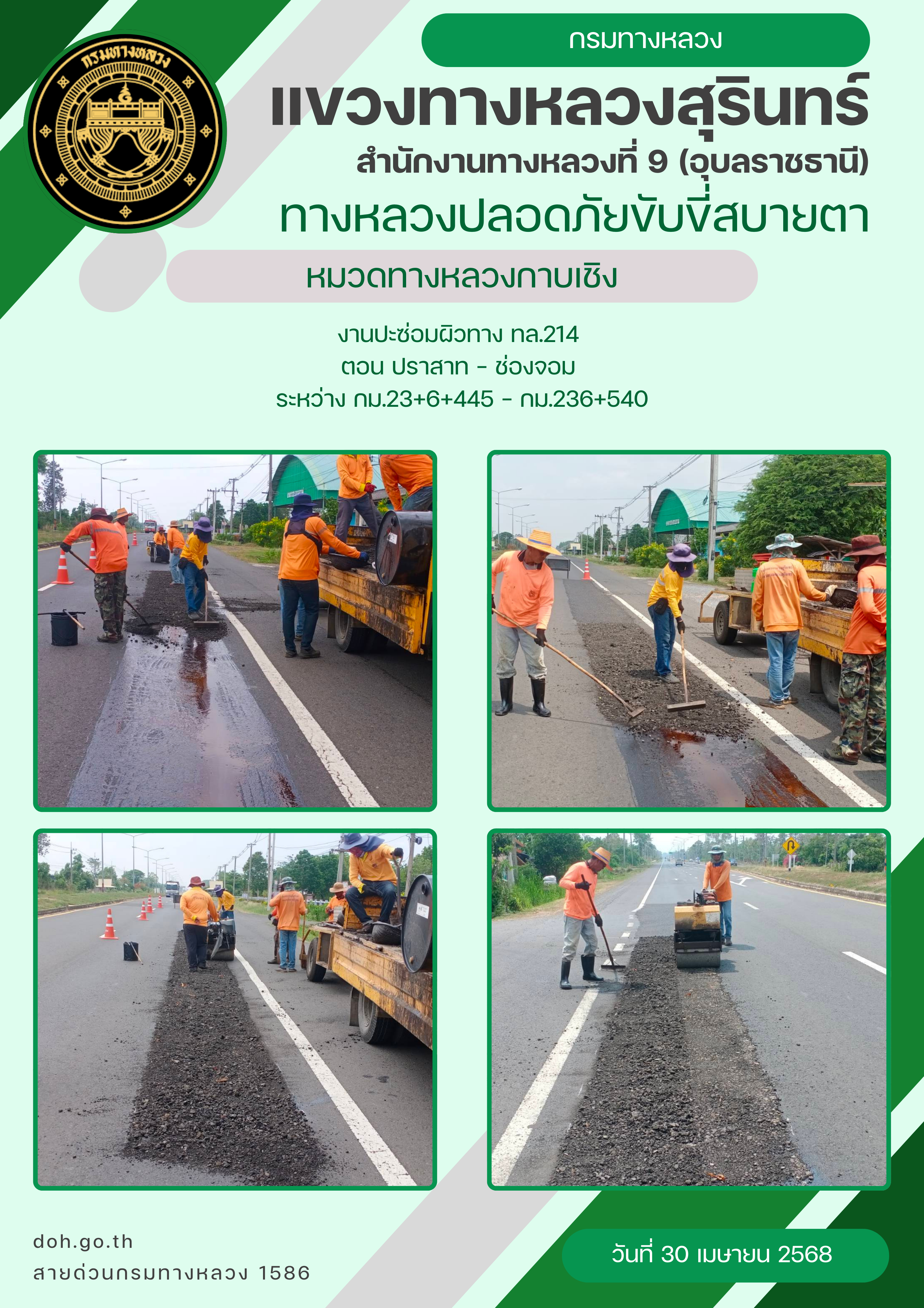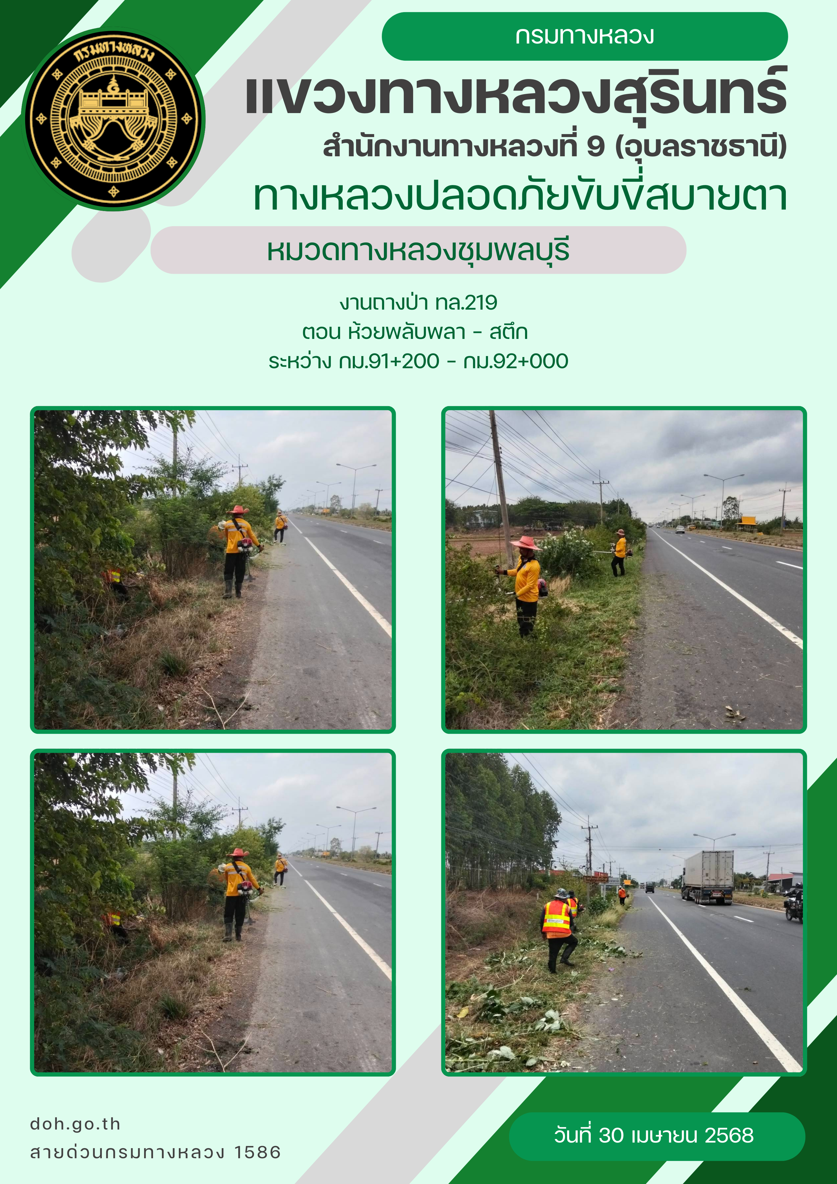 ทางหลวงปลอยภัย ขับขี่สบายตา 30 เมษายน 2568