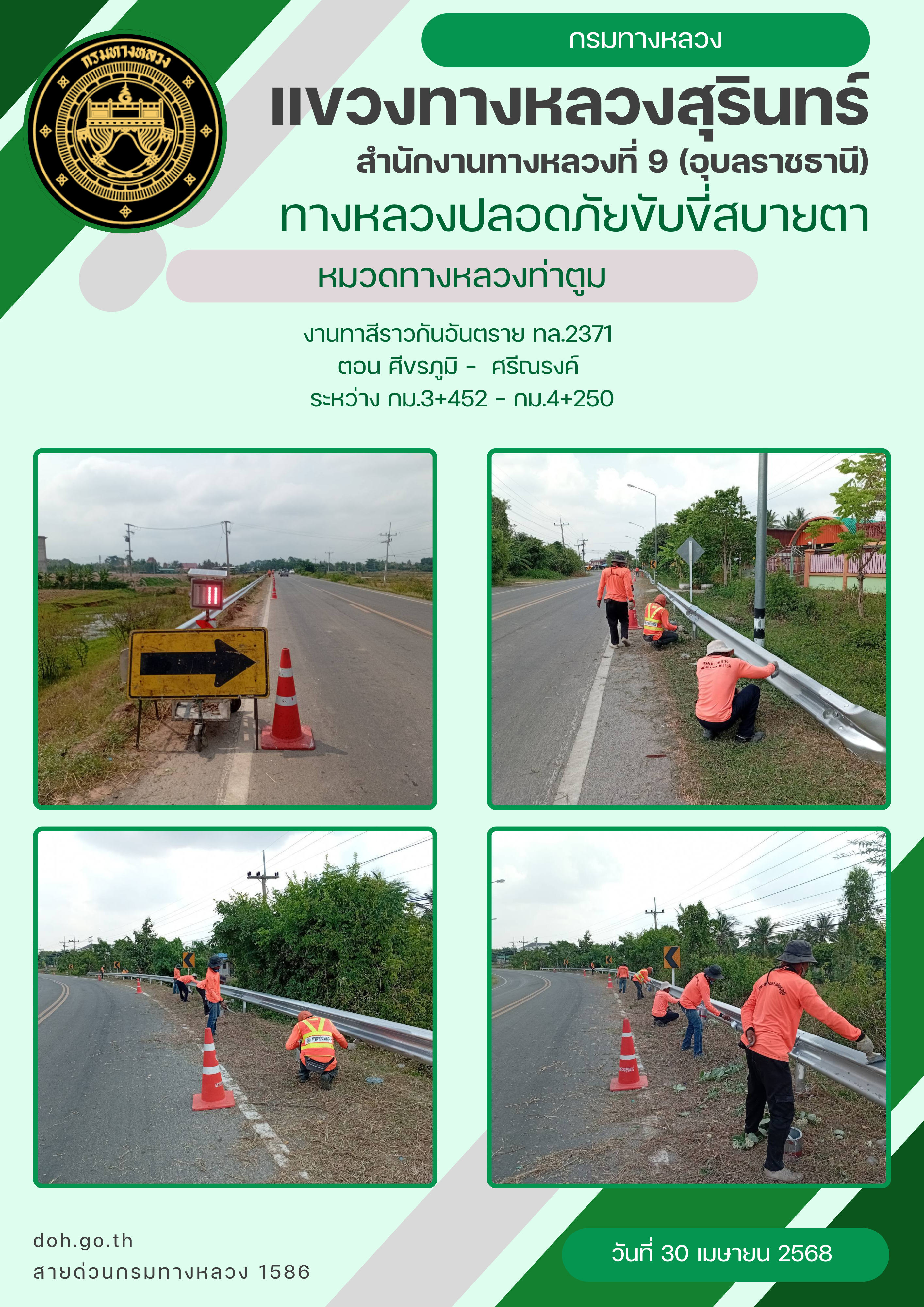 ข้อมูลภาพกิจกรรม : ทางหลวงปลอยภัย ขับขี่สบายตา 30 เมษายน 2568