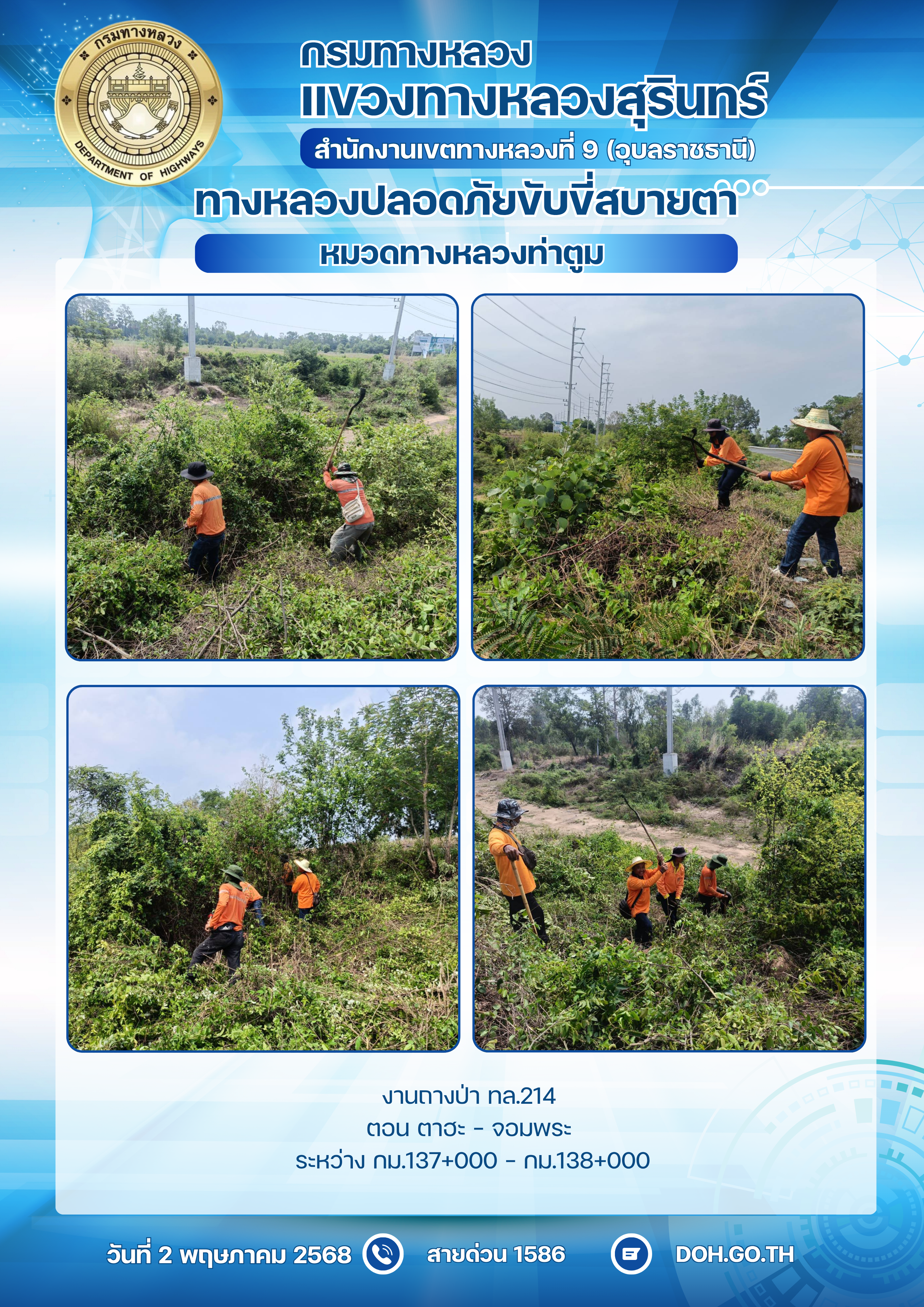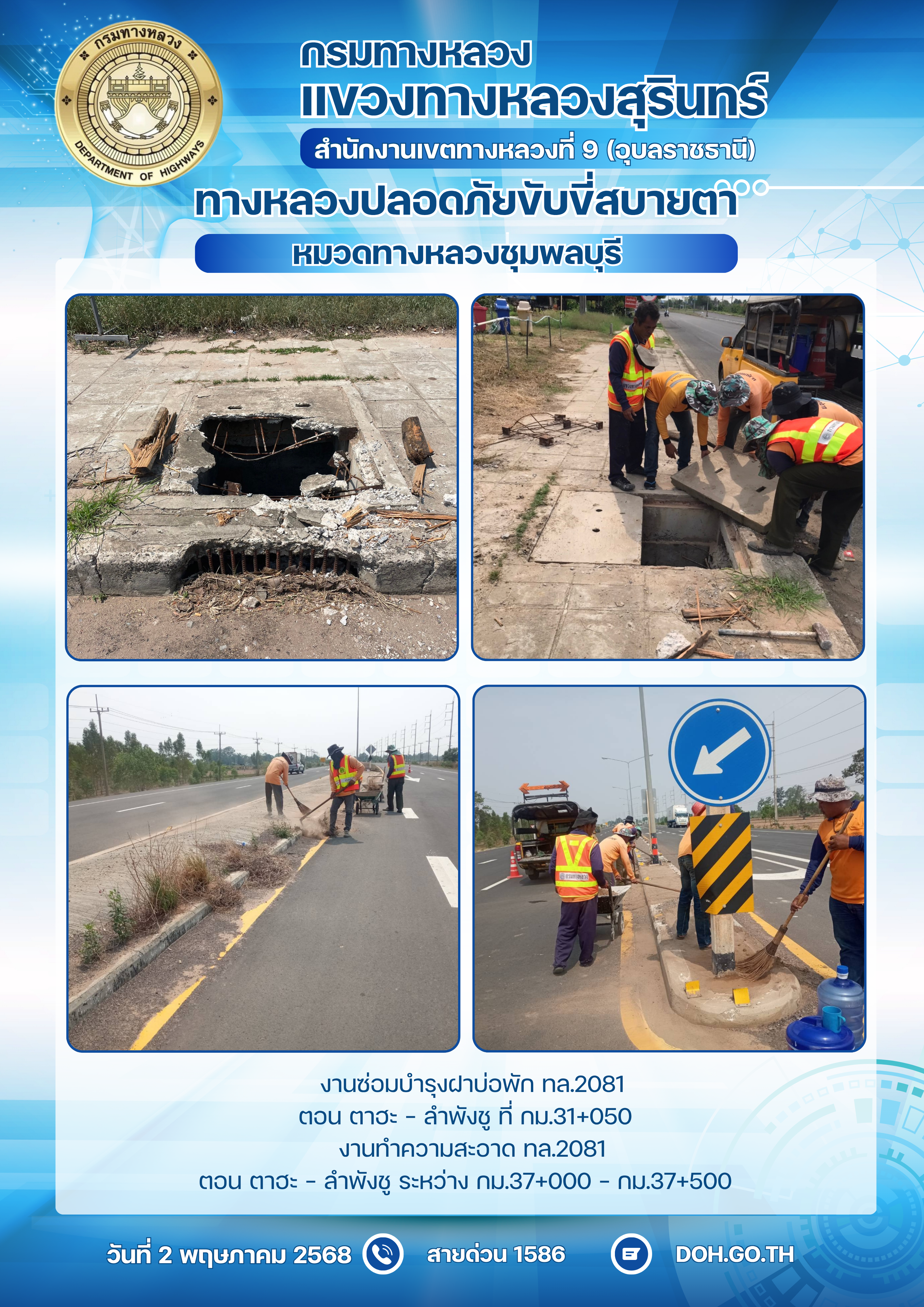 ทางหลวงปลอยภัย ขับขี่สบายตา 2 พฤษภาคม 2568