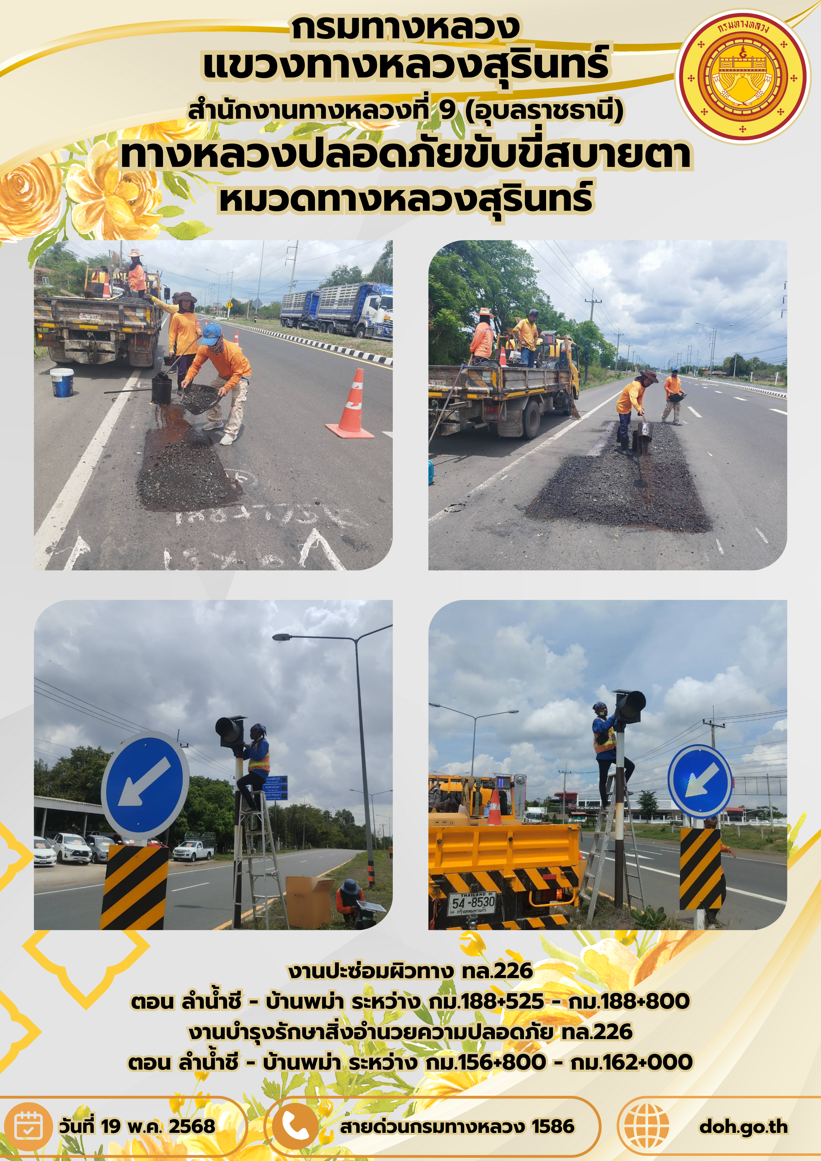 ทางหลวงปลอยภัย ขับขี่สบายตา 19 พฤษภาคม 2568