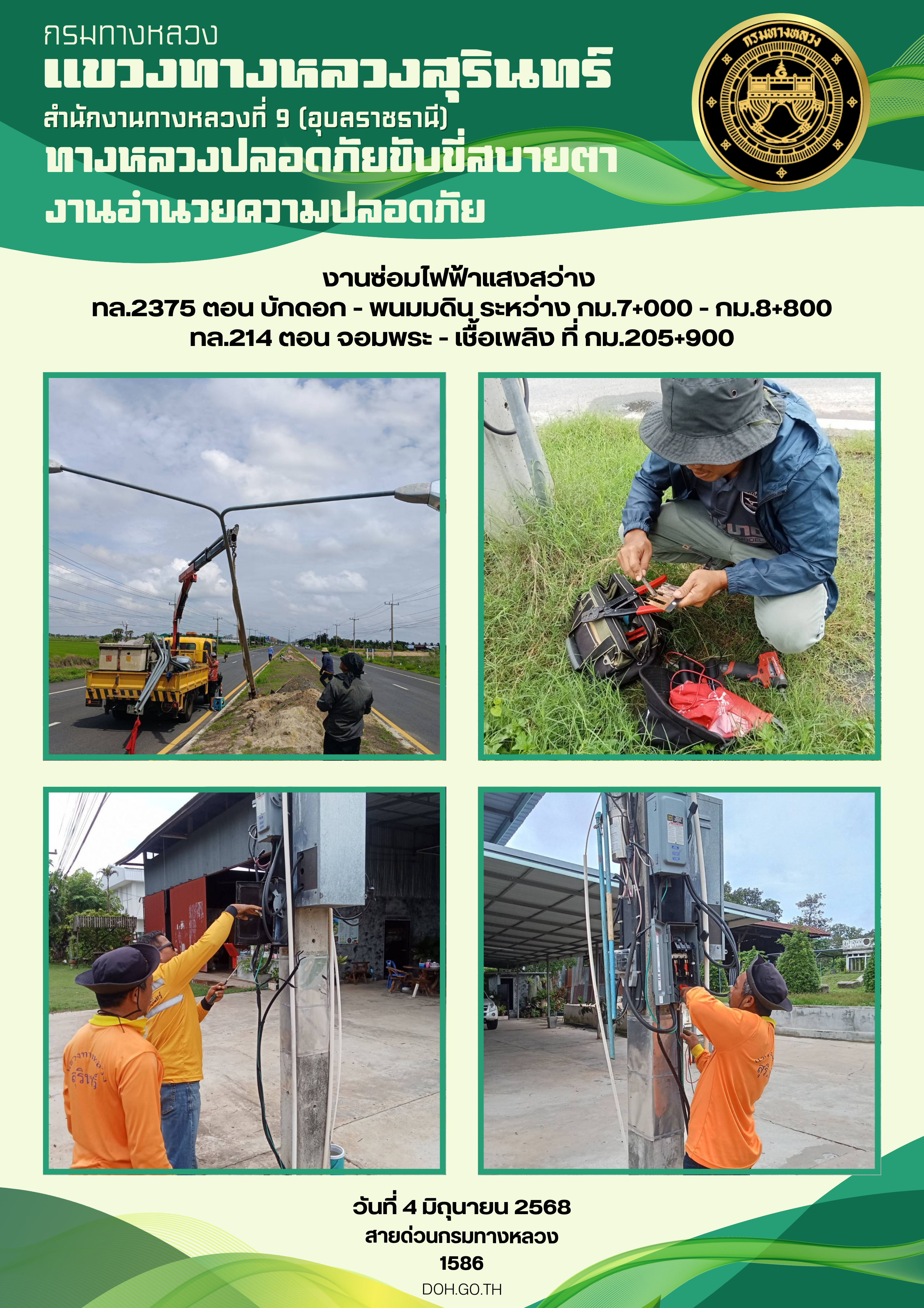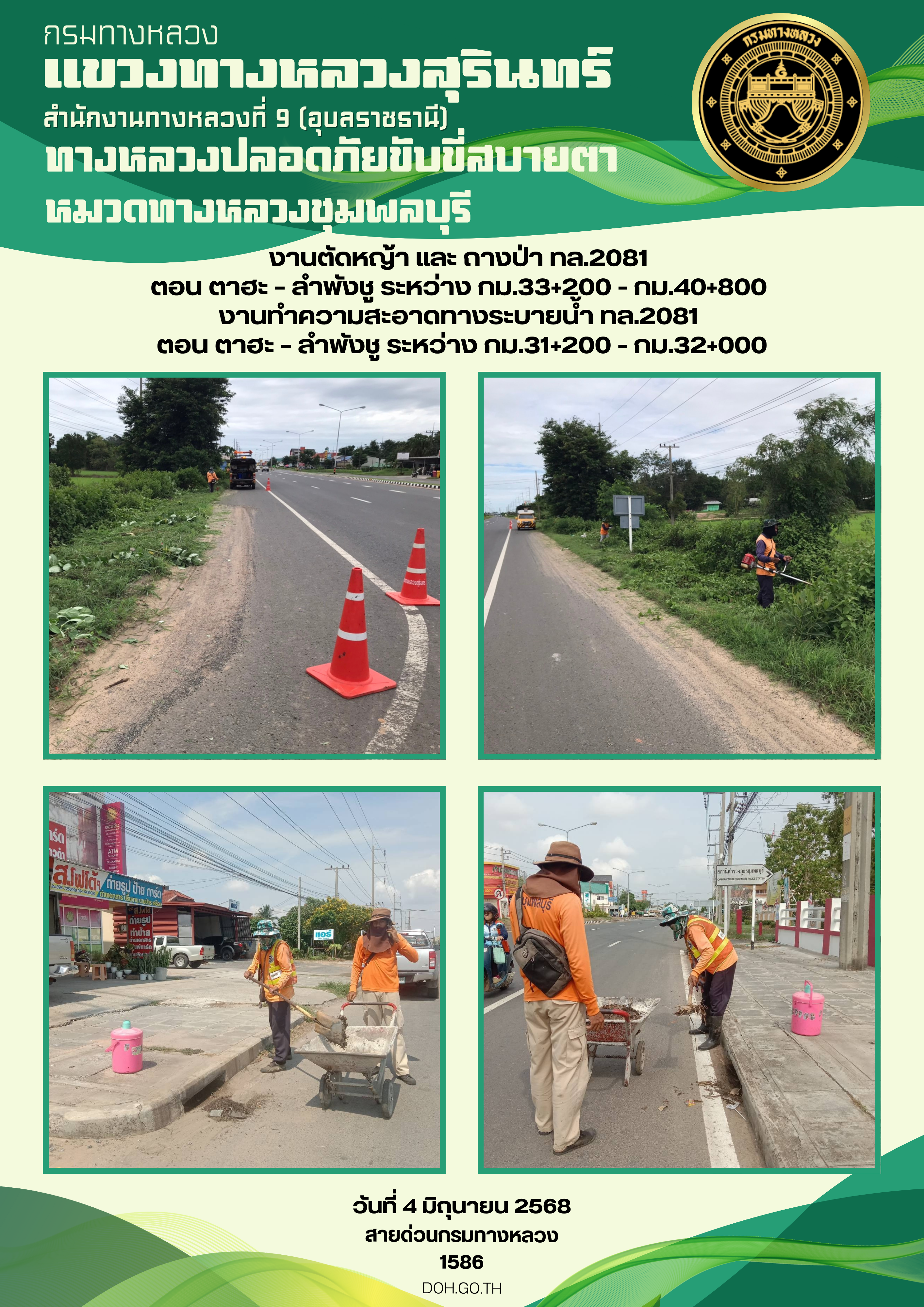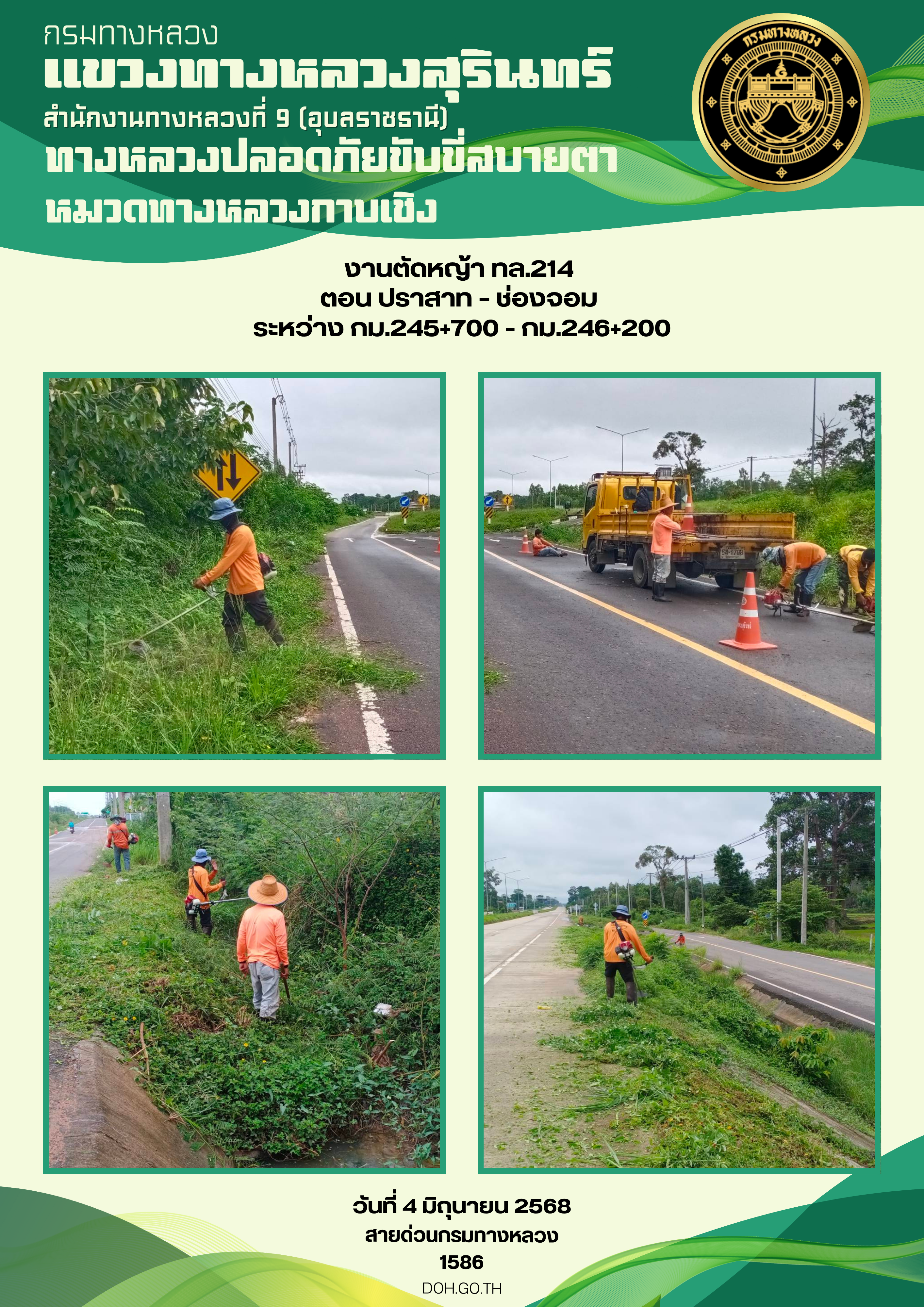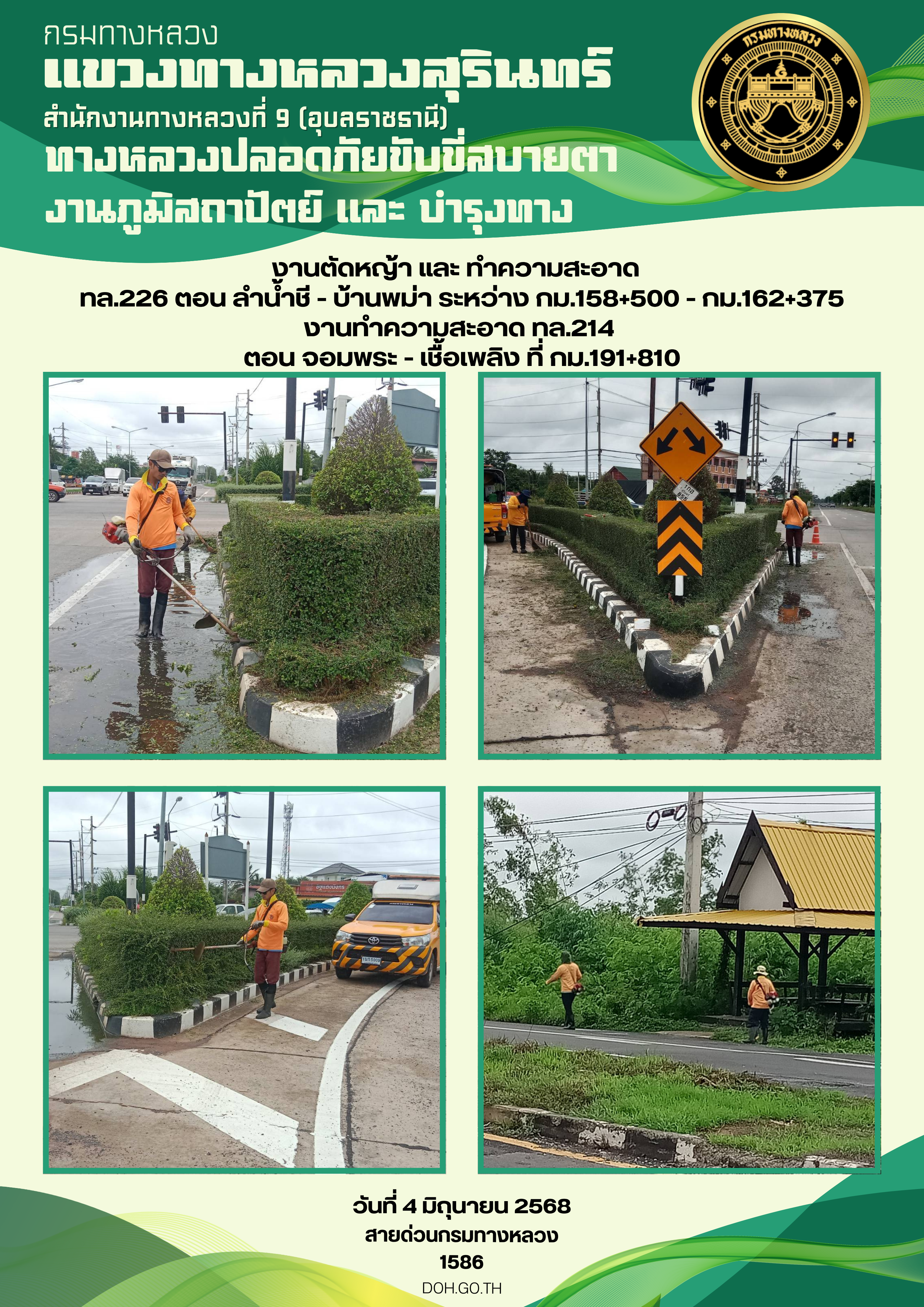 ข้อมูลภาพกิจกรรม : ทางหลวงปลอยภัย ขับขี่สบายตา 4 มิถุนายน 2568