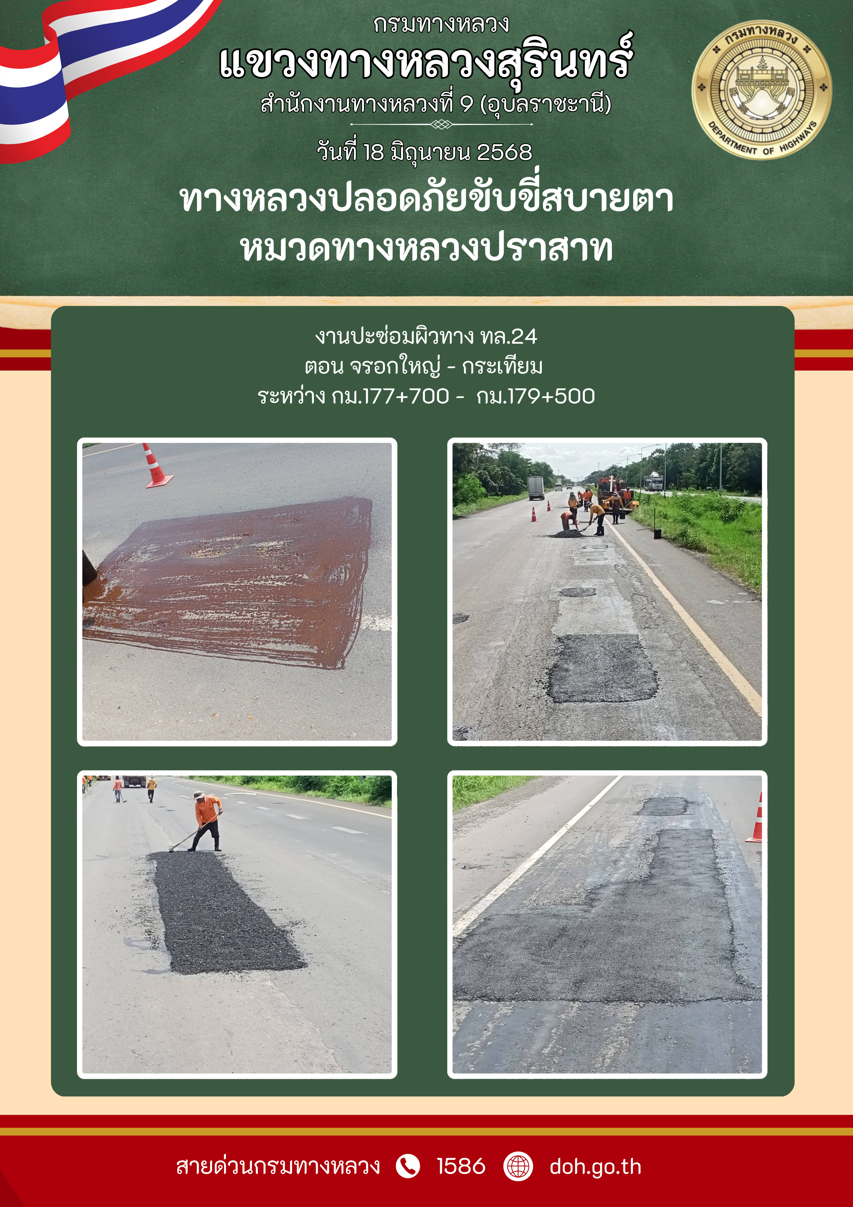 ทางหลวงปลอยภัย ขับขี่สบายตา 18 มิถุนายน 2568